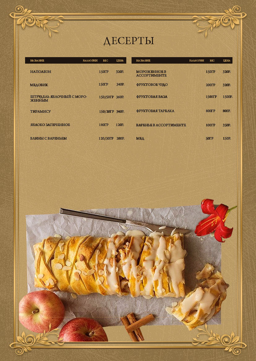 Чёткая типографика и структурированная подача блюд облегчают выбор для гостей и создают ощущение продуманности. Такой подход помогает сформировать цельный образ ресторана и повышает уровень впечатления посетителей.
