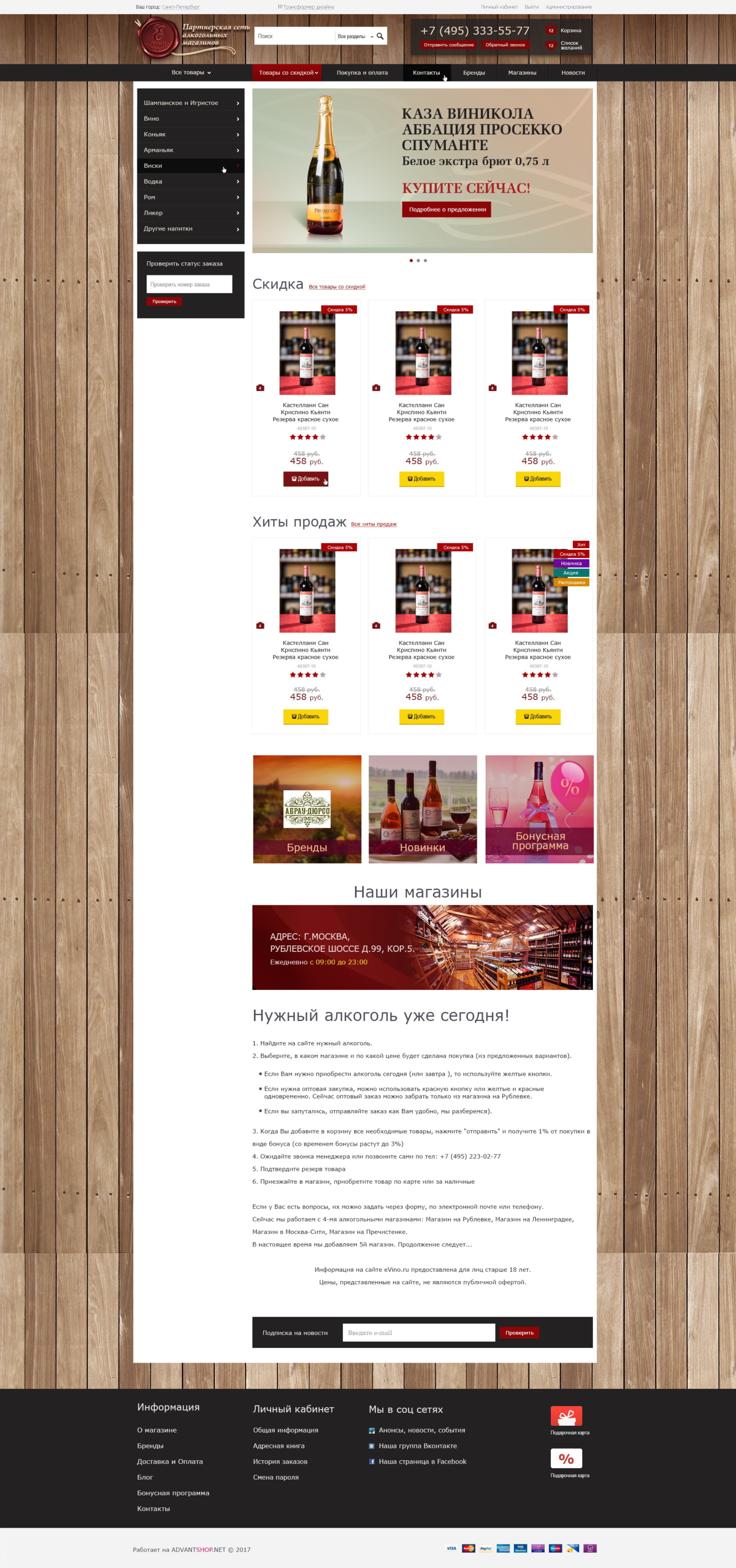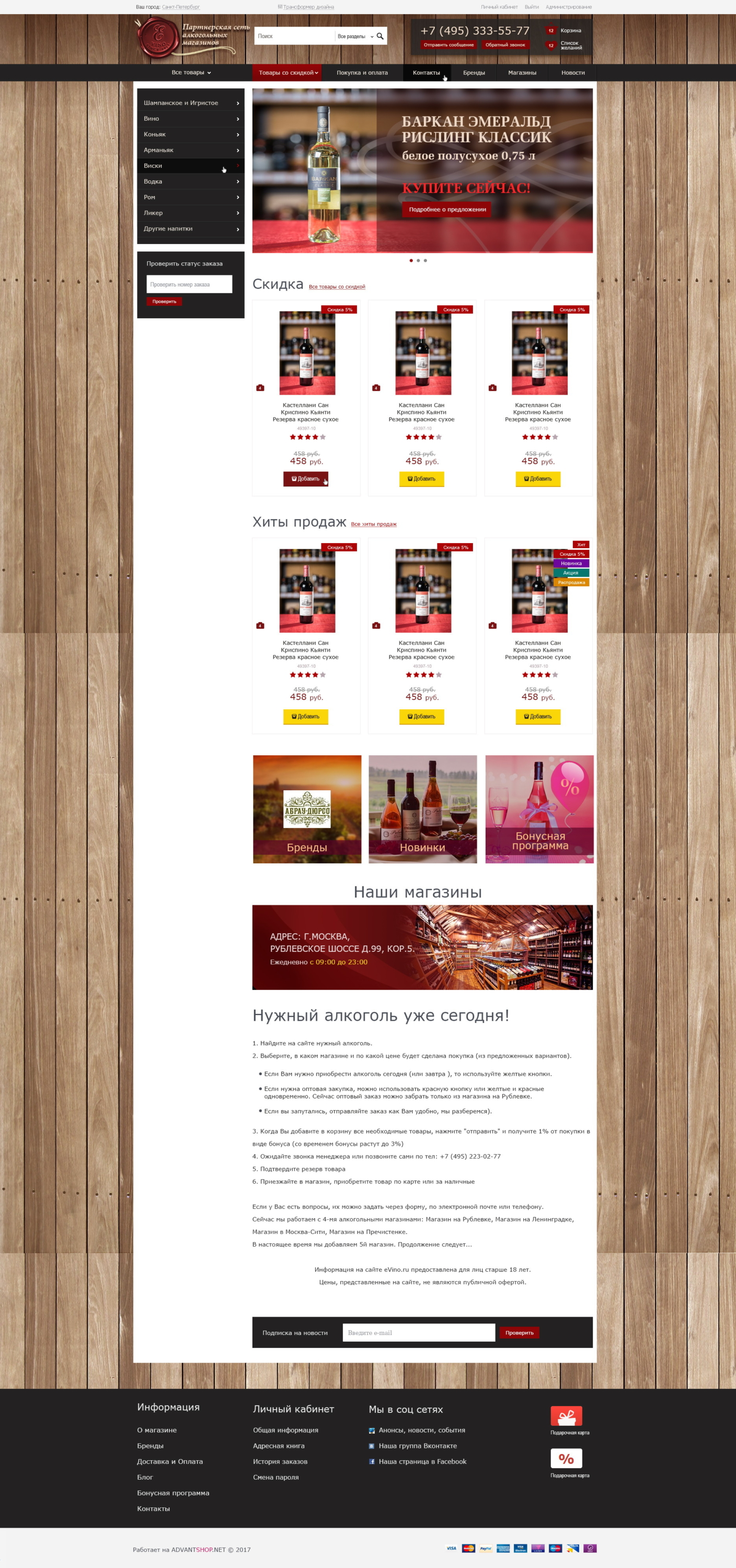 Разработан интернет-магазин для продажи вина с акцентом на атмосферу качественного продукта.