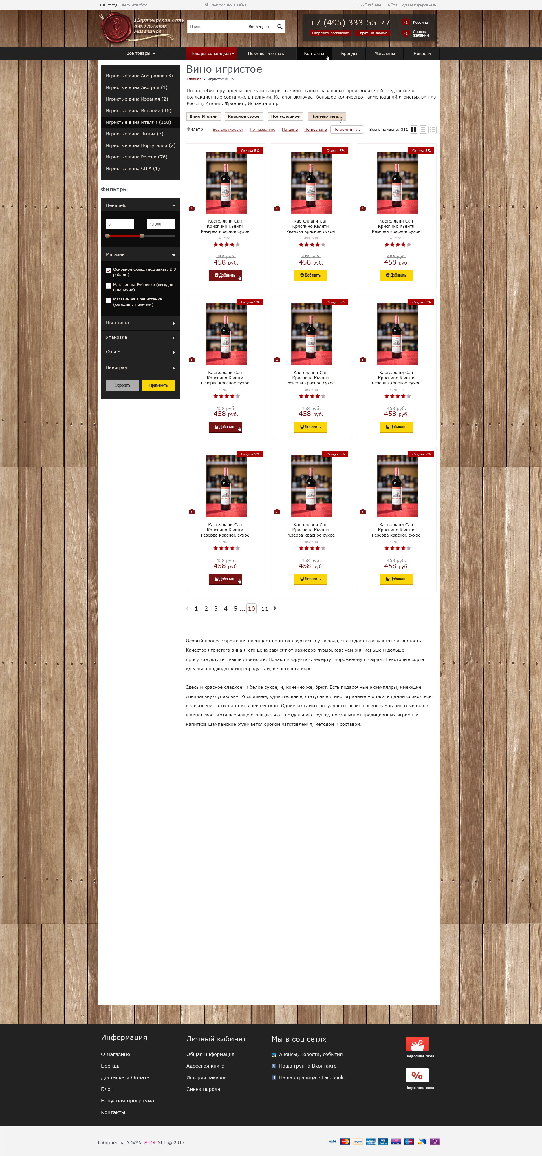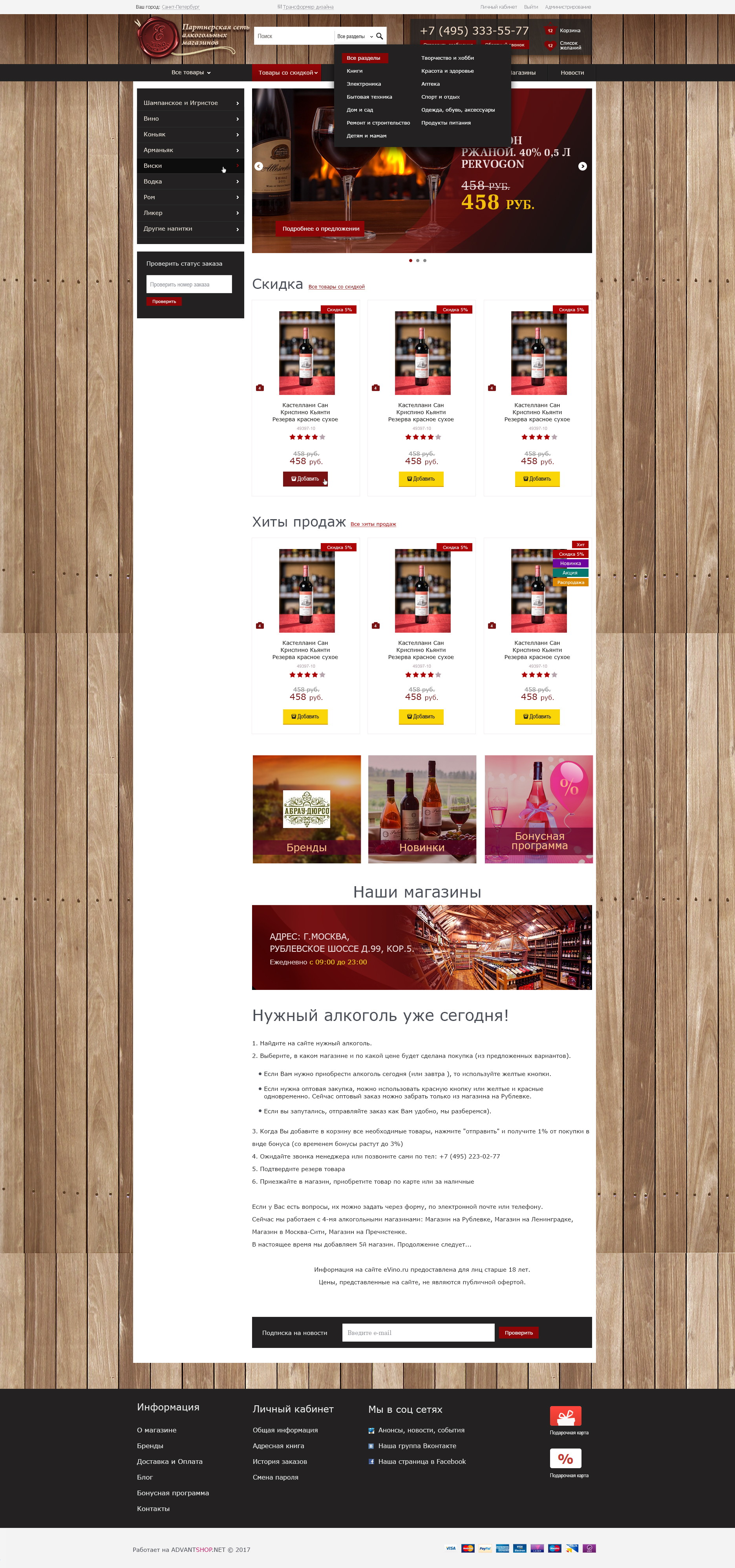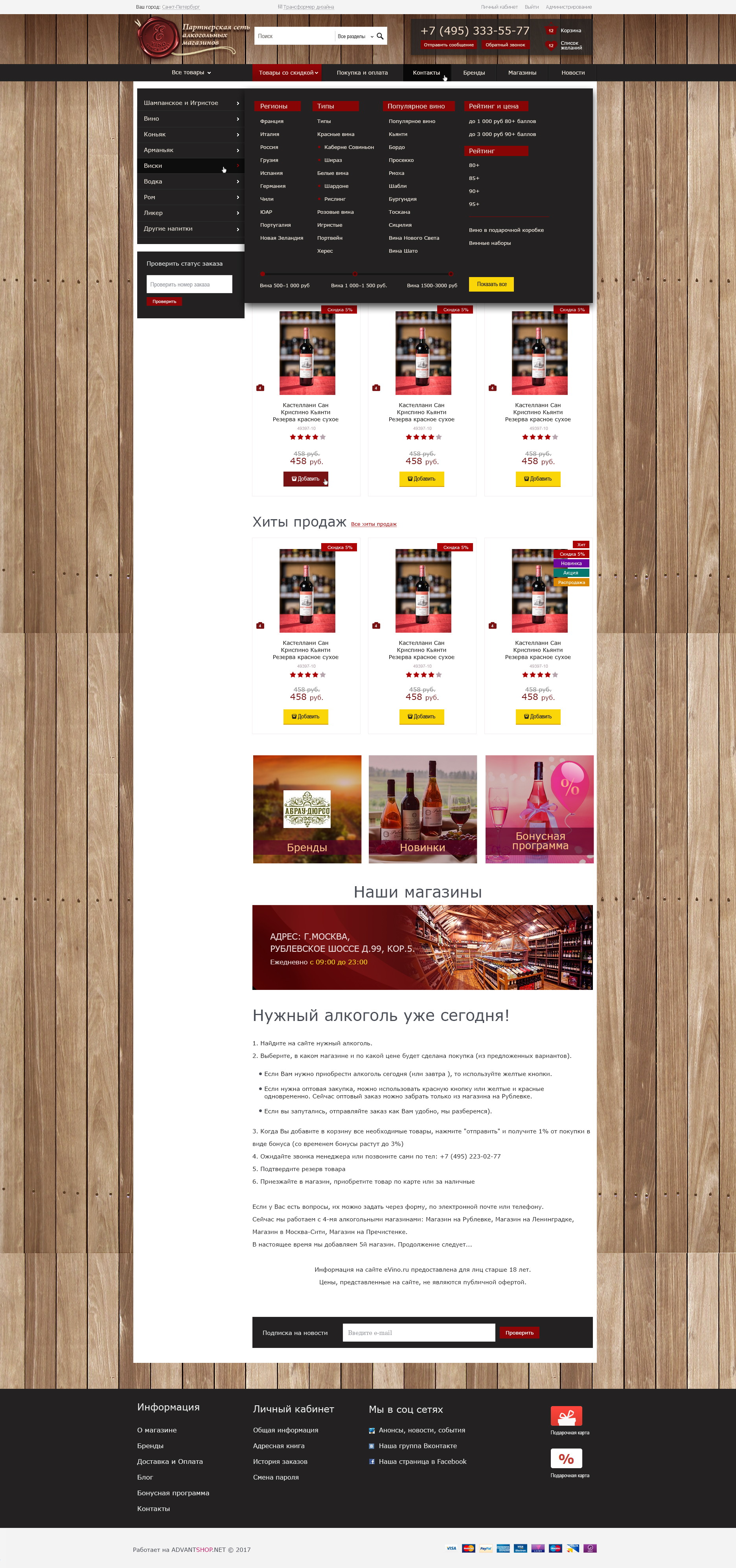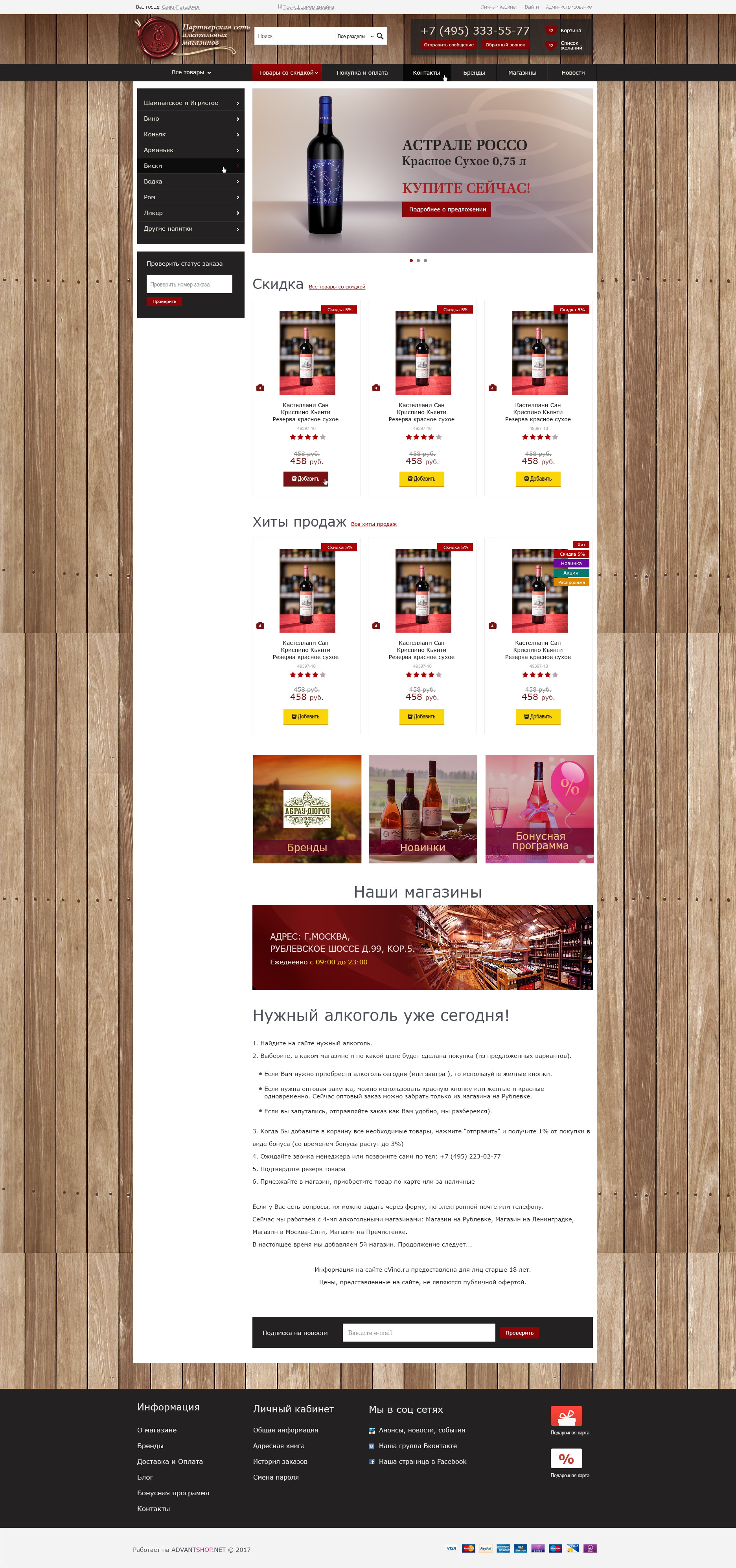 Разработан интернет-магазин для продажи вина с акцентом на атмосферу качественного продукта.