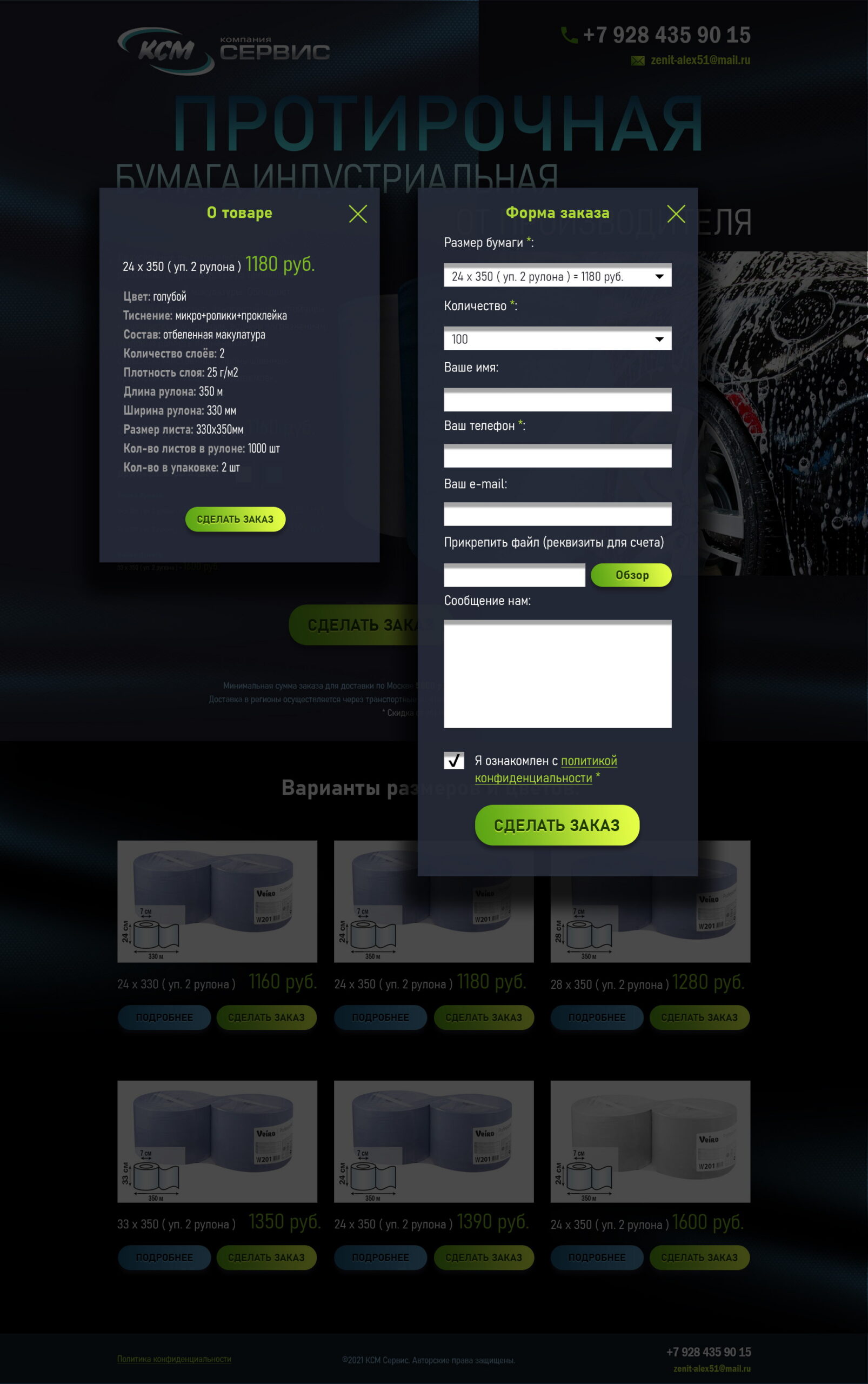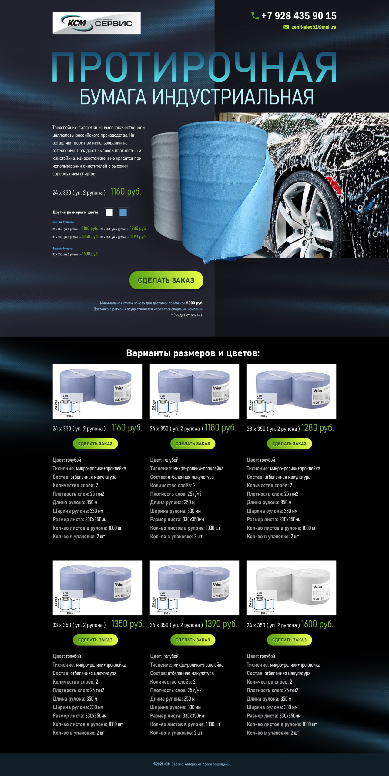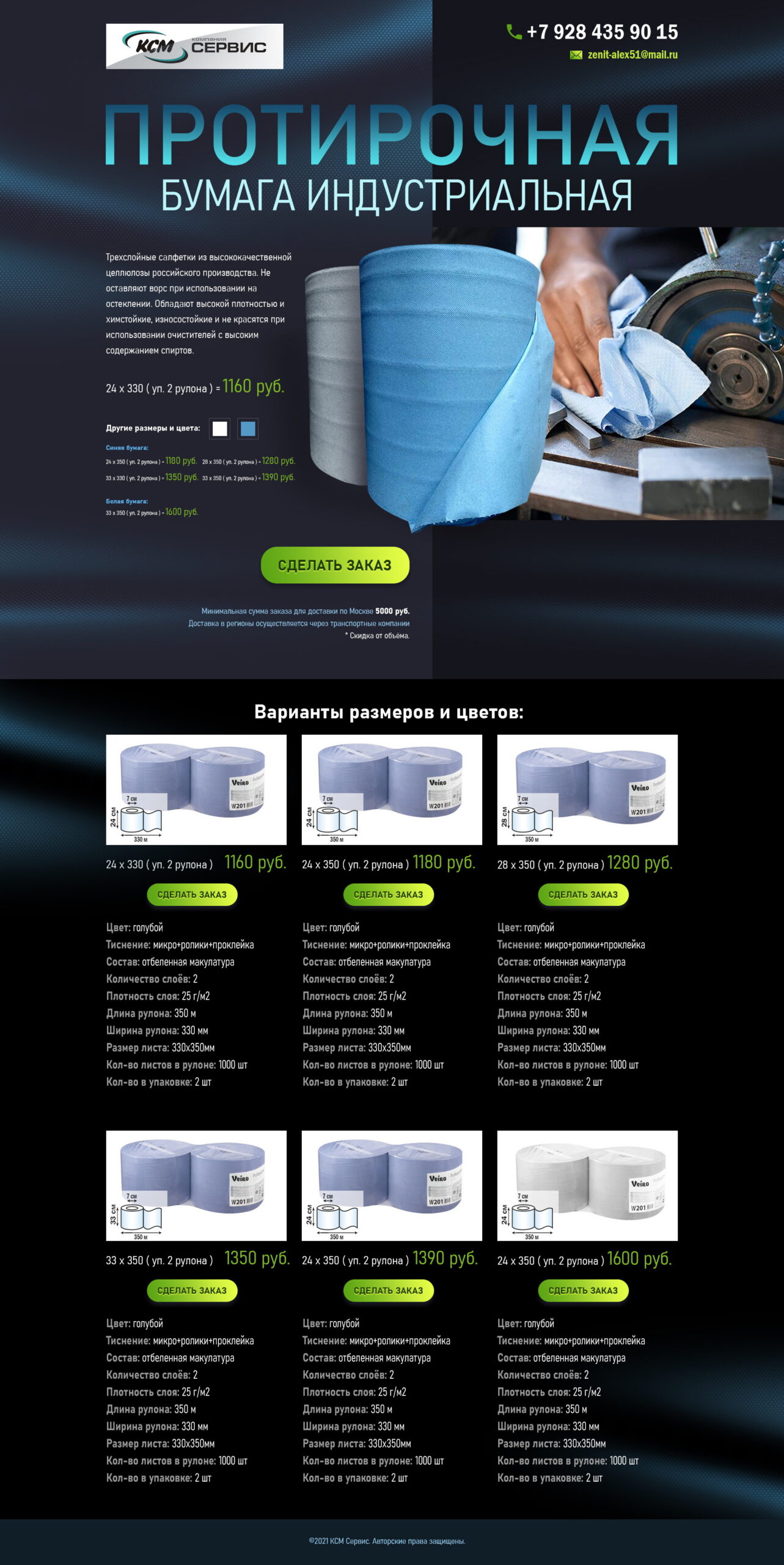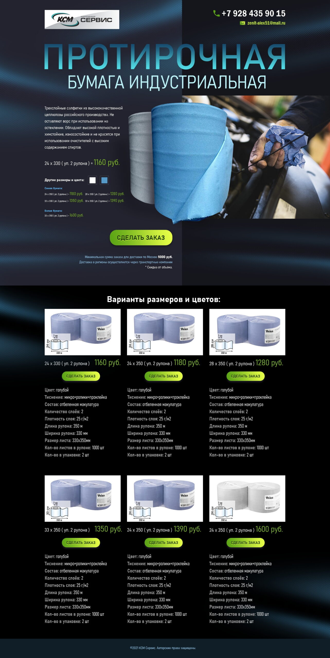 Для компании «КСМ Сервис» были разработаны лендинги и впоследствии полноценный интернет-магазин на WordPress WooCommerce. Цветовая гамма подчёркивает чистоту и свежесть продукта: зелёно-голубой создаёт ощущение гигиены и прозрачности, тёмно-синий добавляет надёжности, салатовый делает интерфейс более живым и современным.
