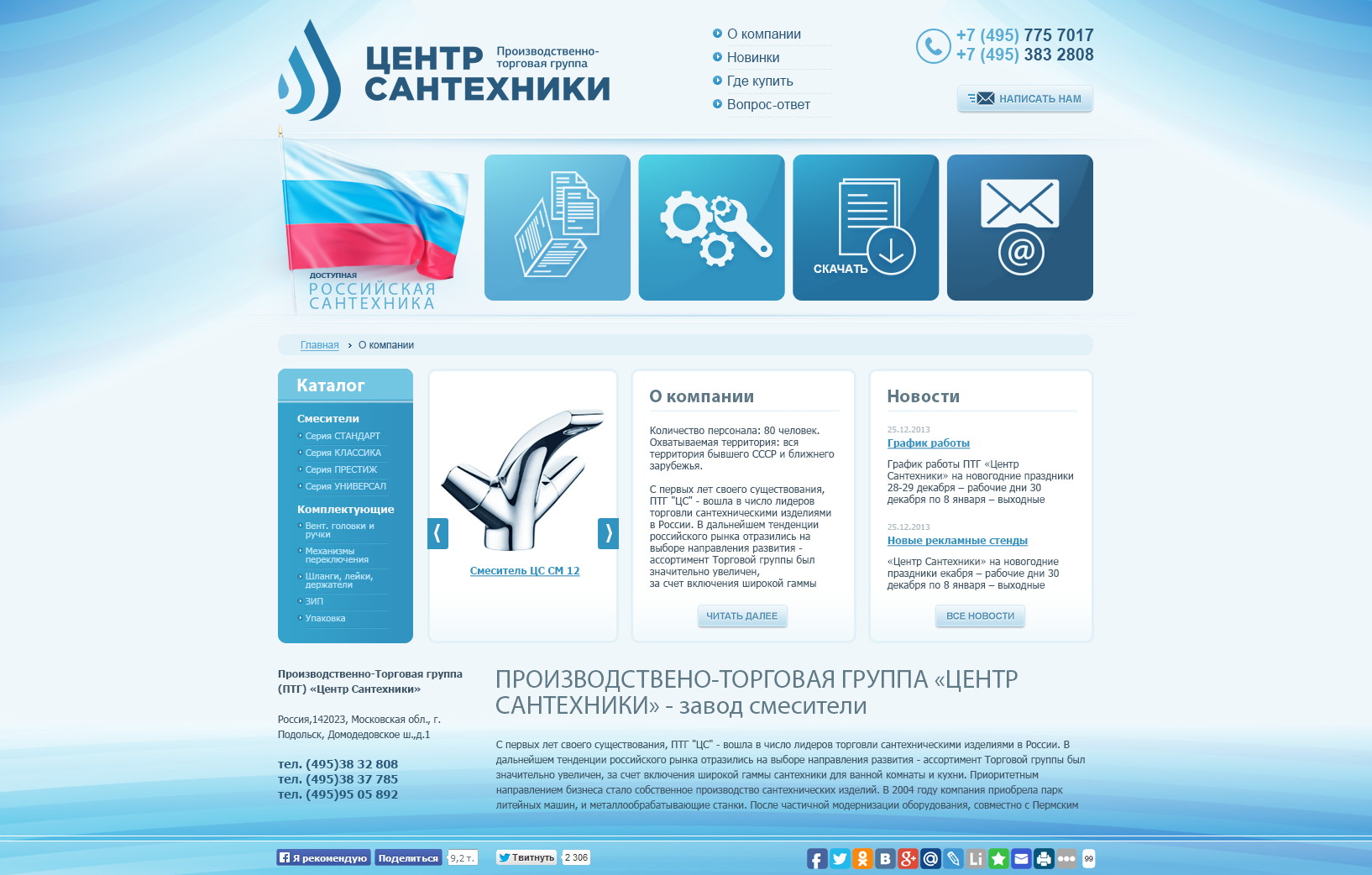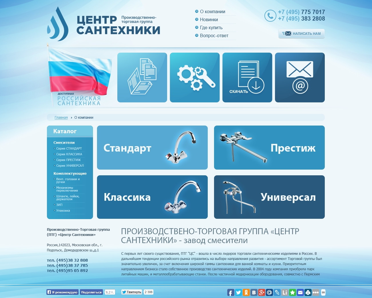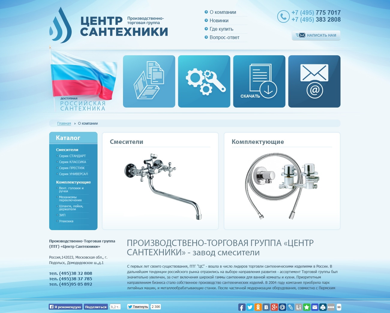 Интерфейс ориентирован на каталог товаров, услуги монтажа и структурированное представление ассортимента.