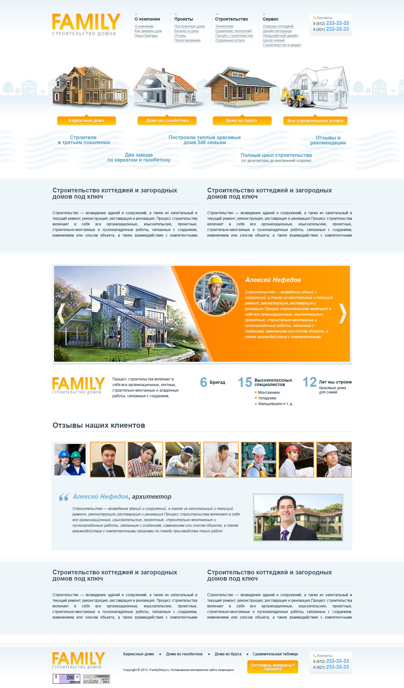 Сделаны на заказ дизайн сайта, схема, верстка для строительной компании.