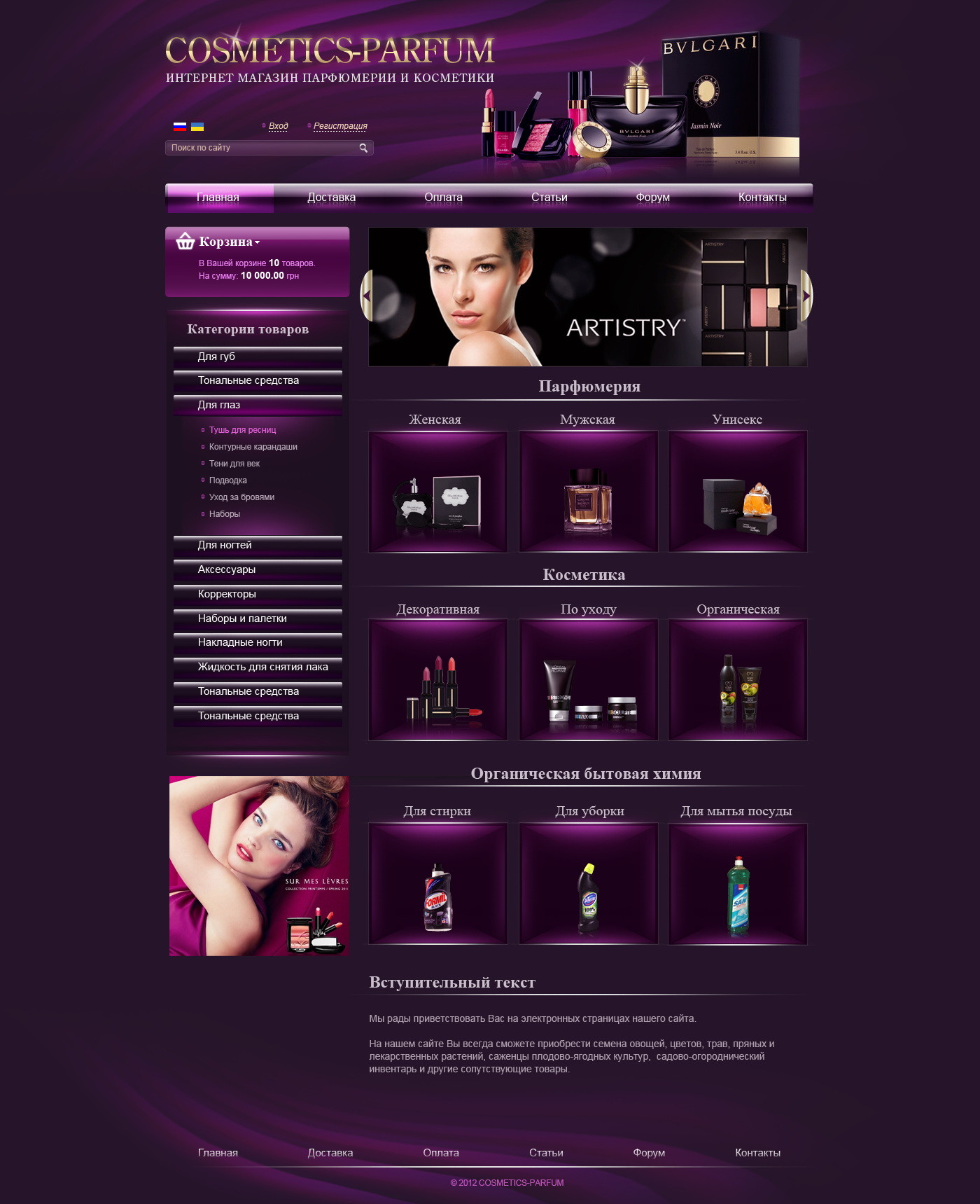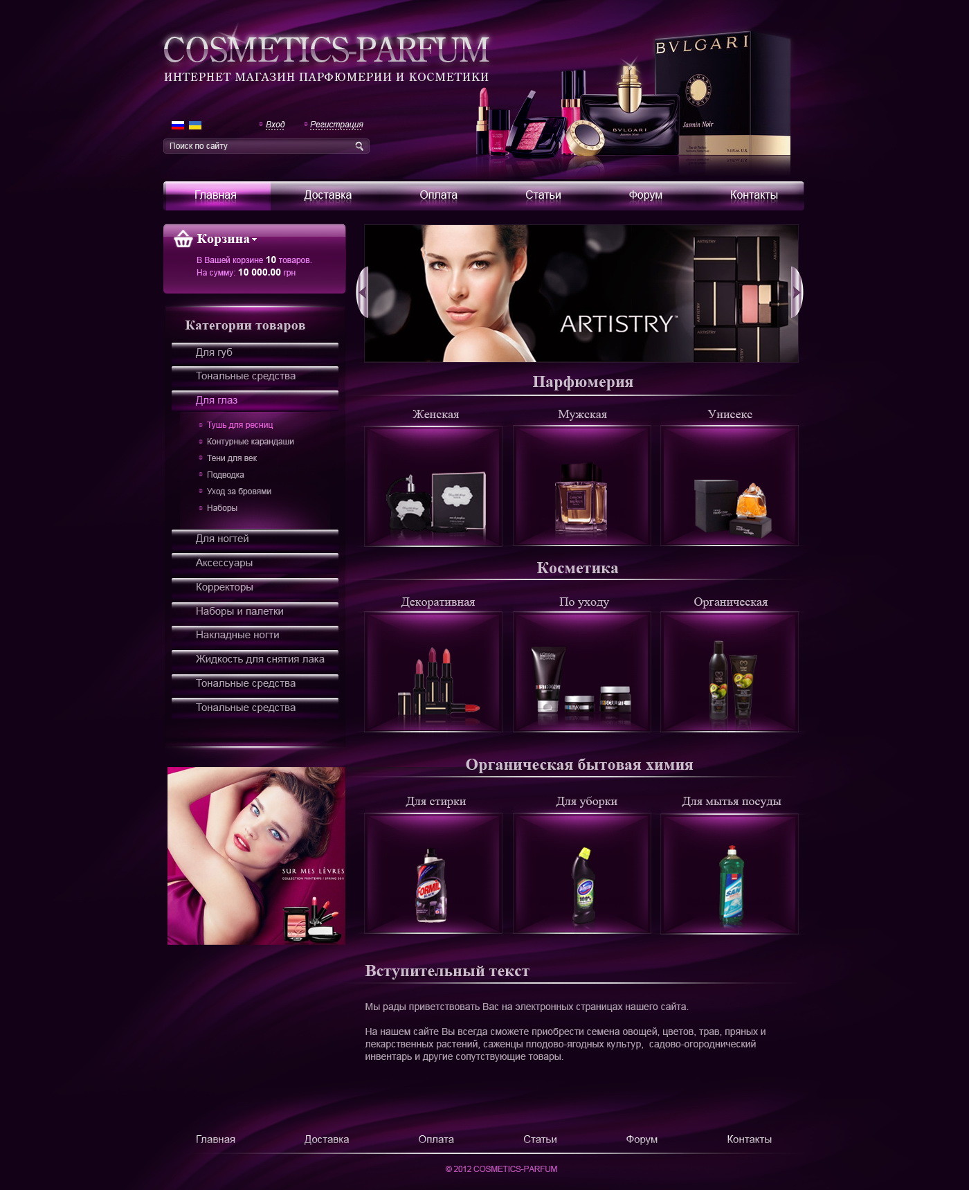 Созданы стильные и атмосферные страницы интернет-магазина парфюмерии.