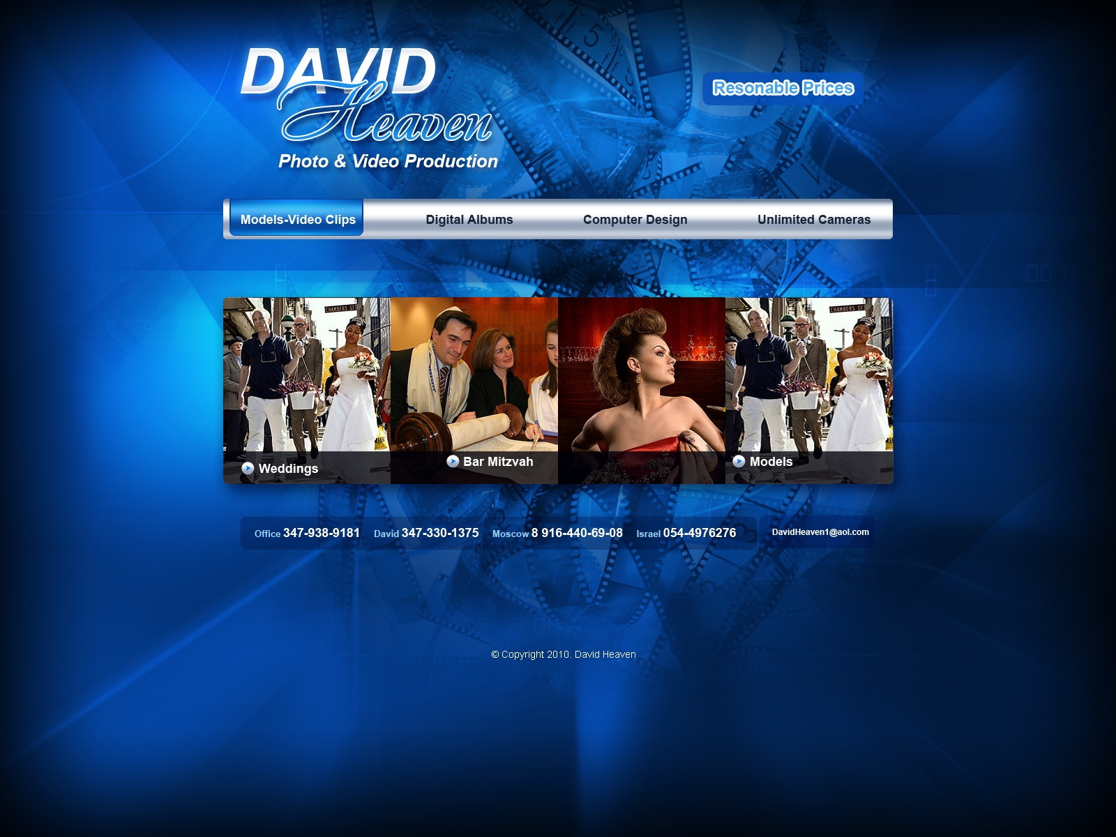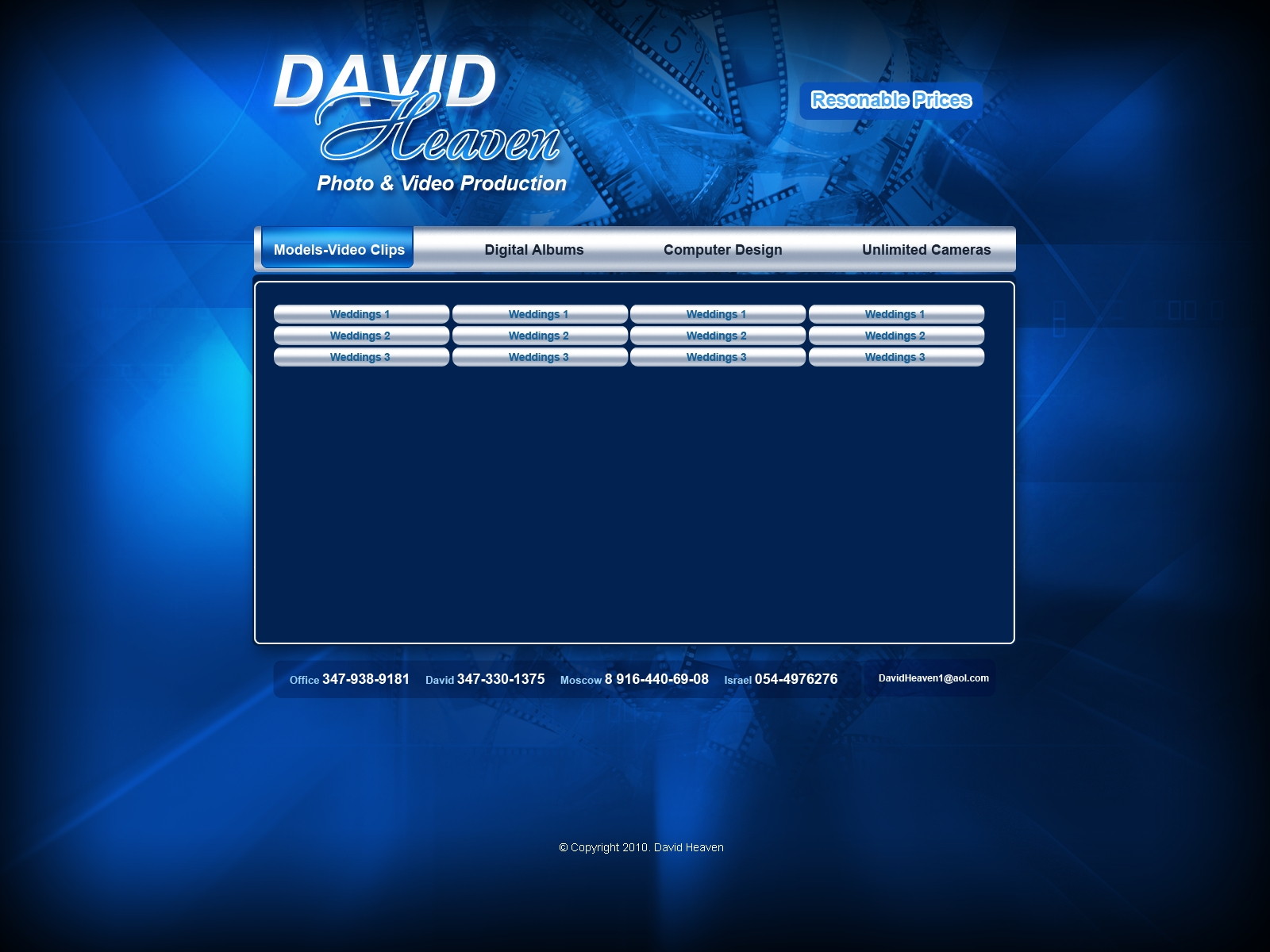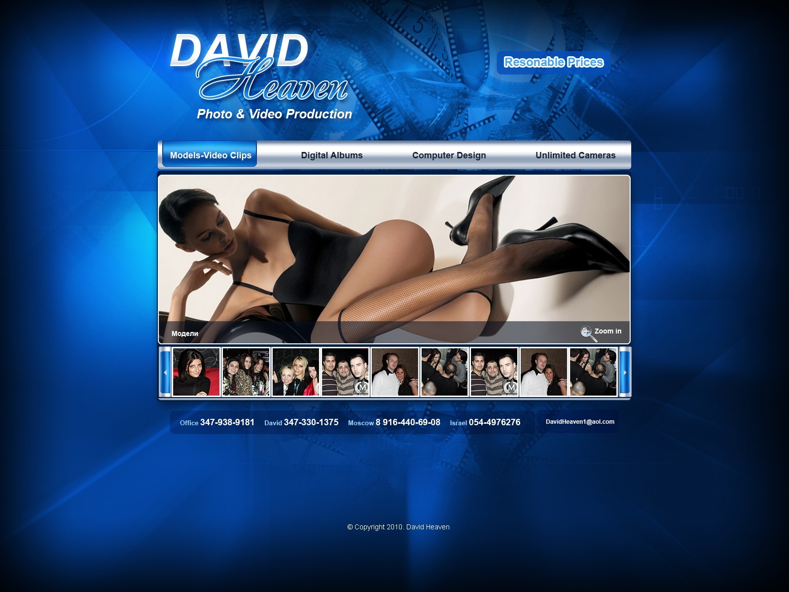 Палитра синего, стального и алюминиевого формирует технологичный, спокойный фон, позволяющий выгодно подчеркнуть фотографии.