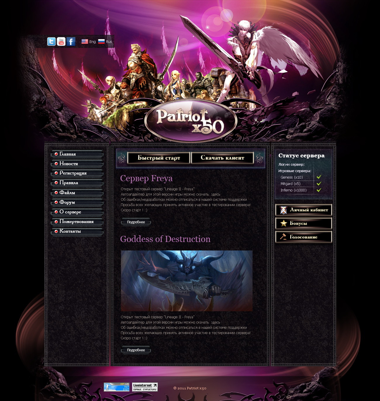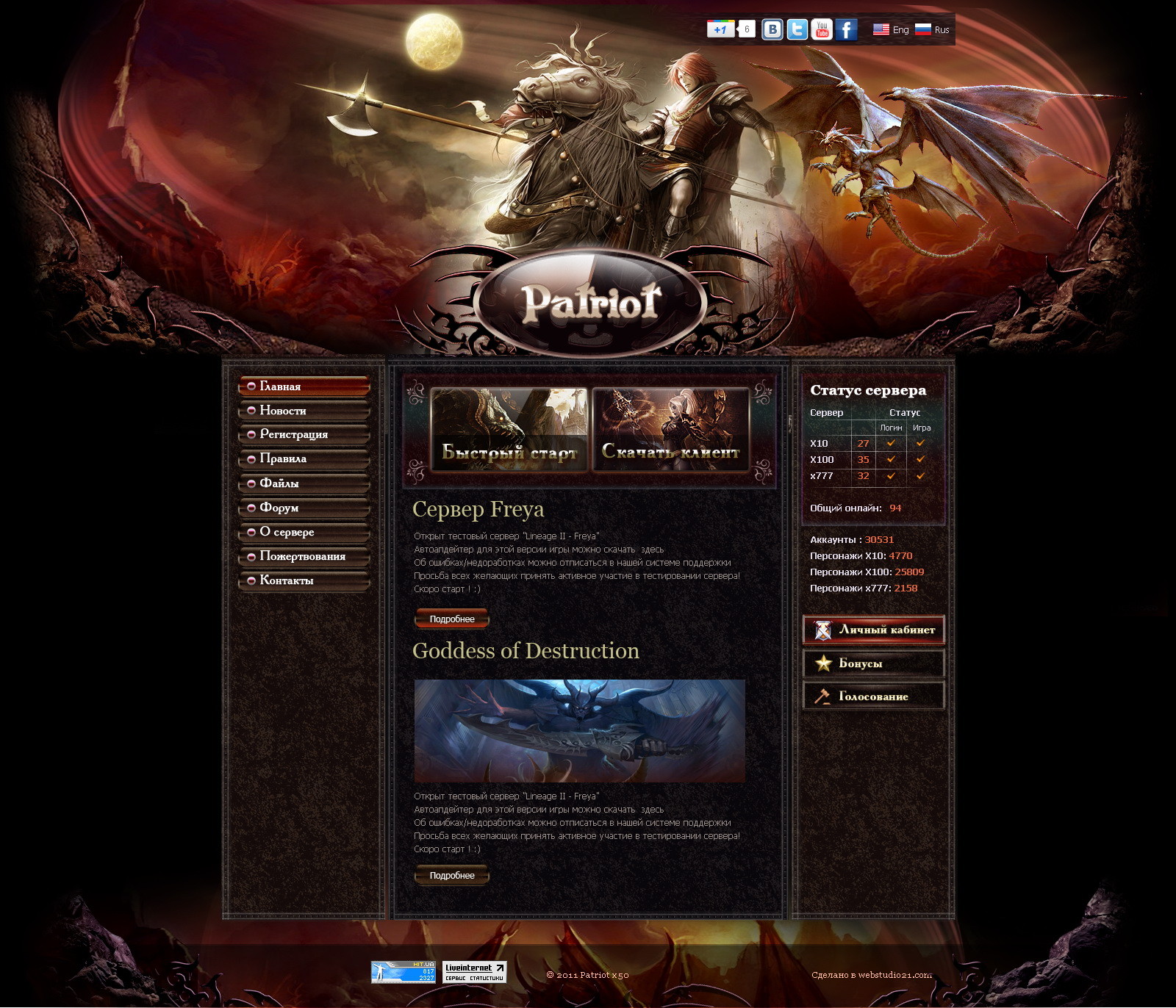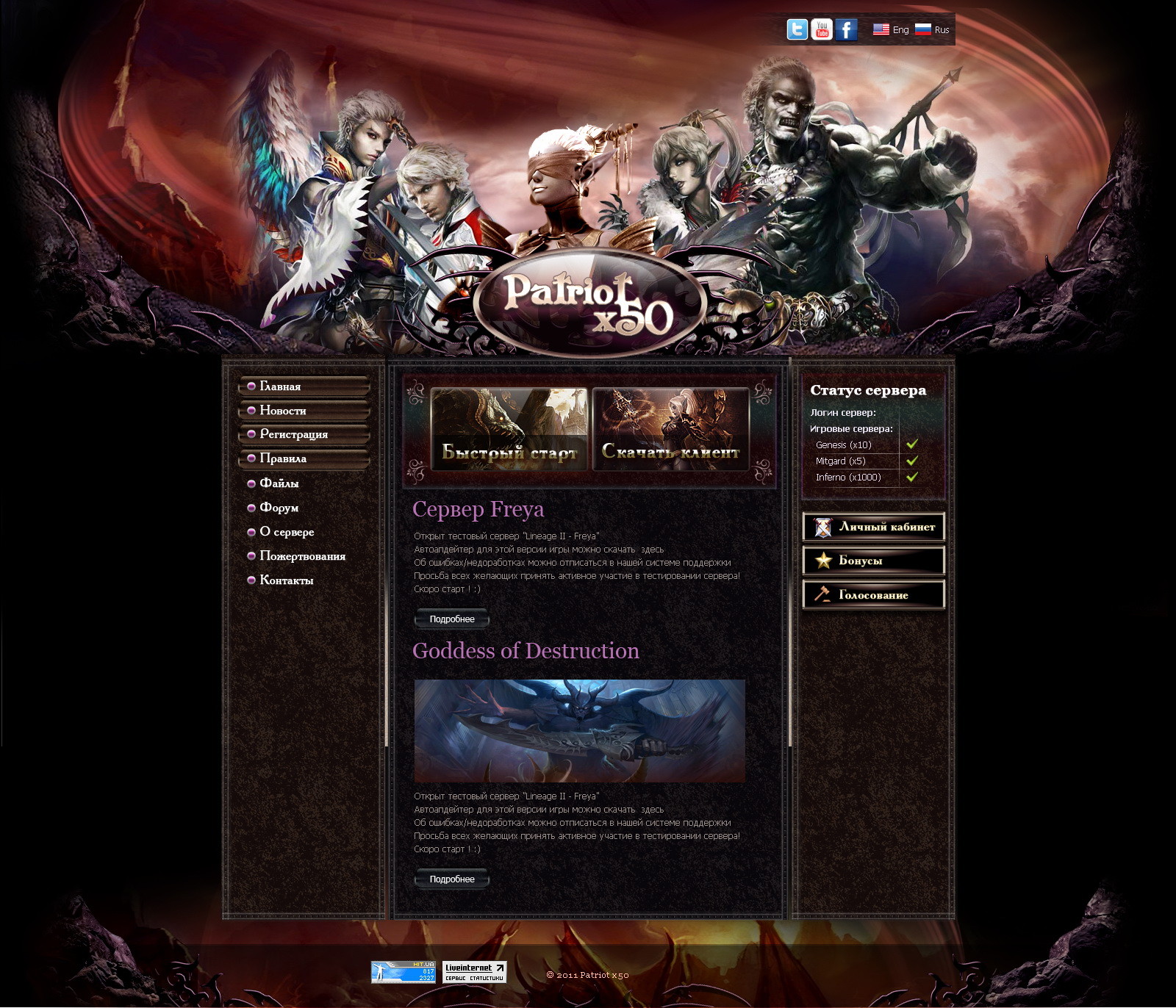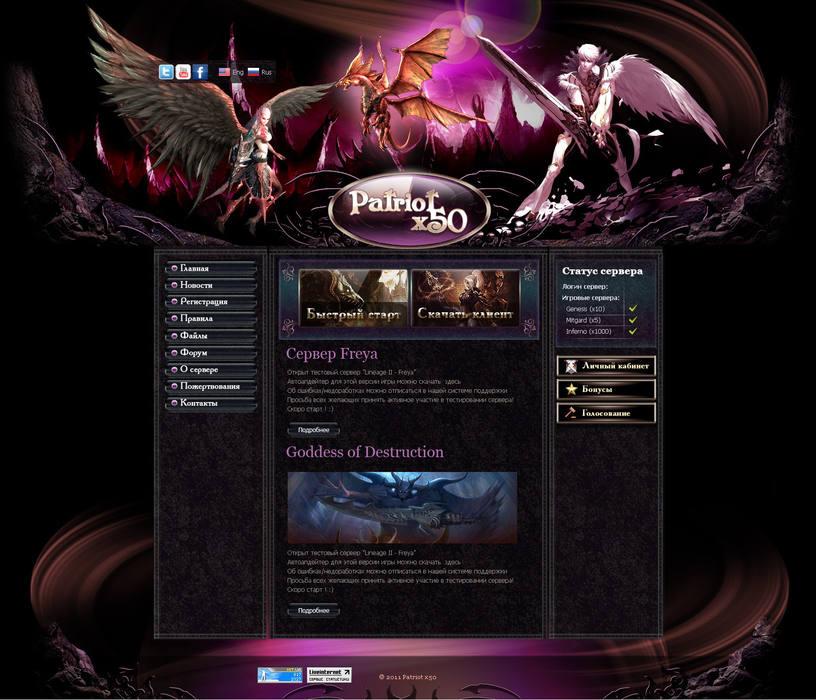 Выполнена адаптивная HTML-верстка сайта для игрового сервера.