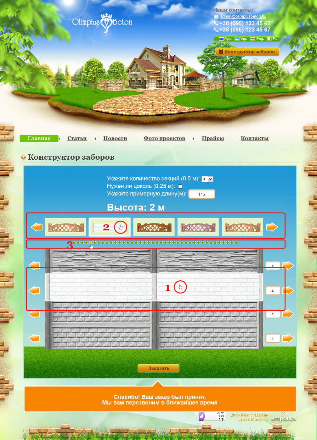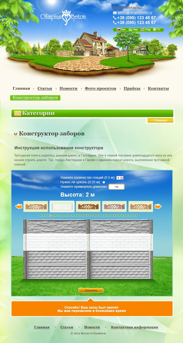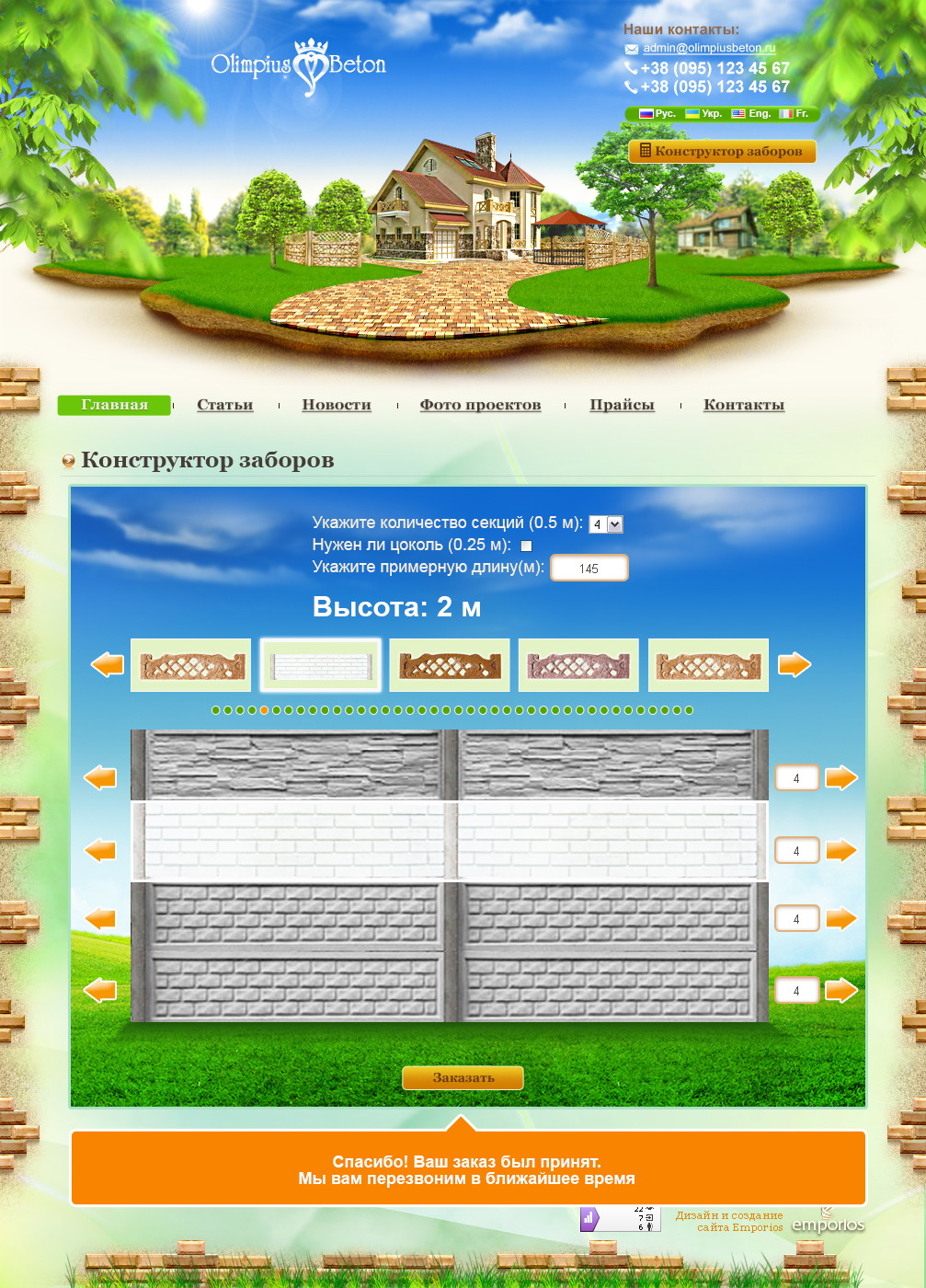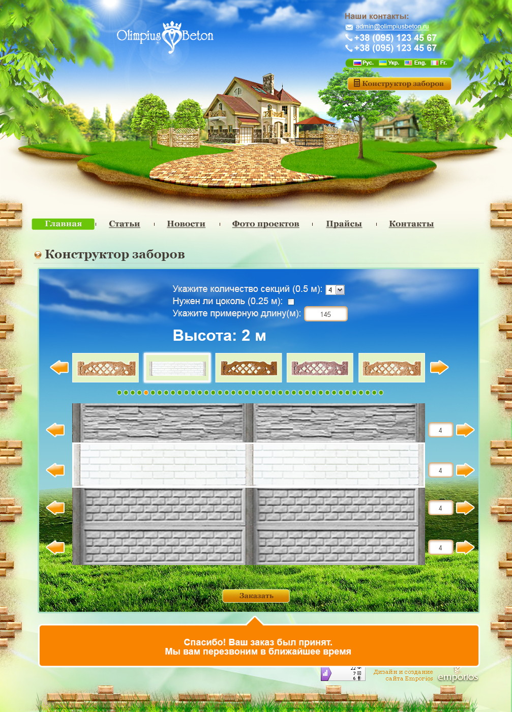 Также был сделан дизайн и программирования дополнительного модуля — конструктора подбора клиентом заборов онлайн.