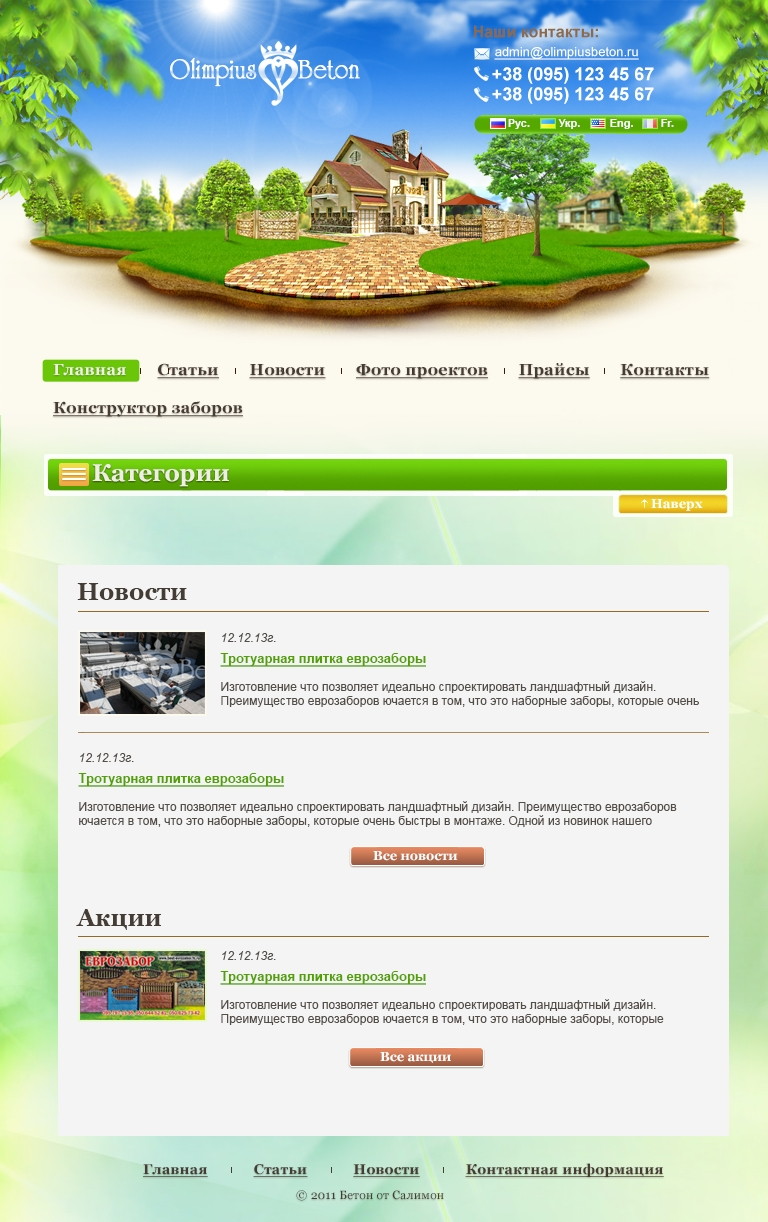 Созданы примеры дизайнерского оформления в зелёной, голубой и светло-коричневой палитре.