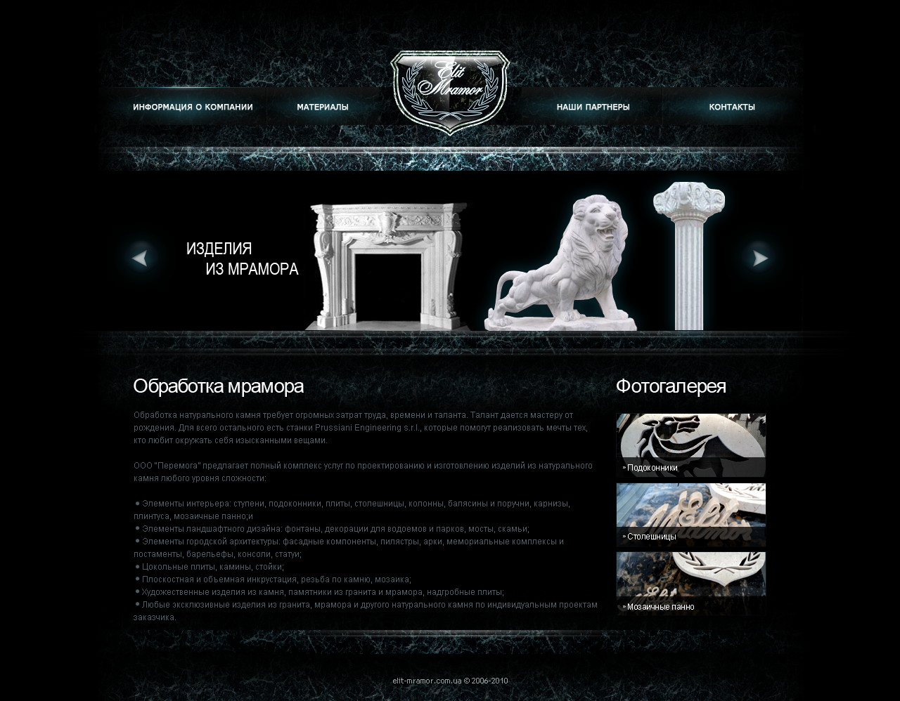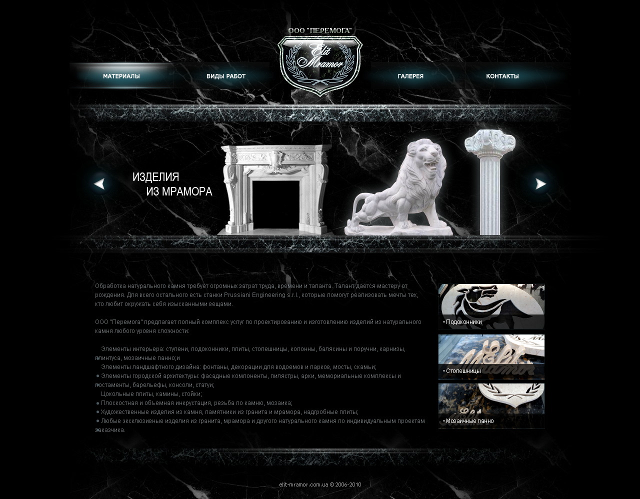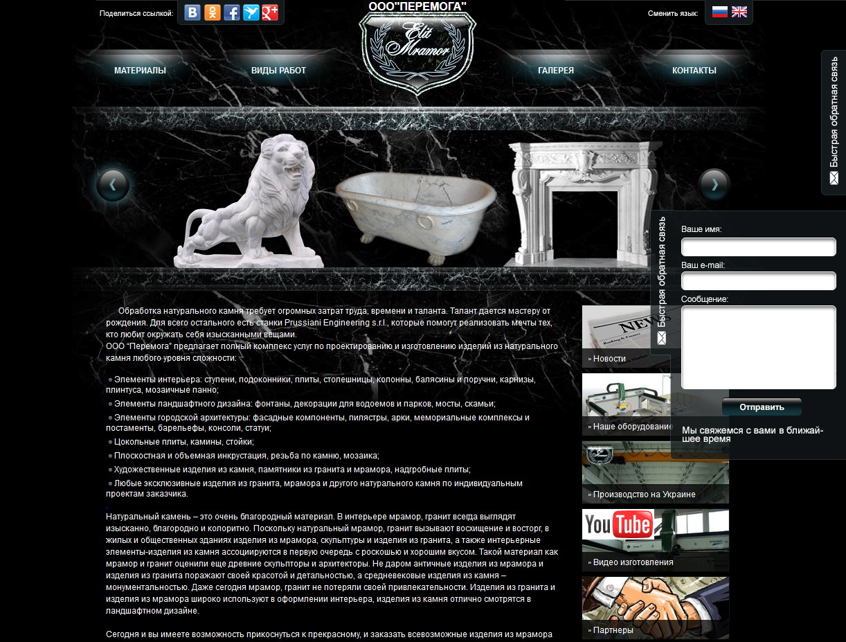 Сайт получился стильным, строгим и хорошо подходящим под нишу элитных материалов.