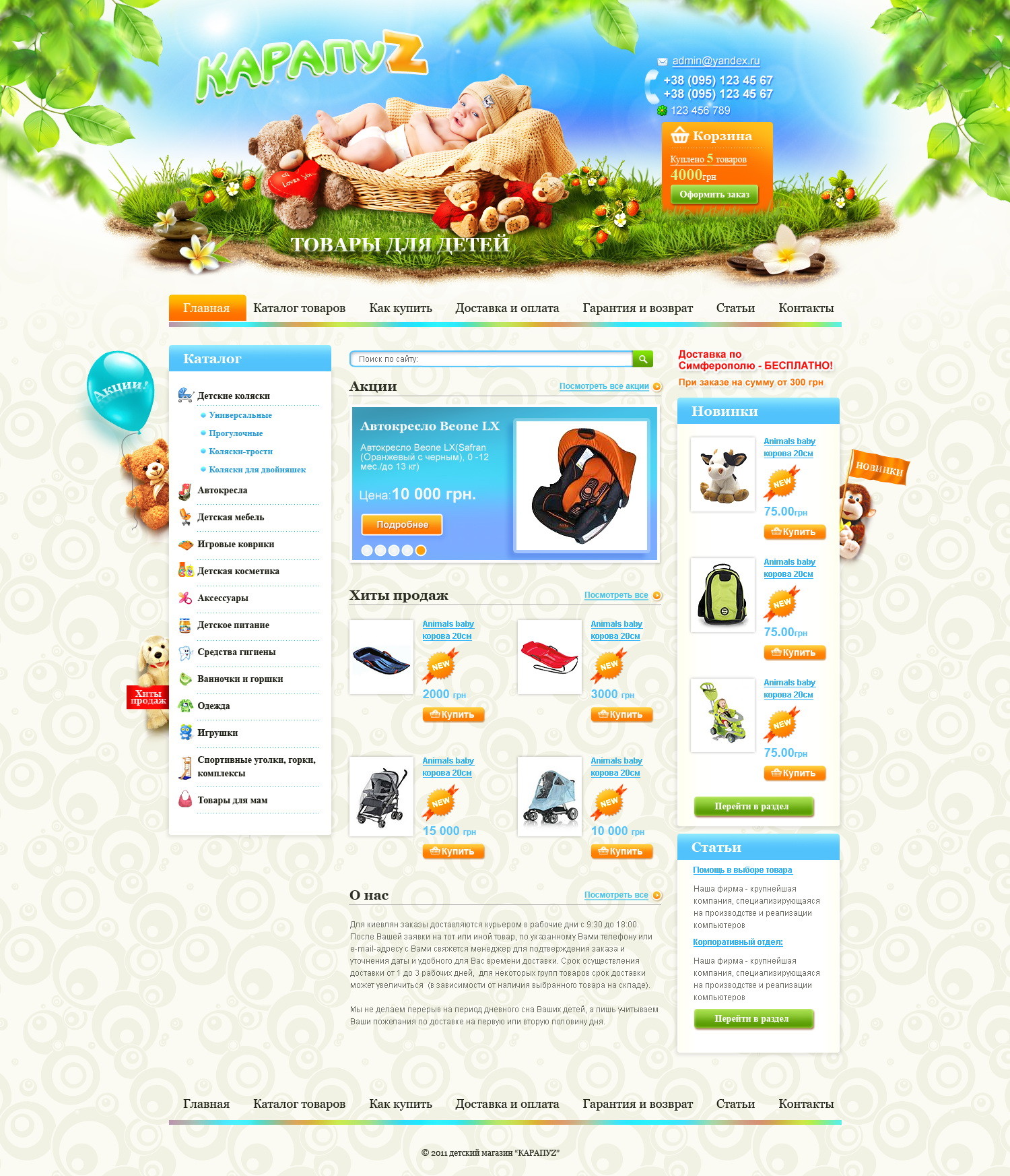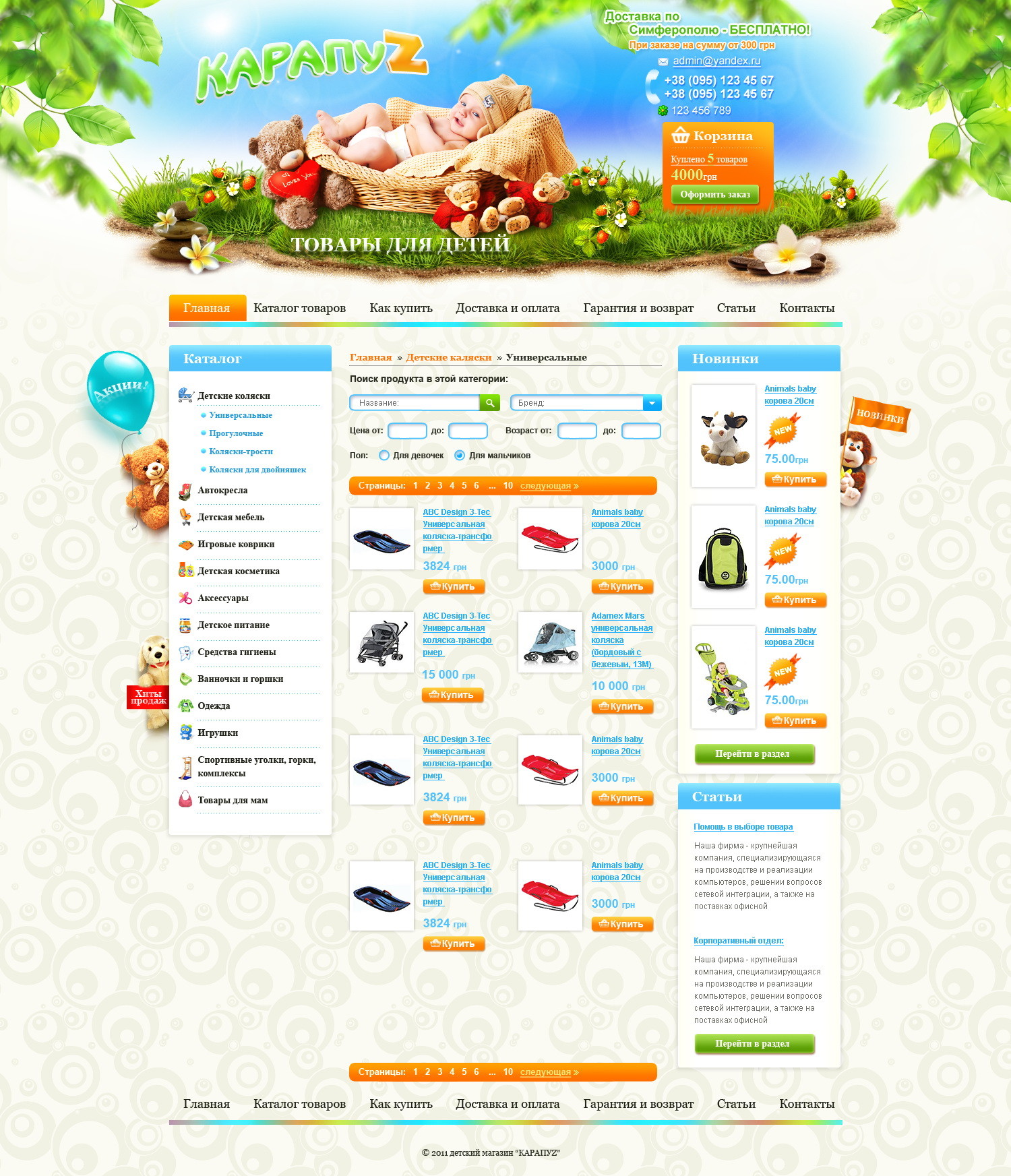 На OpenCart разработан яркий интернет-магазин товаров для детей.