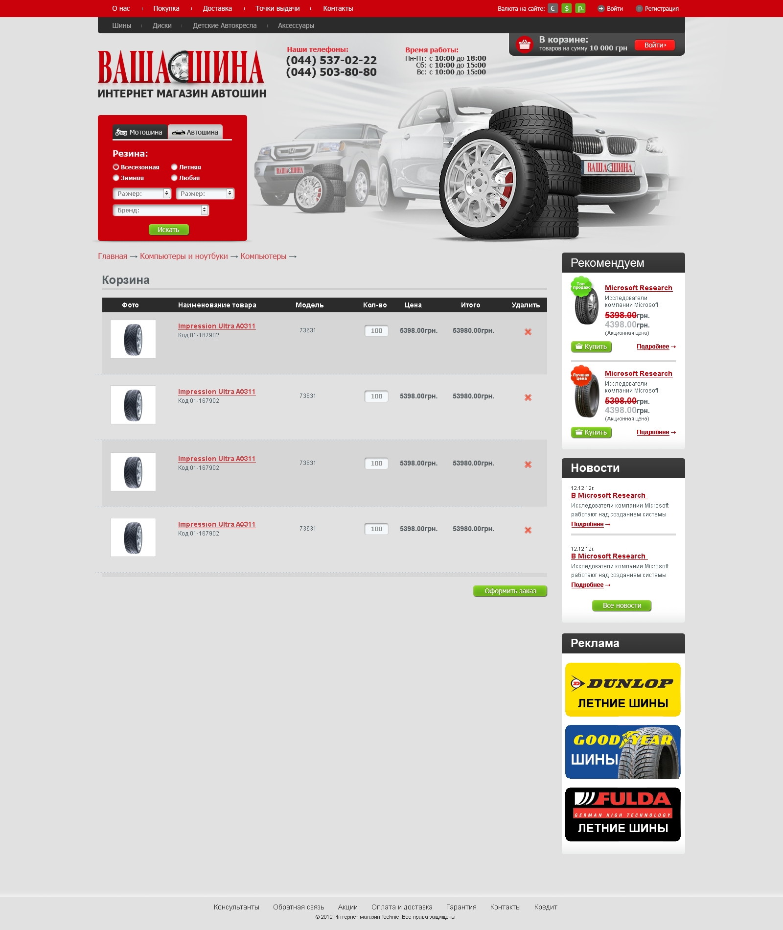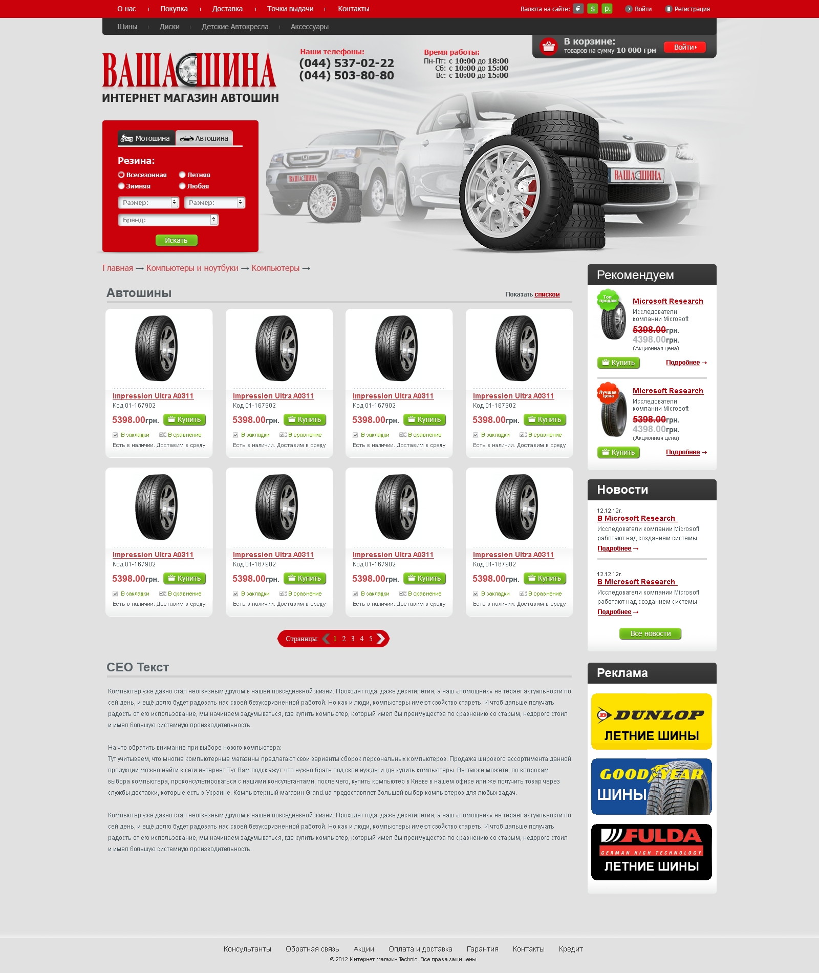 Каталог шин структурирован для быстрого подбора.