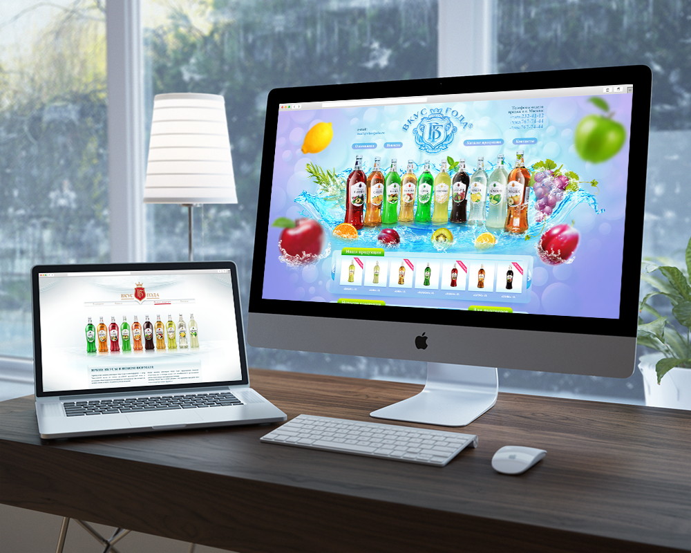 Разработаны яркие, многовариантные дизайны с палитрами, привязанными к фруктовым вкусам напитков.
