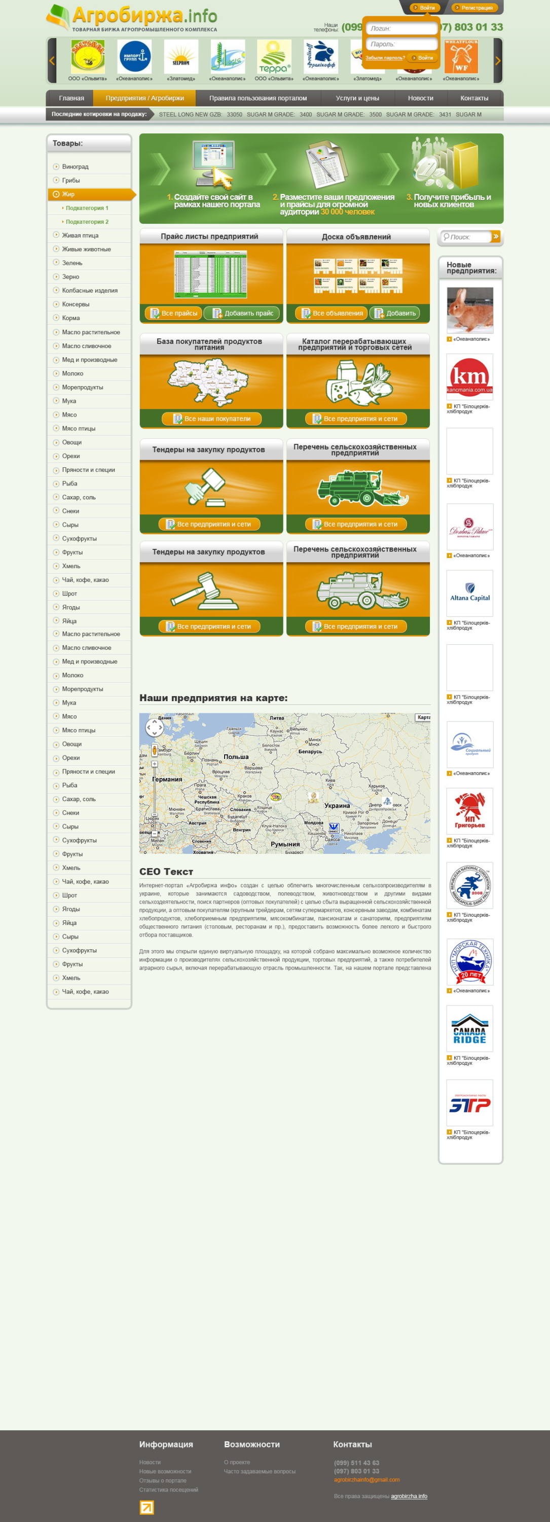 Подготовлен дизайн сайта аграрной биржи с акцентом на функциональность и лёгкость навигации.