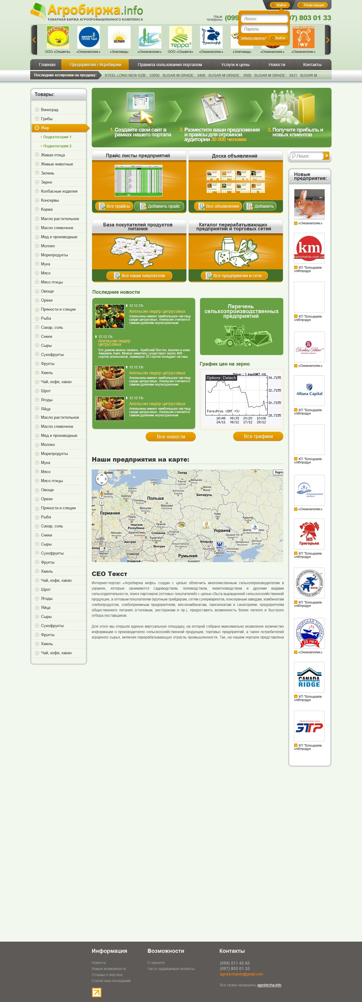 Подготовлен дизайн сайта аграрной биржи с акцентом на функциональность и лёгкость навигации.