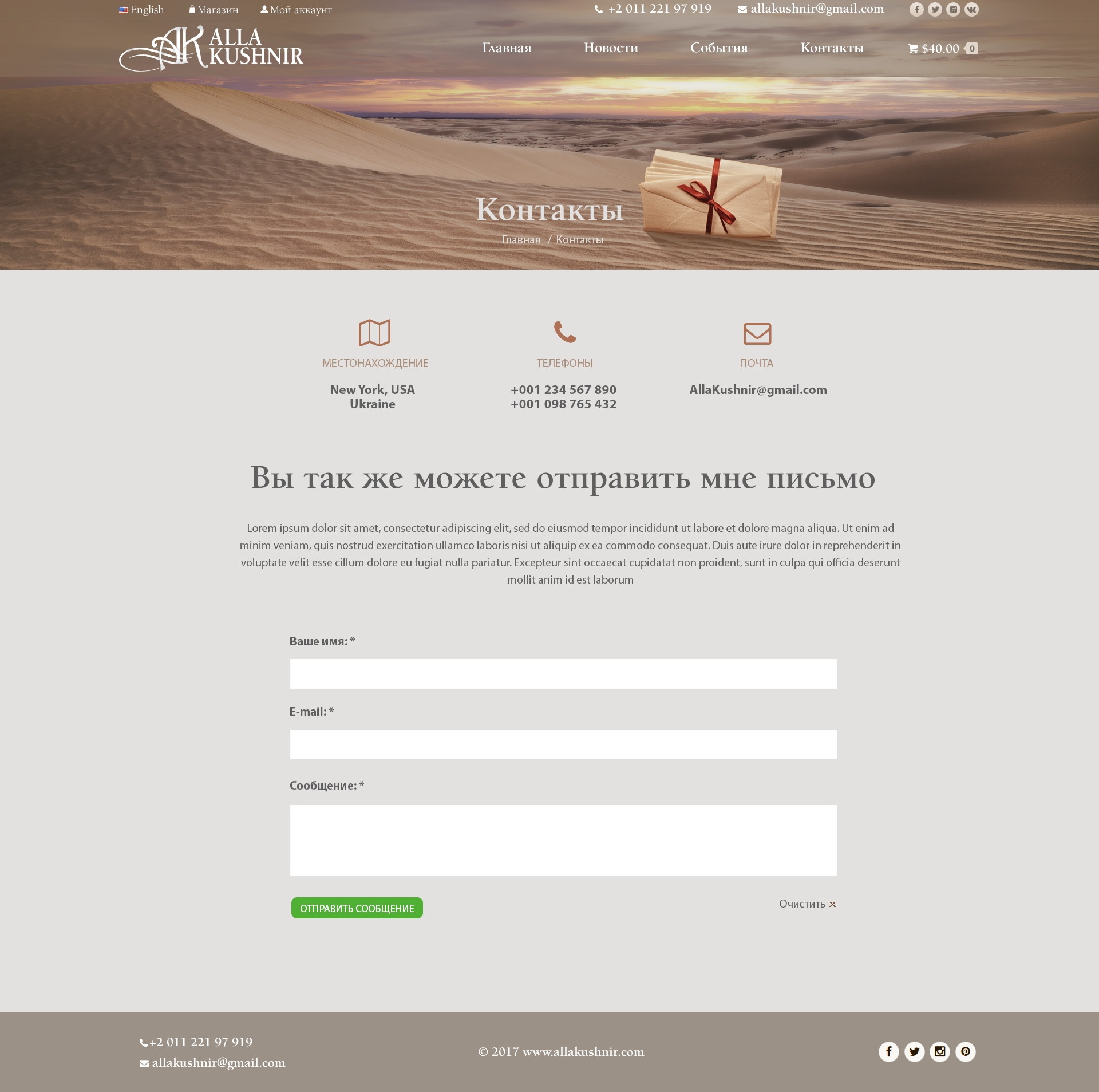 Создан красивый, атмосферный сайт с той же фирменной палитрой: бежевый, красный, светло-коричневый.