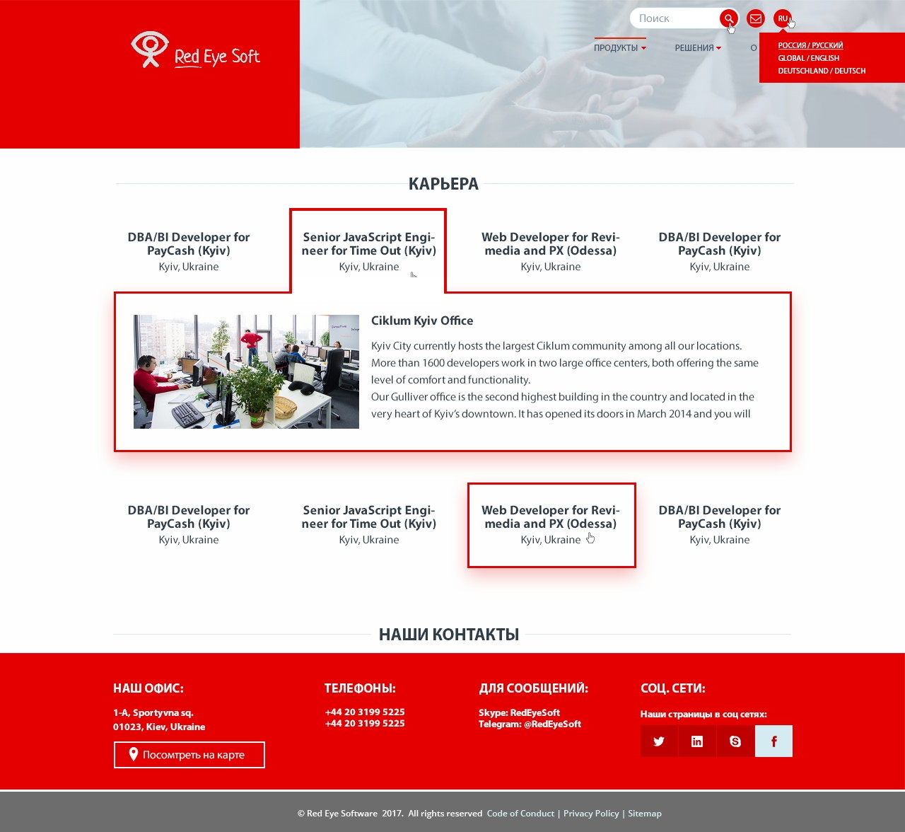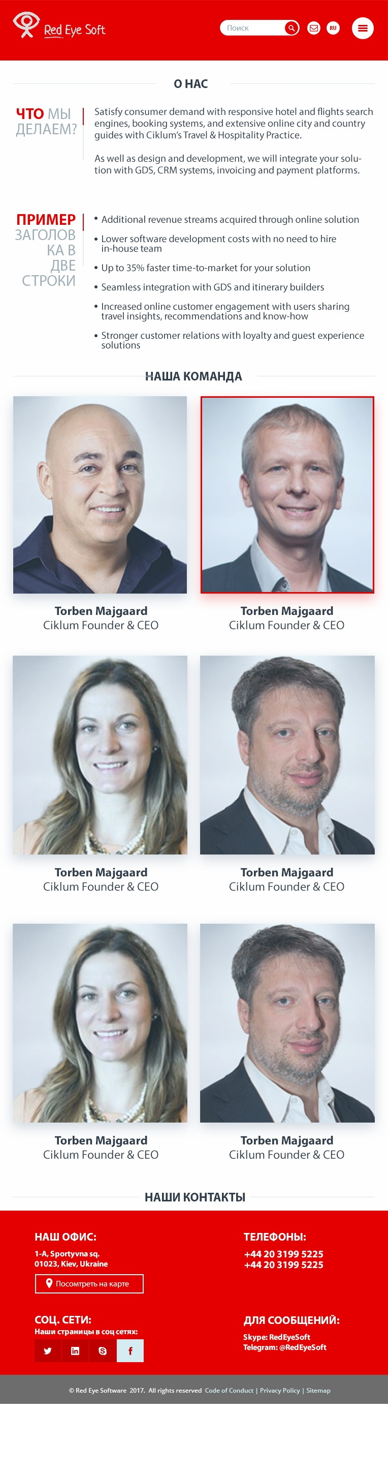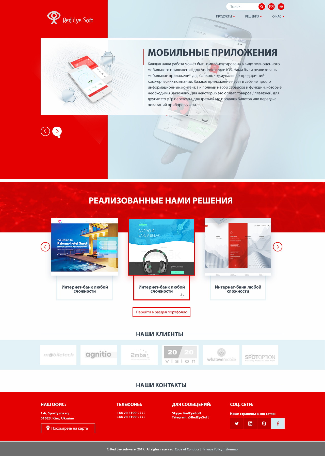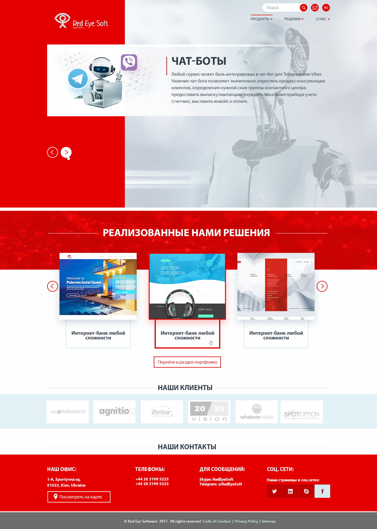 Интерфейс современный, акцентированный на технологиях, услугах и команде.