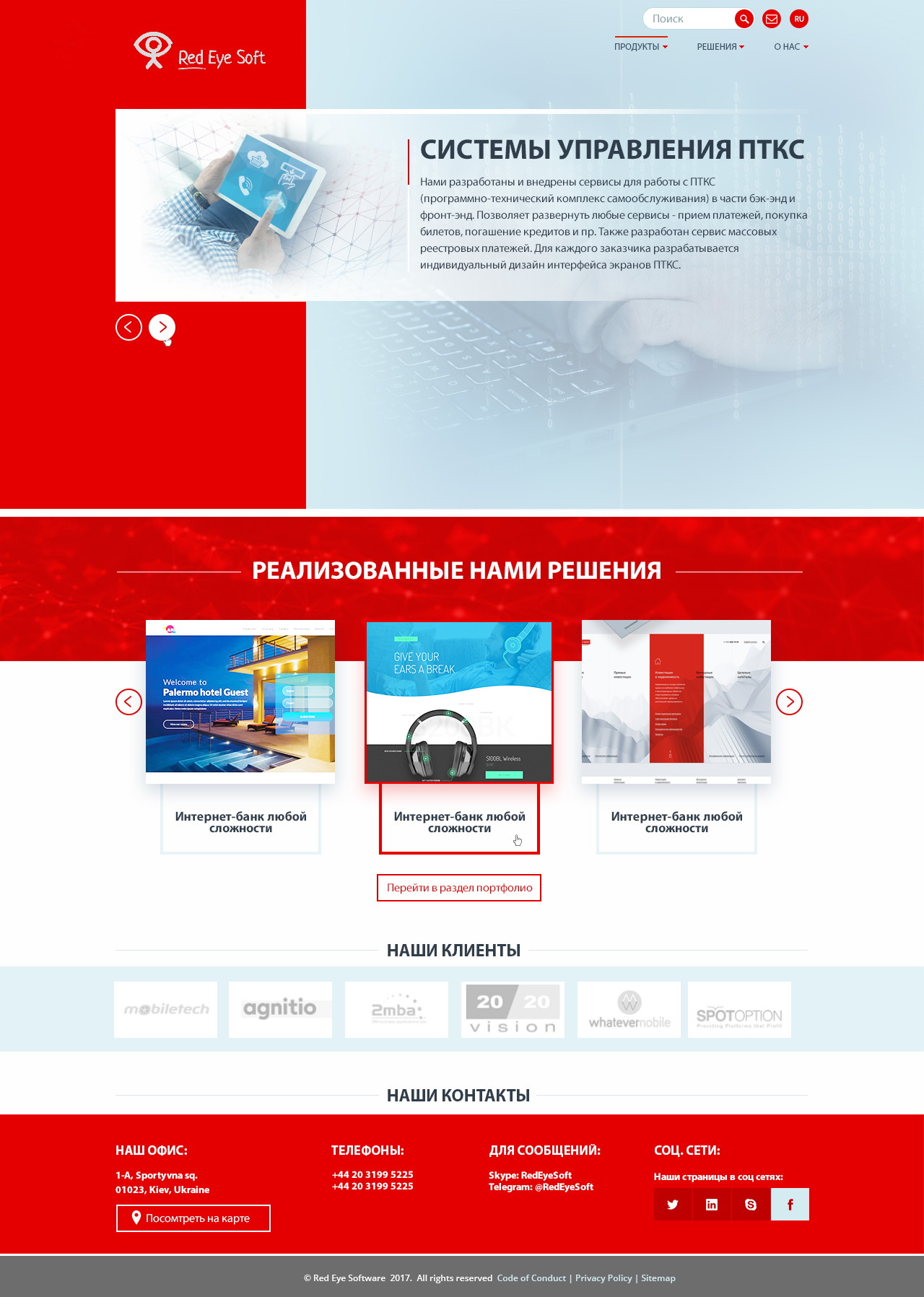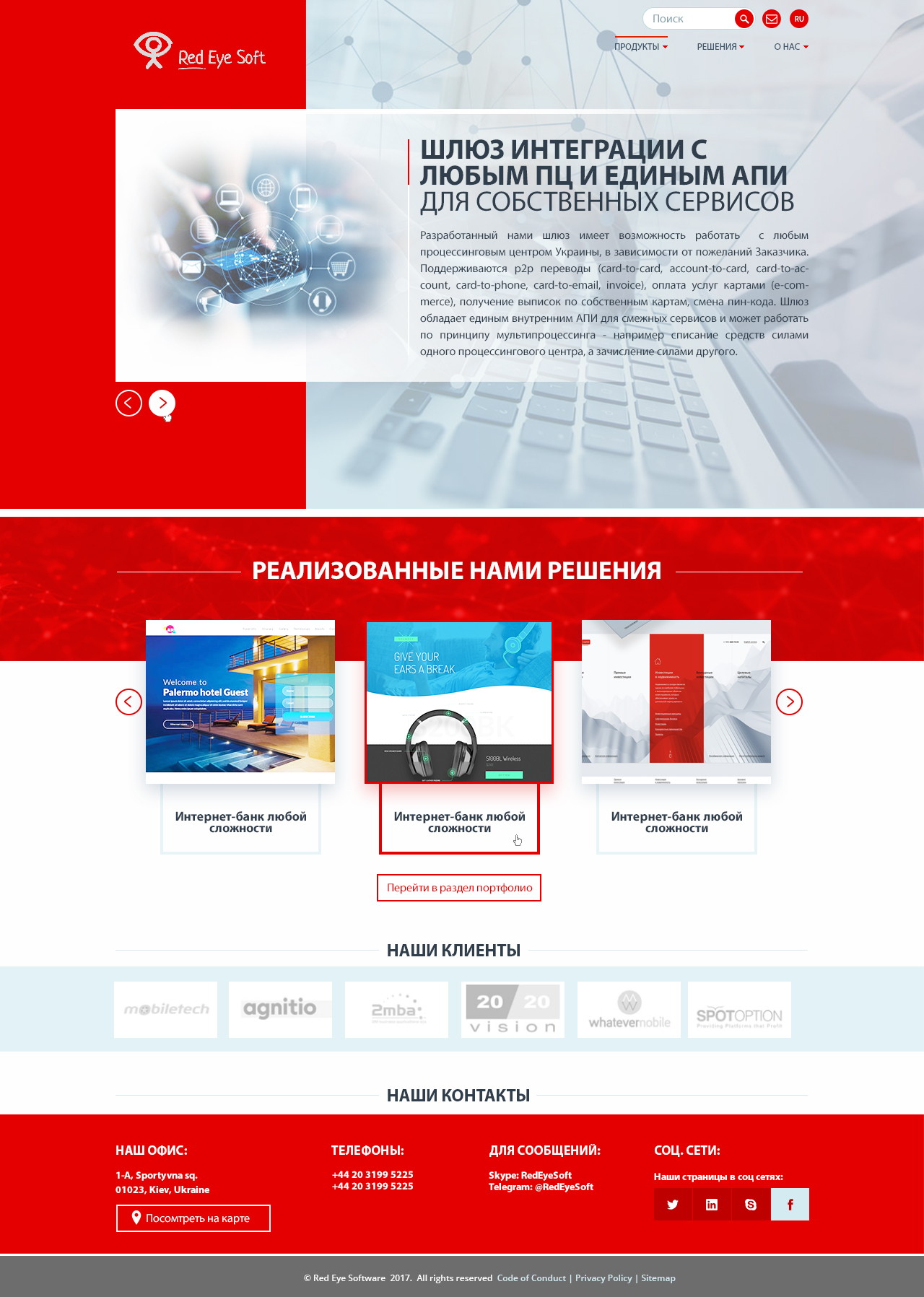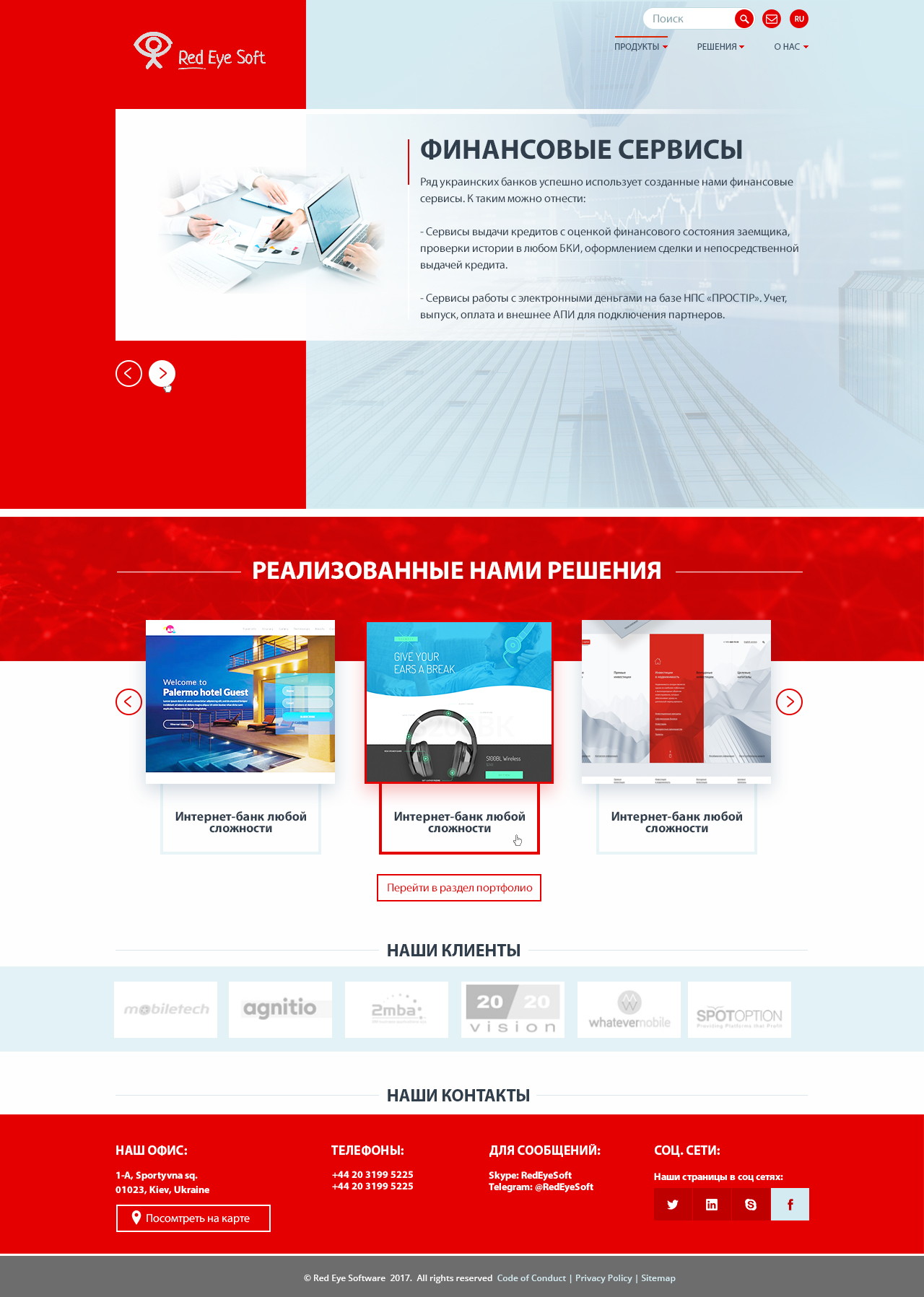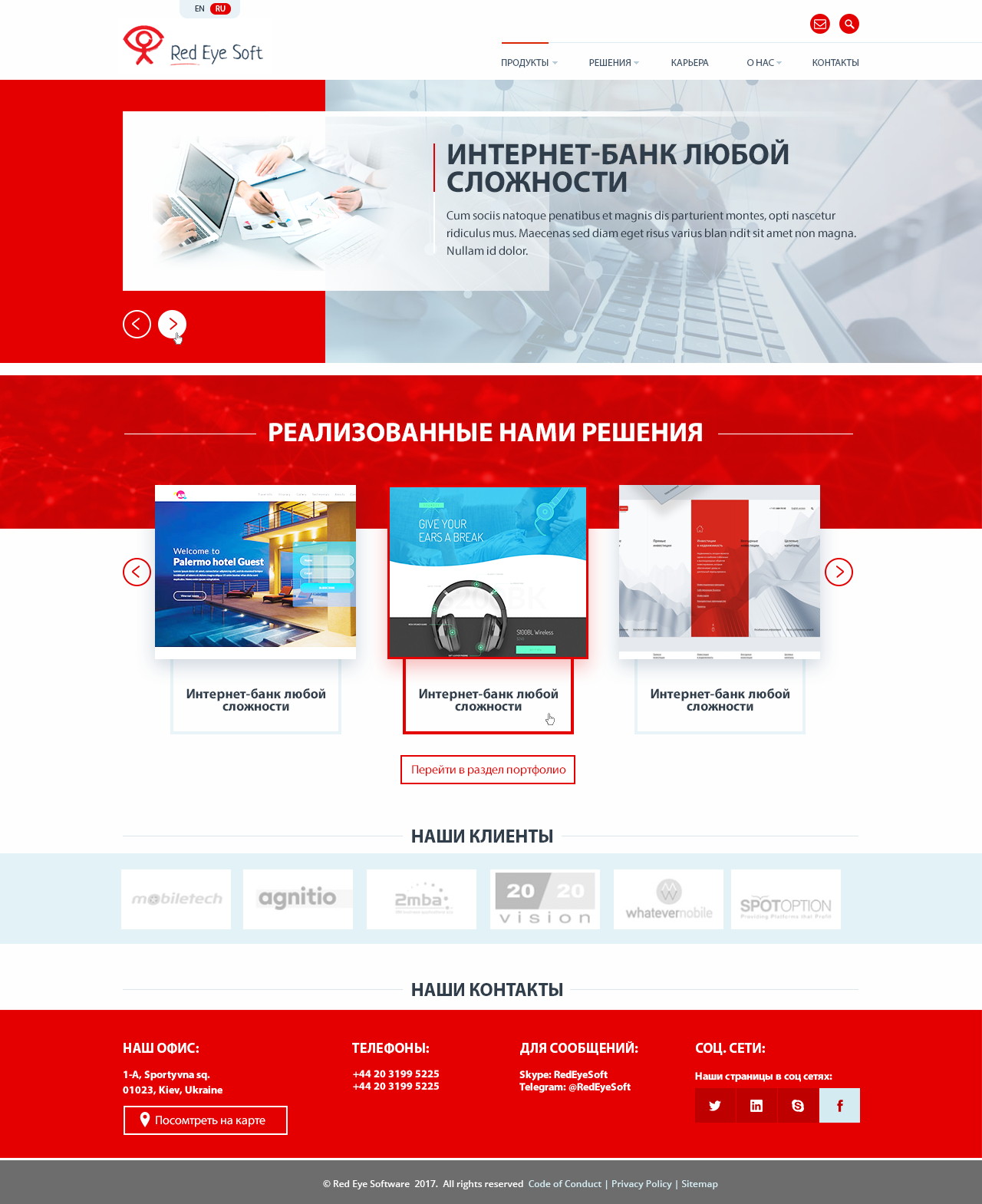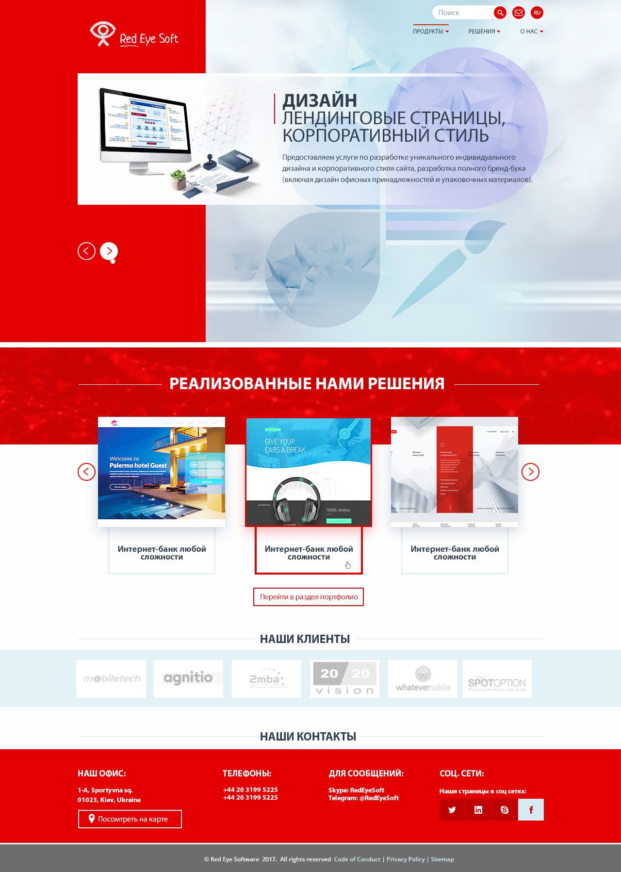 Создан стильный корпоративный дизайн в красно-бело-серой и голубой палитре.