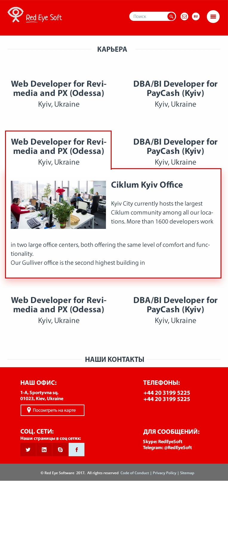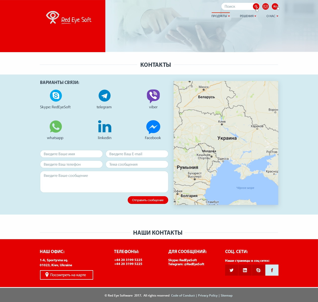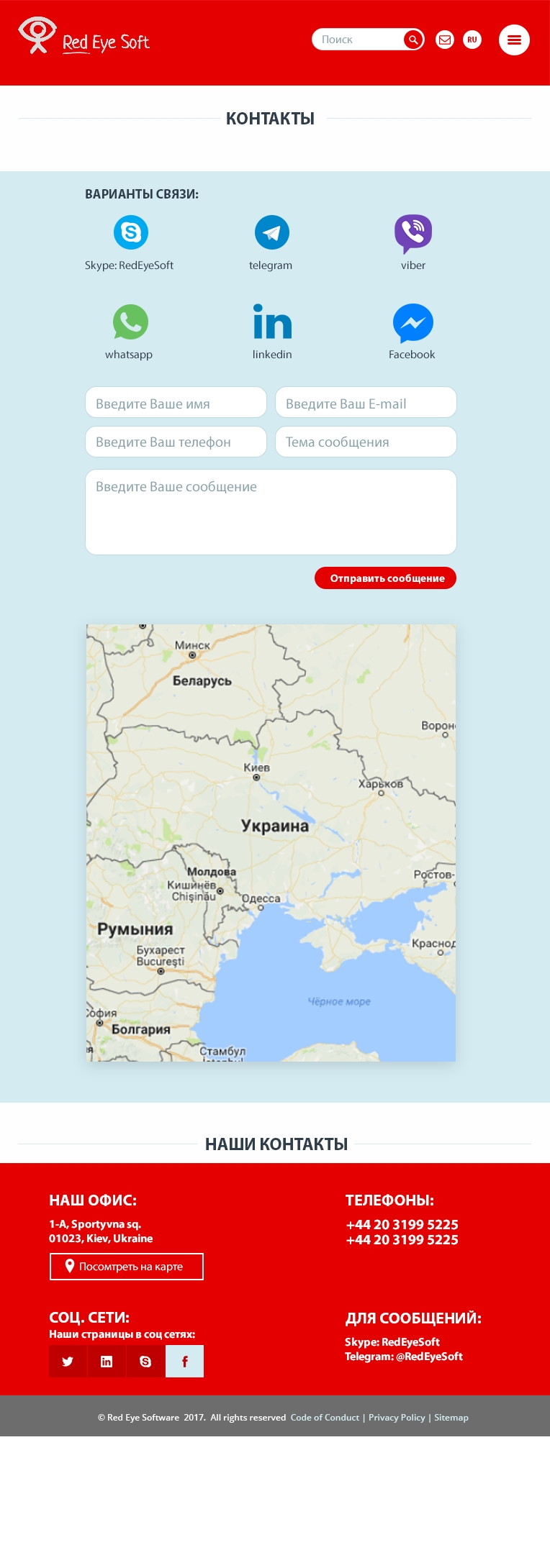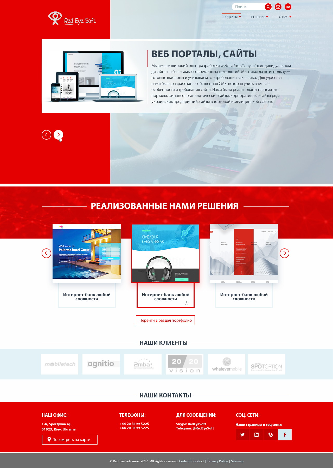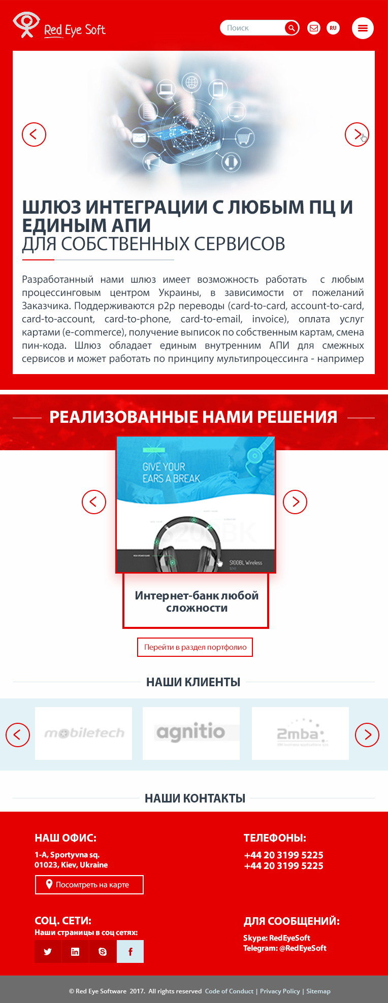 Создан стильный корпоративный дизайн в красно-бело-серой и голубой палитре.