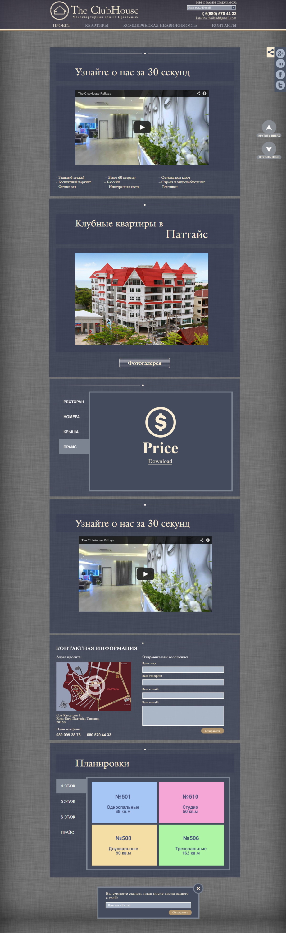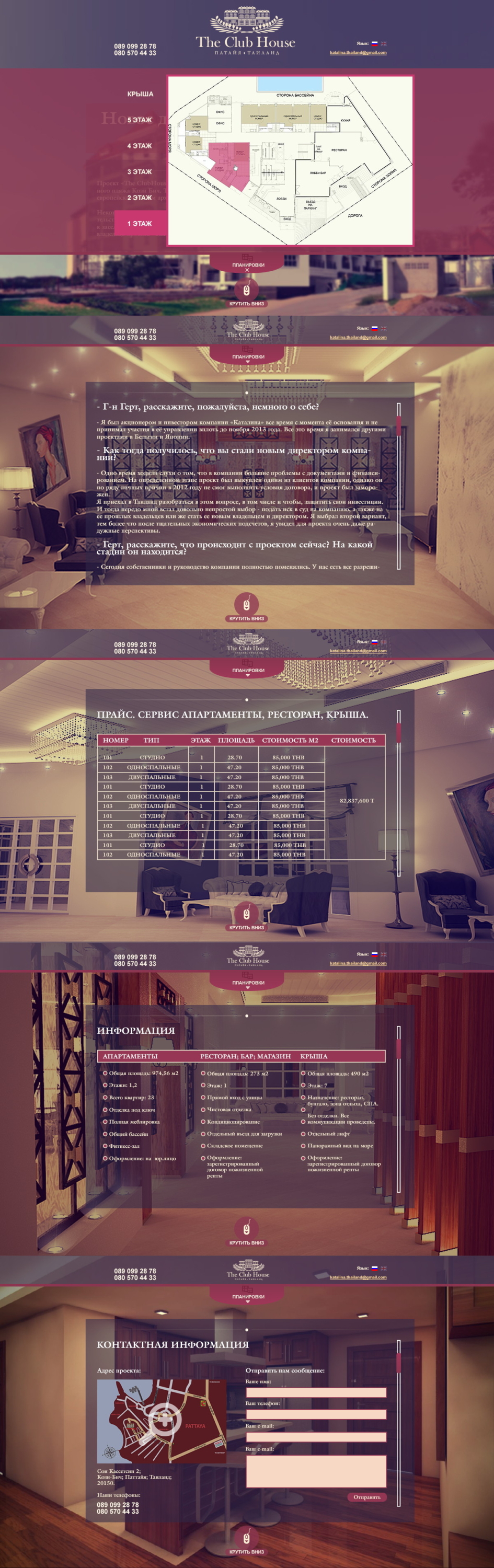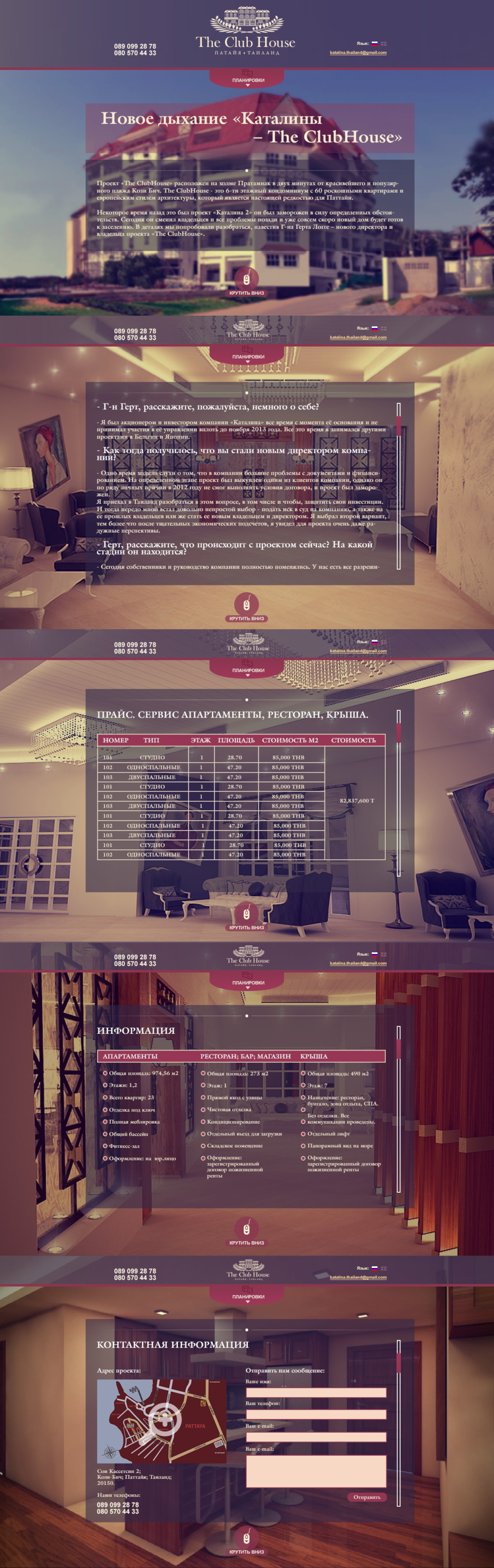Создан дизайн веб-сайта для клубного дома в Таиланде, с целью представить уникальный отдых и атмосферу объекта для потенциальных клиентов.