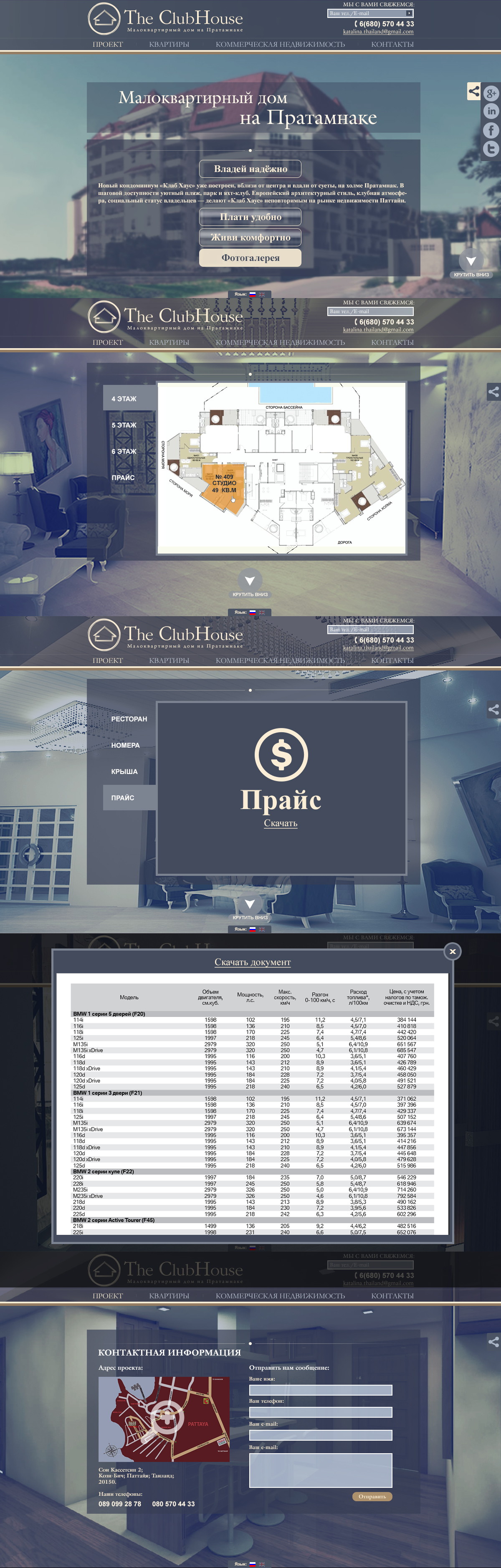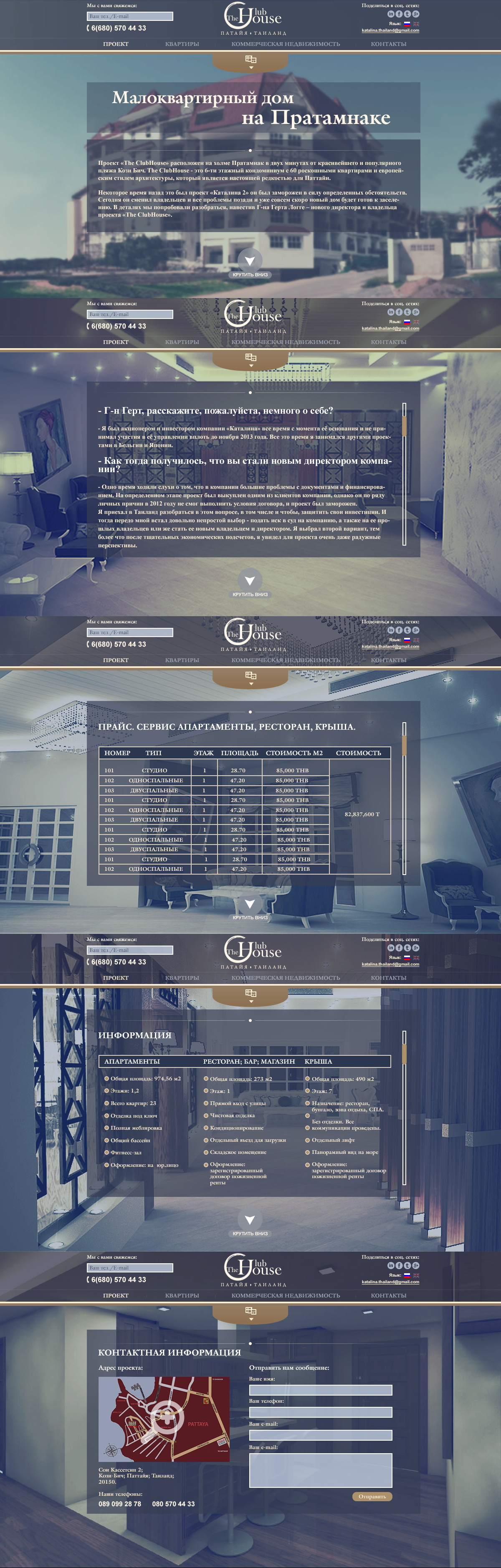 Создан дизайн веб-сайта для клубного дома в Таиланде, с целью представить уникальный отдых и атмосферу объекта для потенциальных клиентов.
