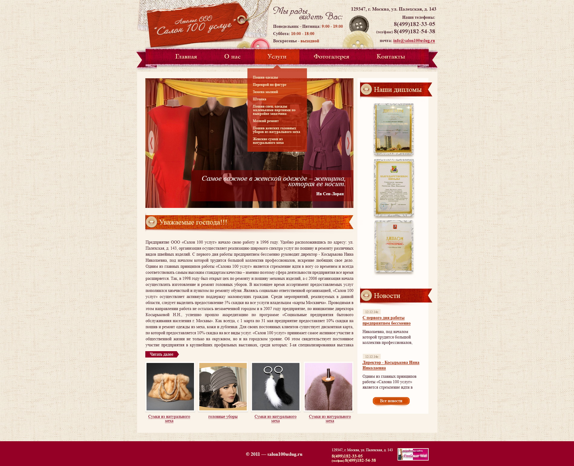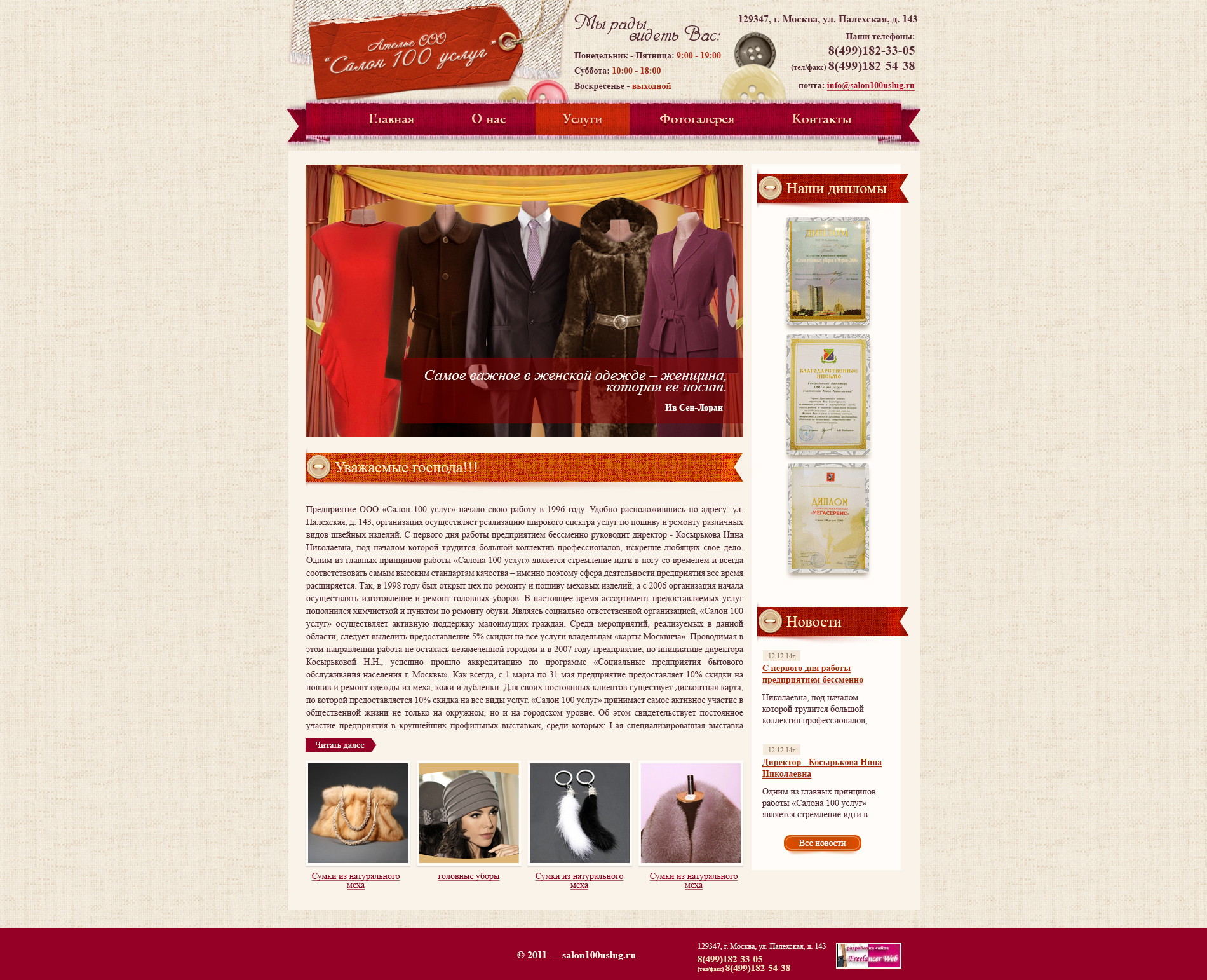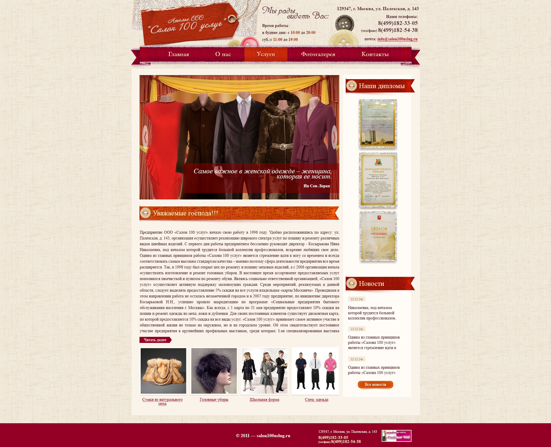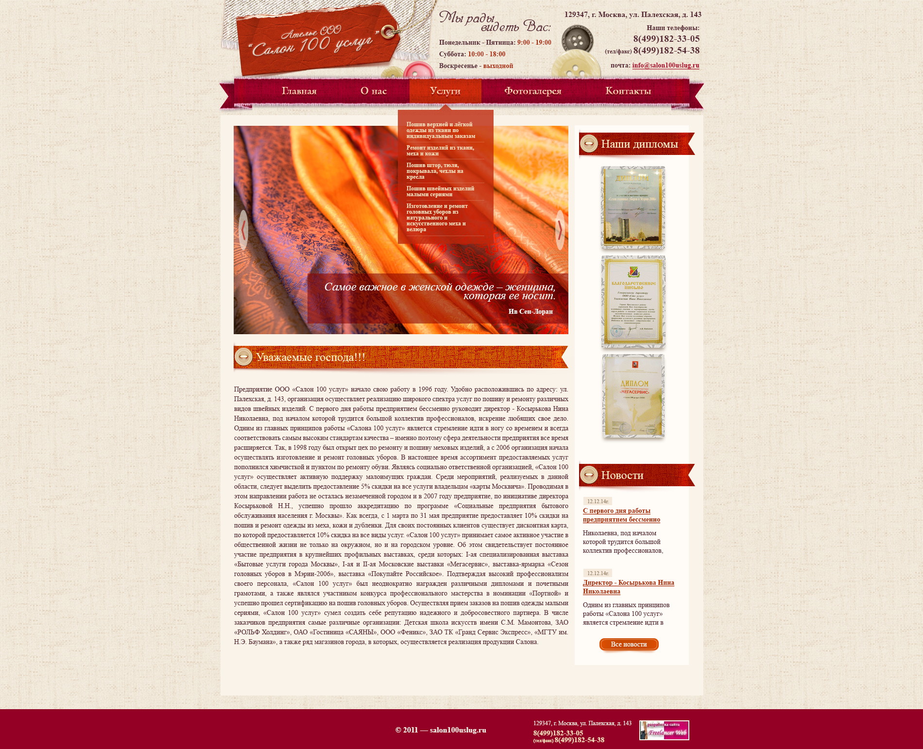 Для сайта ателье был разработан дизайн, передающий атмосферу индивидуального пошива и ручной работы. В основе — тёплая палитра: бордовый и красный создают ассоциации с роскошью тканей и элегантностью, оранжевый добавляет энергии и динамики, а бежевый оттеняет композицию, внося мягкость и уют. Такая цветовая схема позволяет подчеркнуть творческое направление бизнеса и выделить акценты на основных услугах.