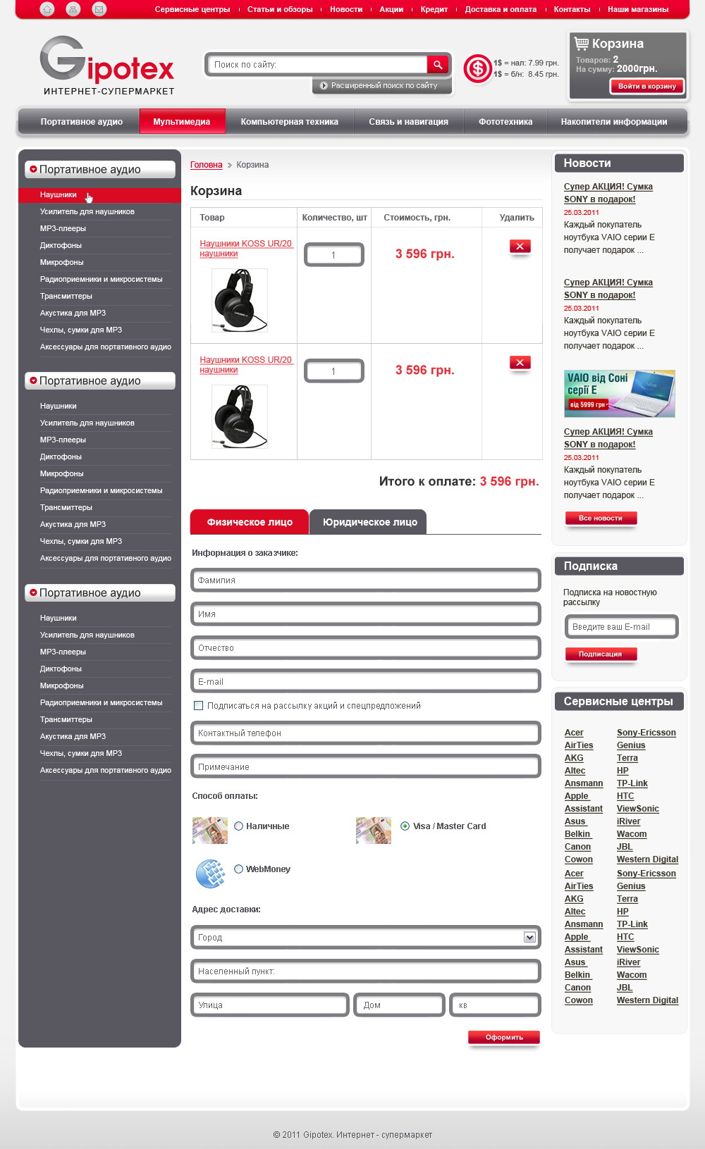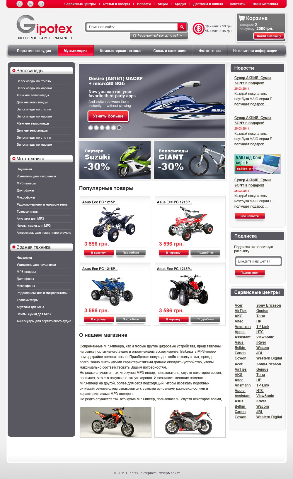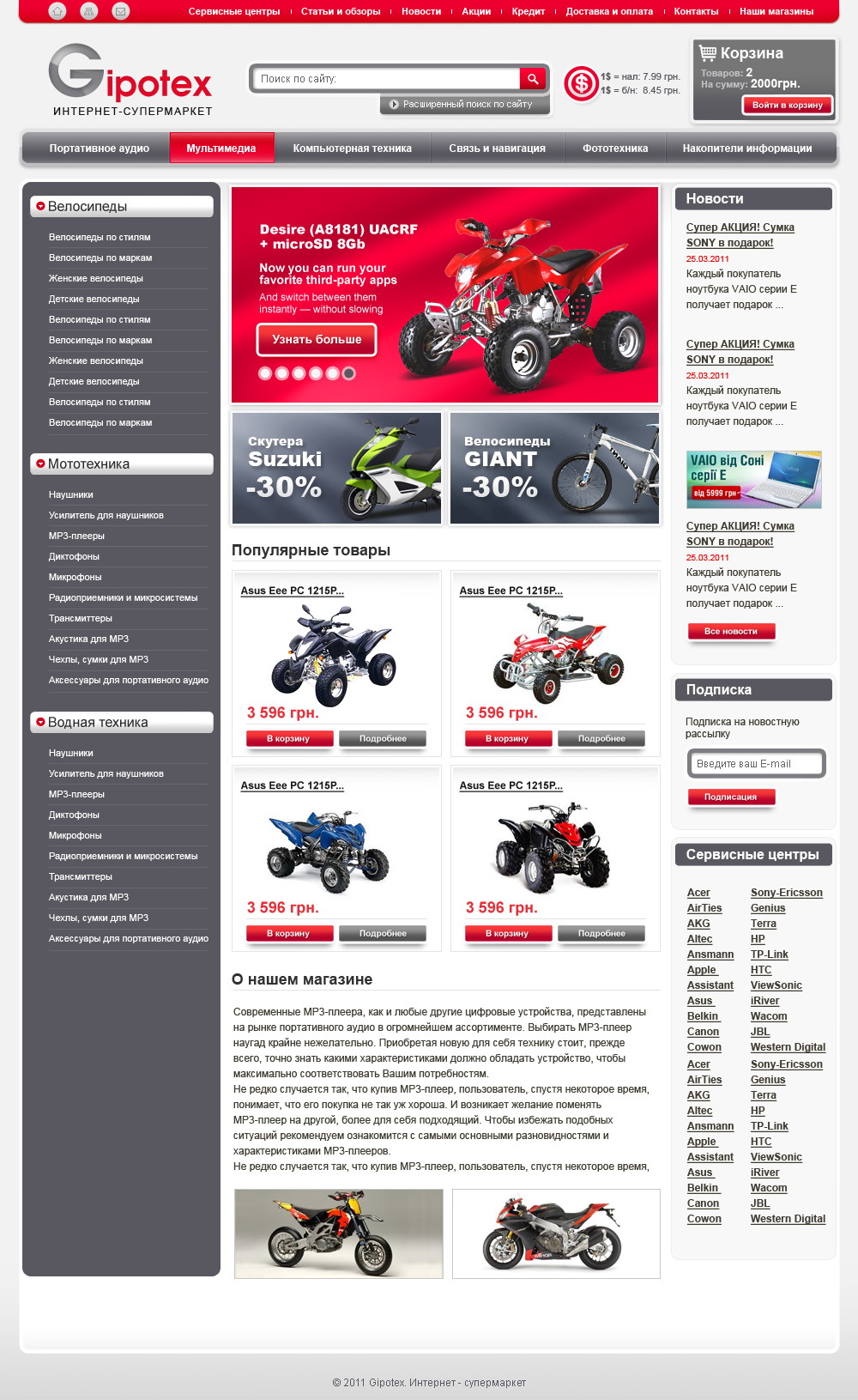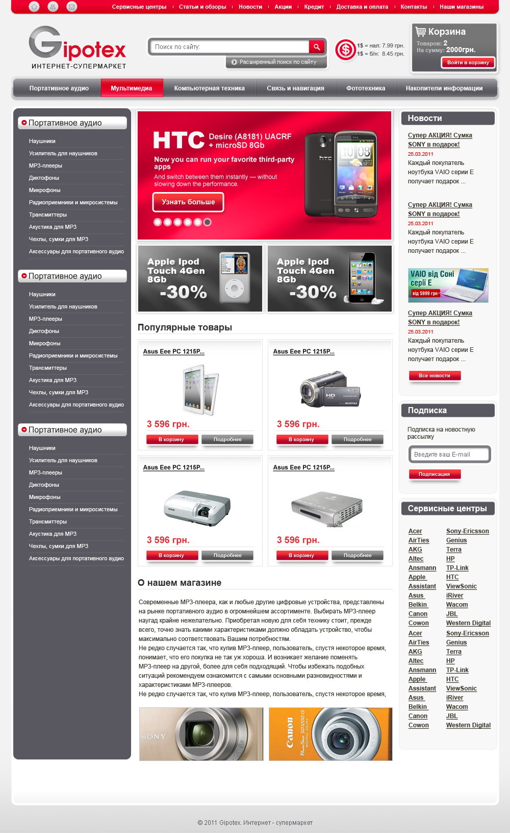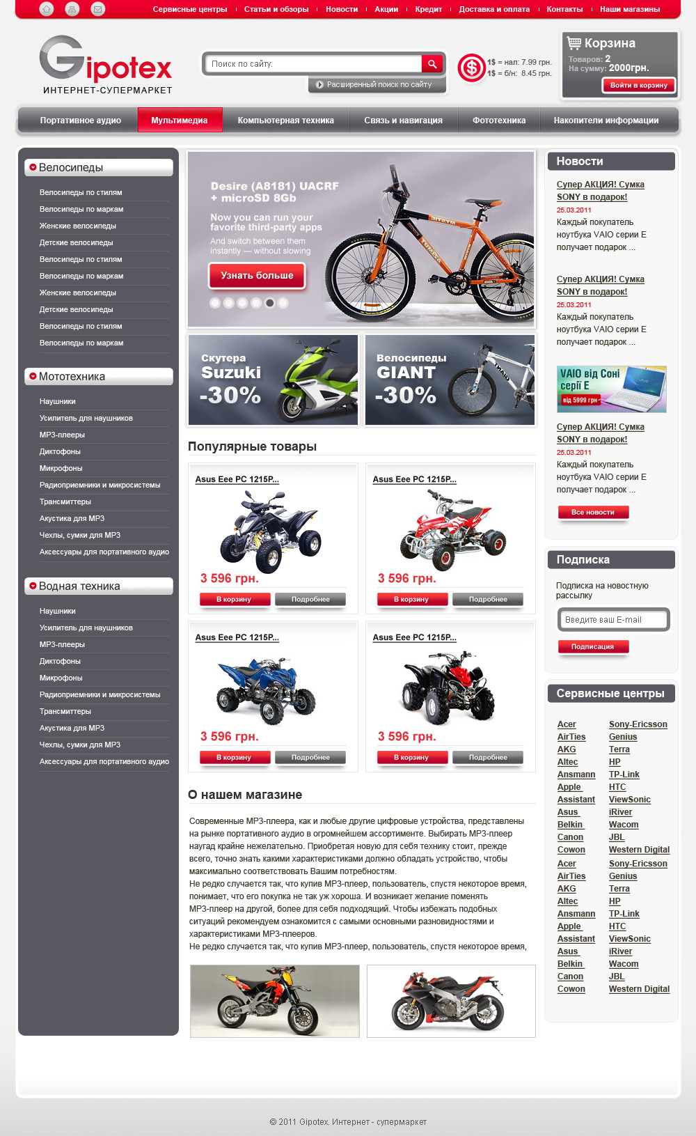 Созданы макеты под OpenCart в минималистичной палитре белого, серого и красного.