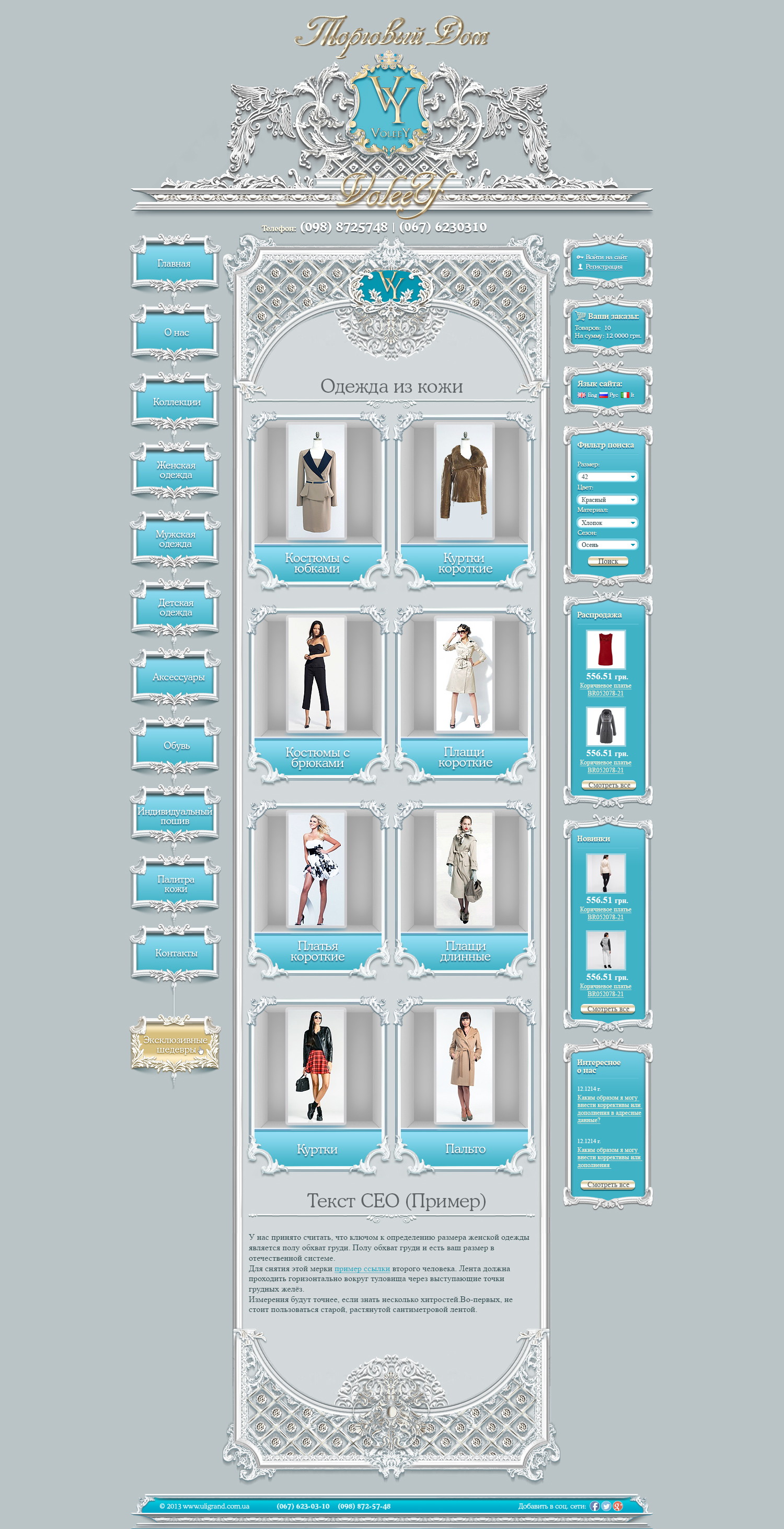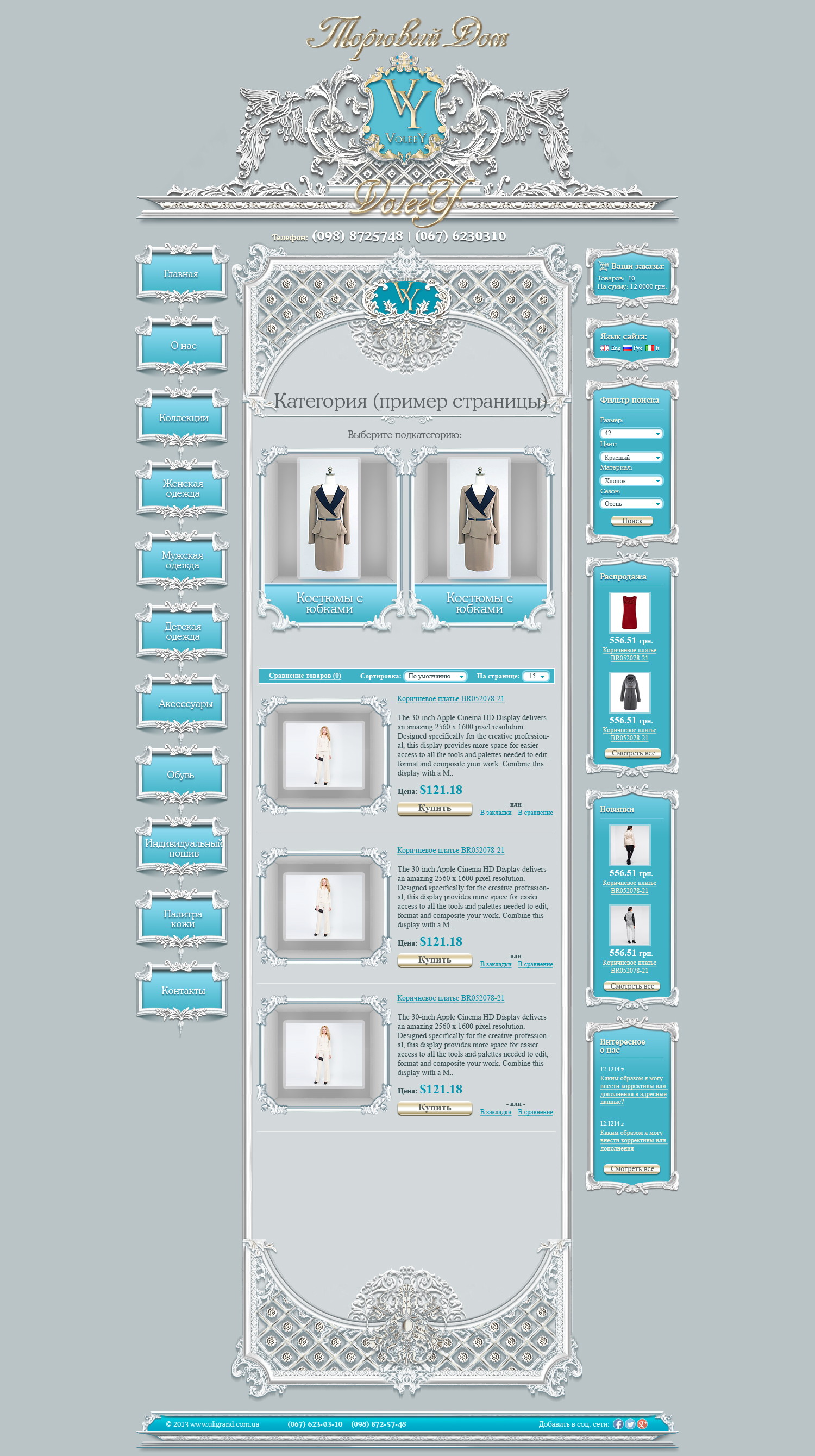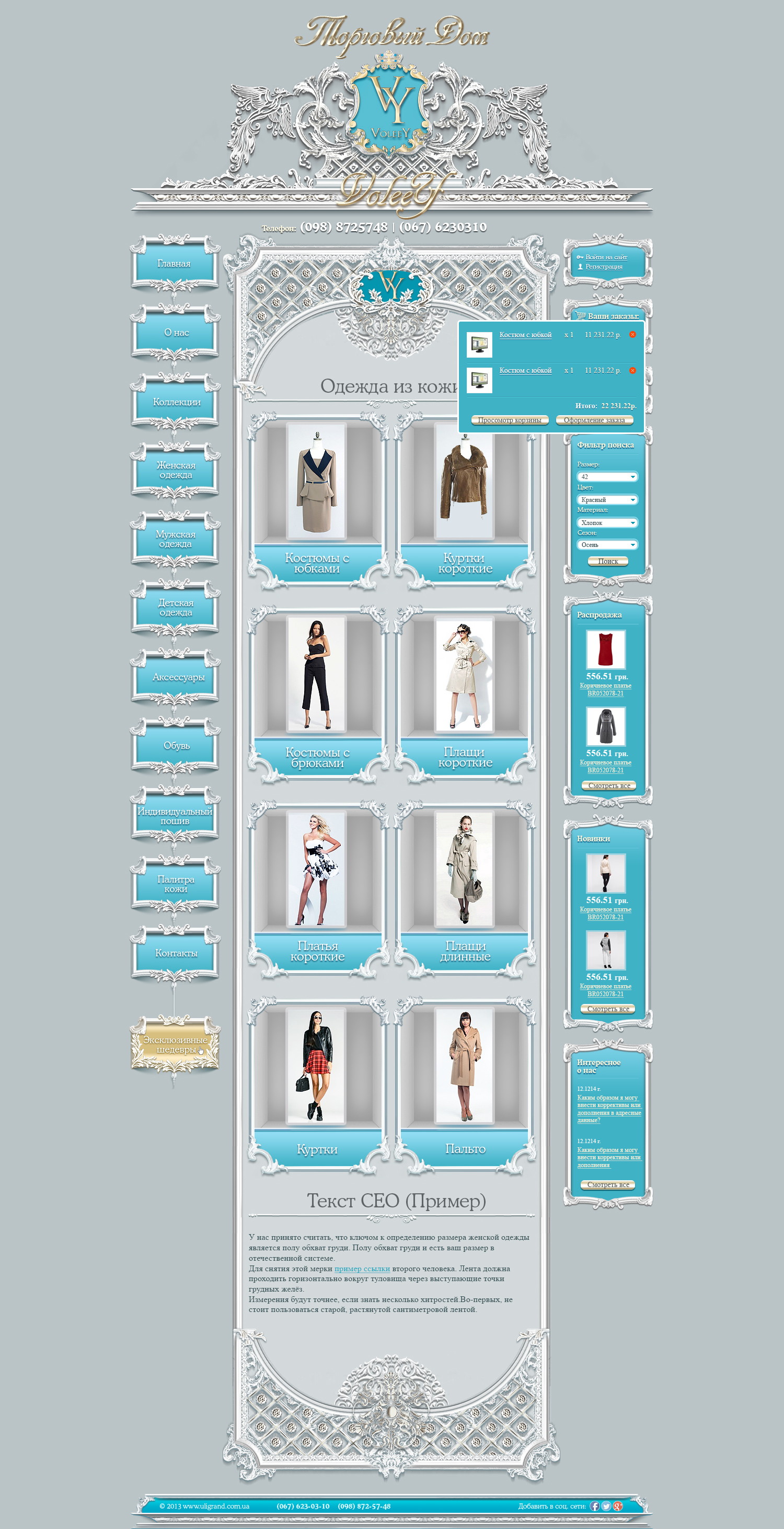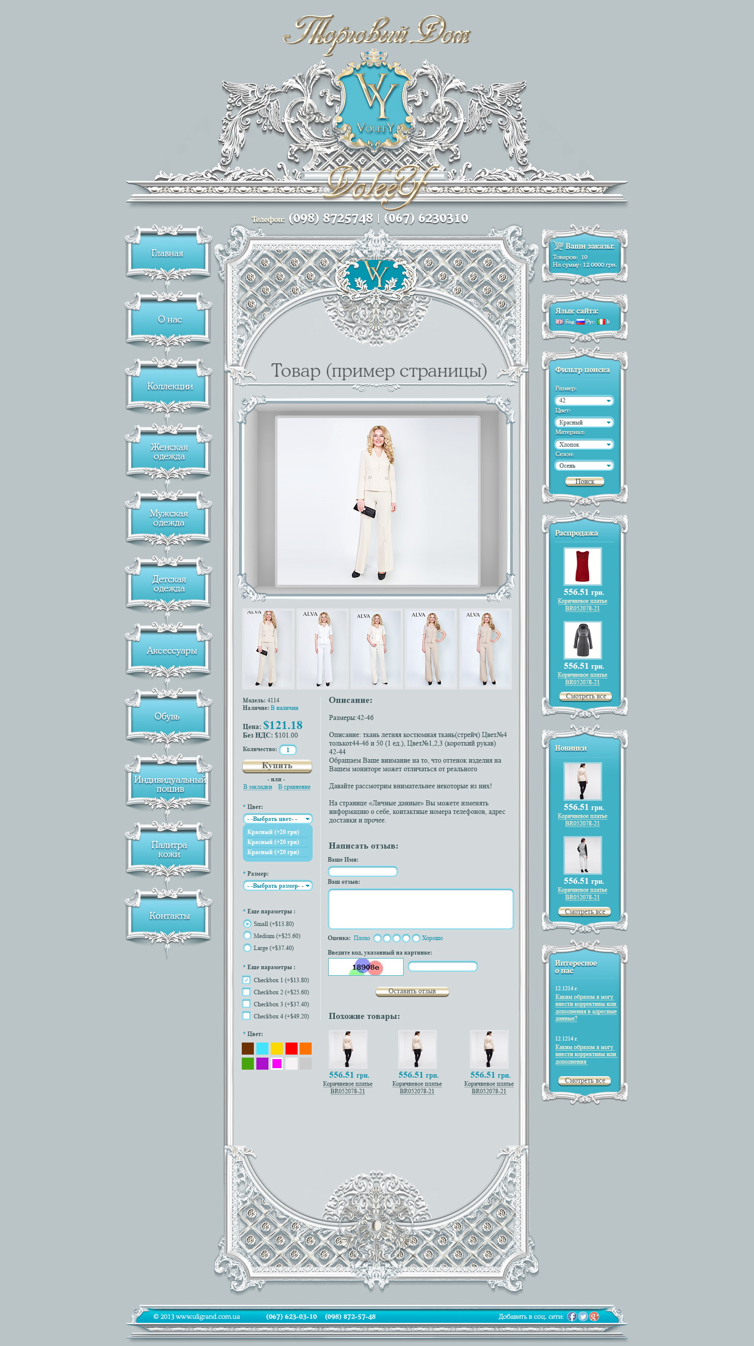 В дизайне акцент сделан на крупные фотографии, удобный каталог и структурированные карточки товаров.