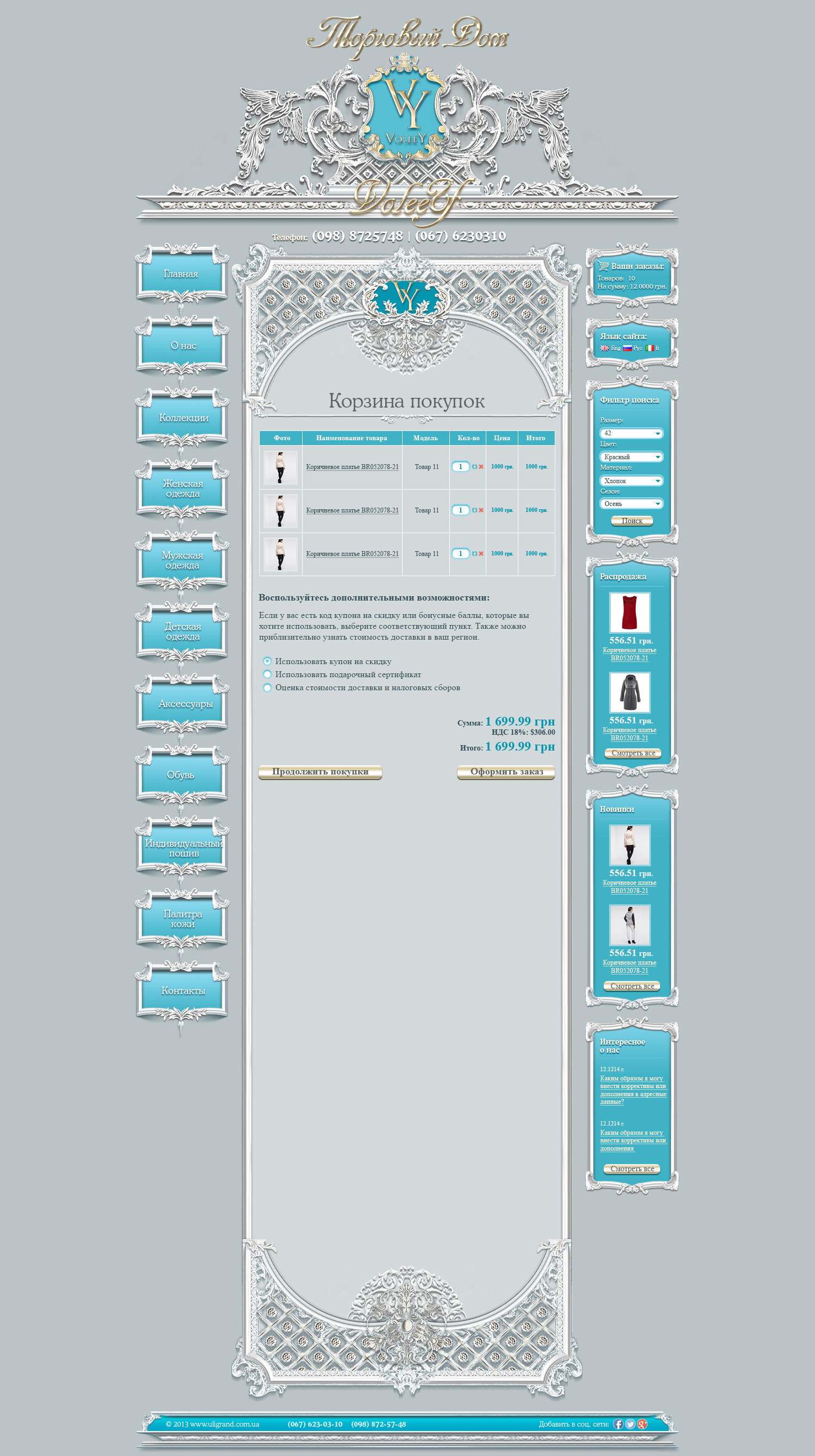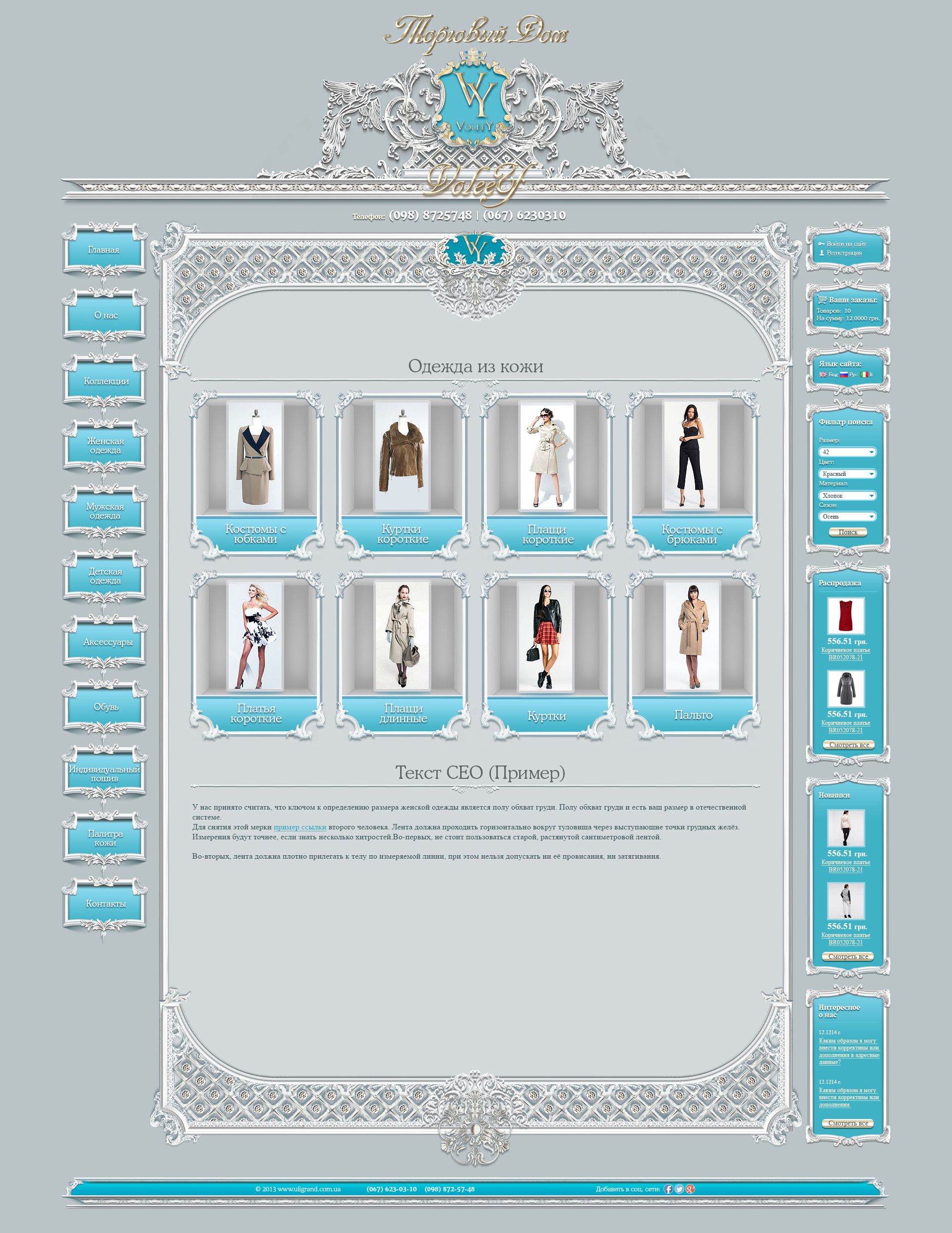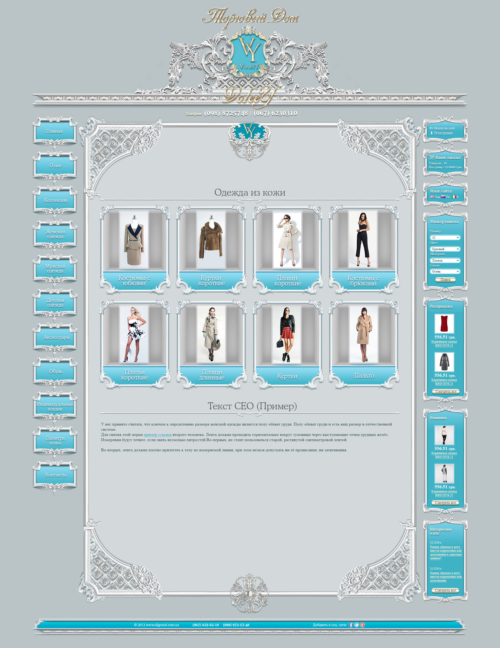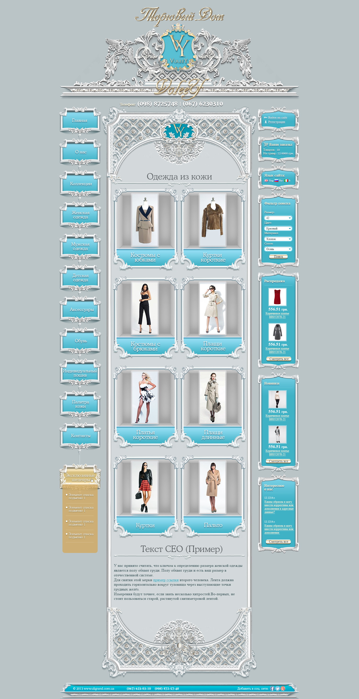 В дизайне акцент сделан на крупные фотографии, удобный каталог и структурированные карточки товаров.