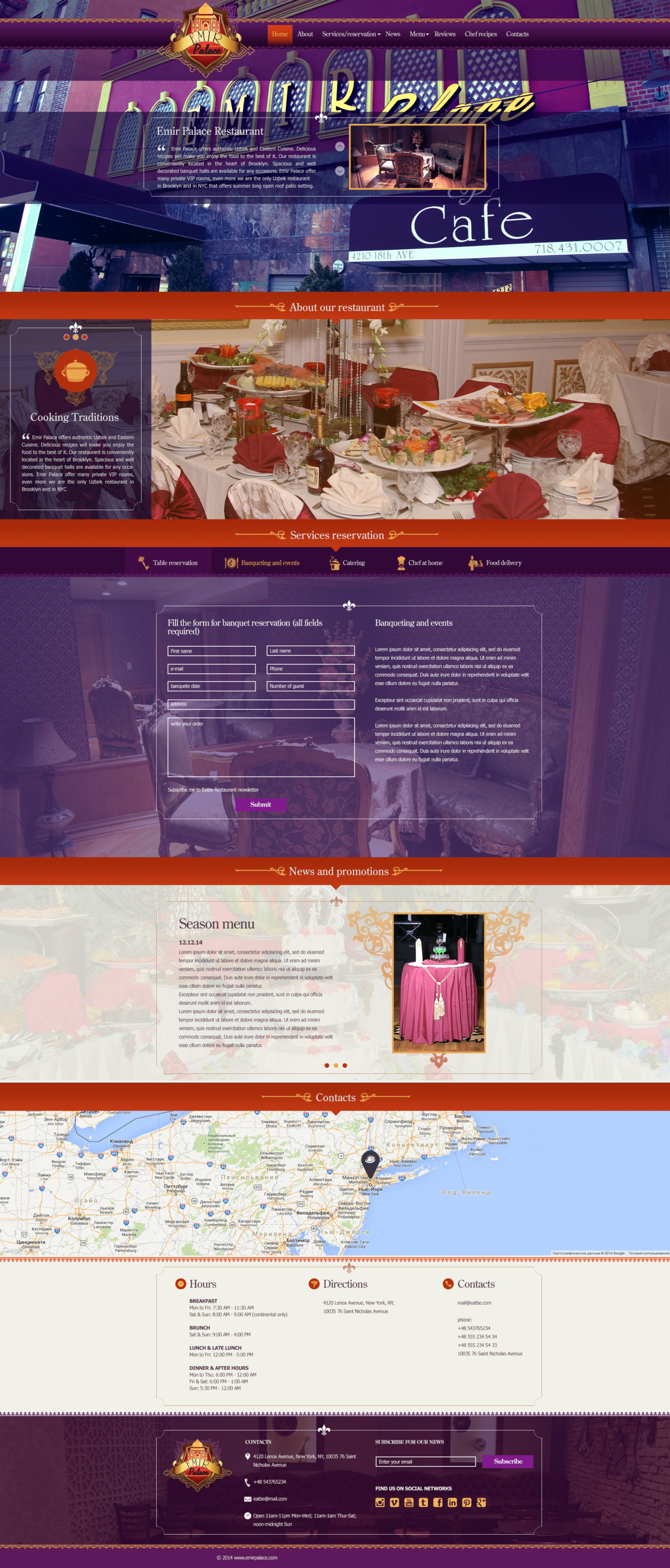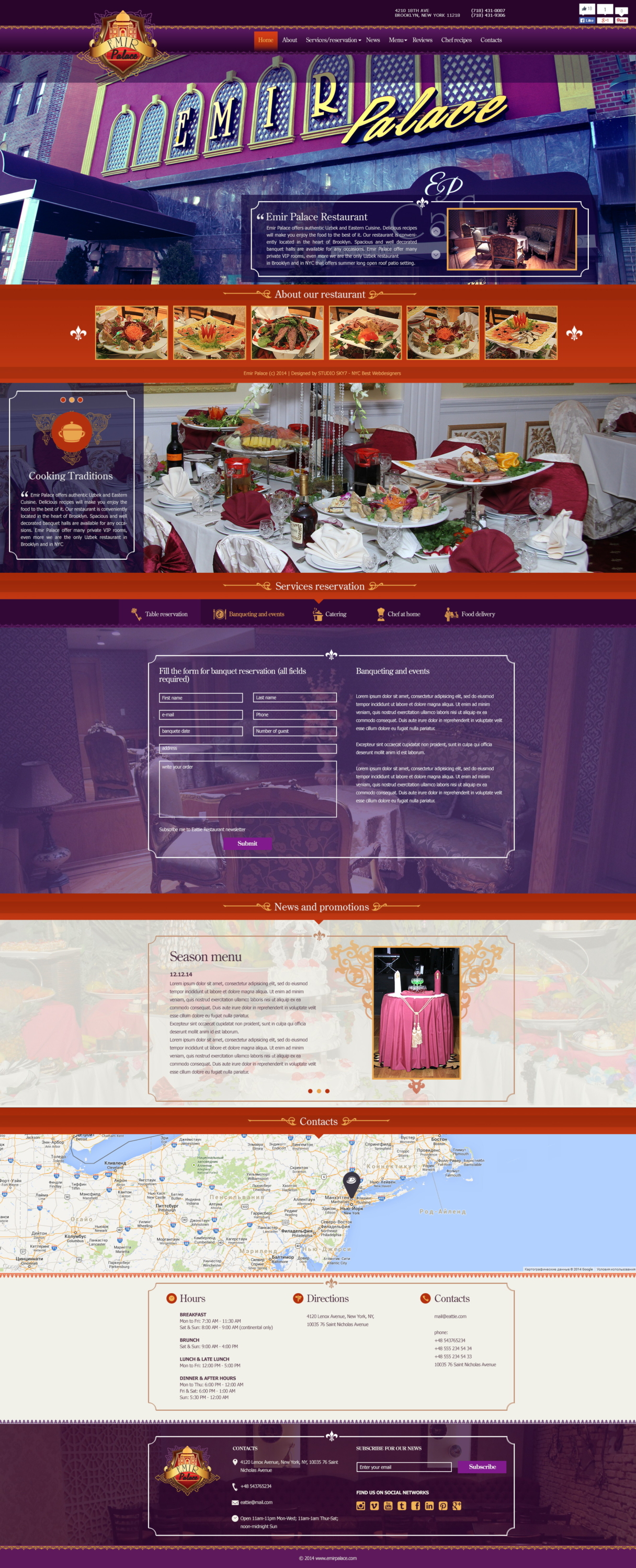 Интерфейс ориентирован на меню, атмосферные фотографии, онлайн-бронирование и презентацию ресторана.