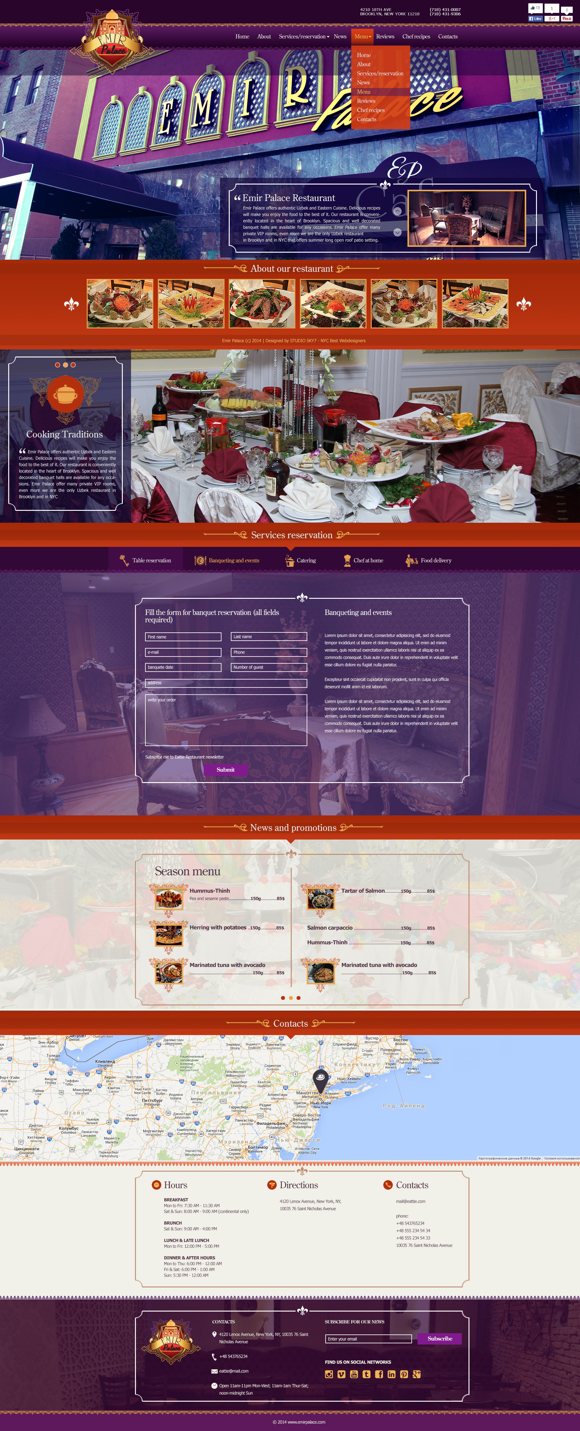 Интерфейс ориентирован на меню, атмосферные фотографии, онлайн-бронирование и презентацию ресторана.