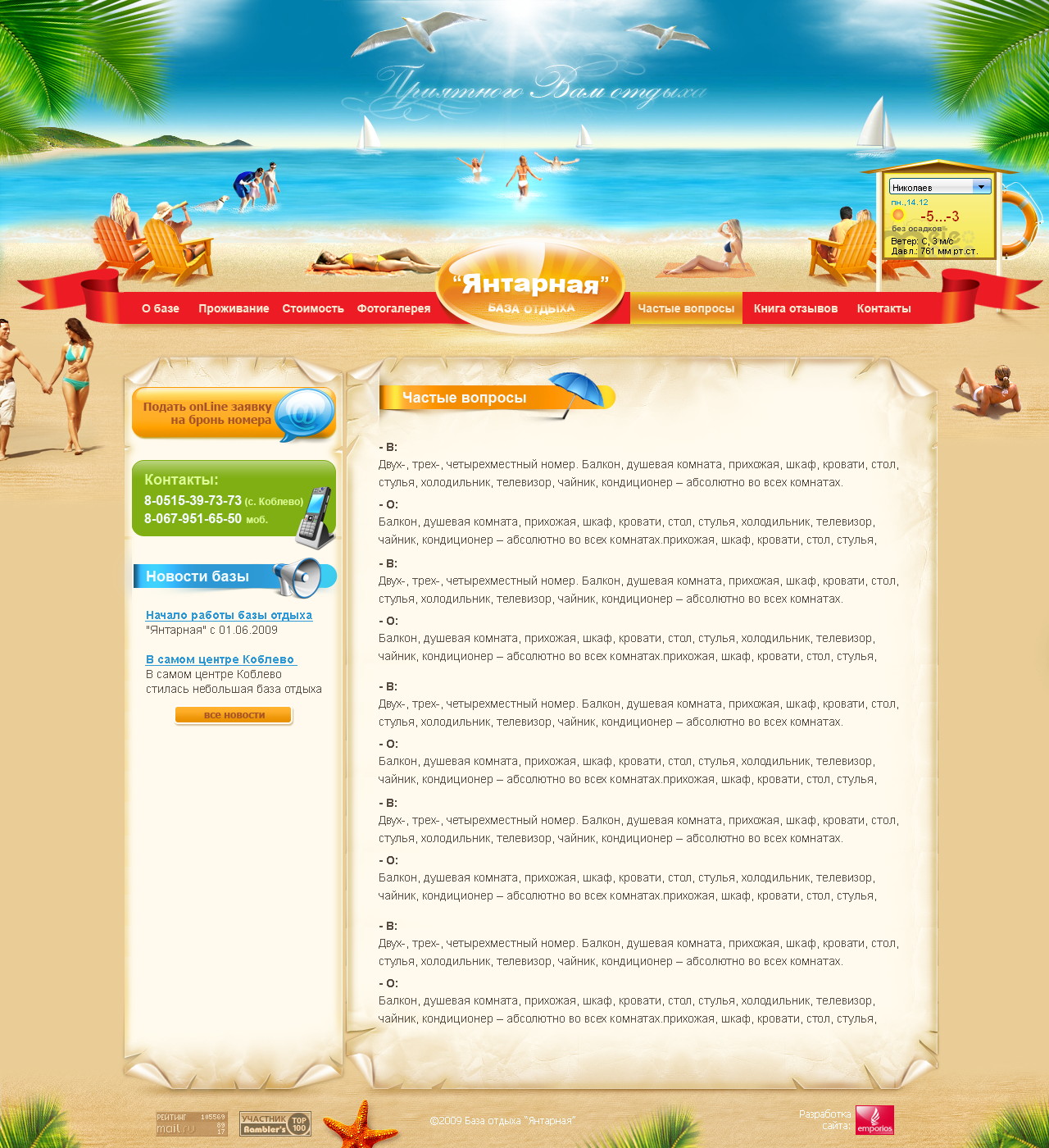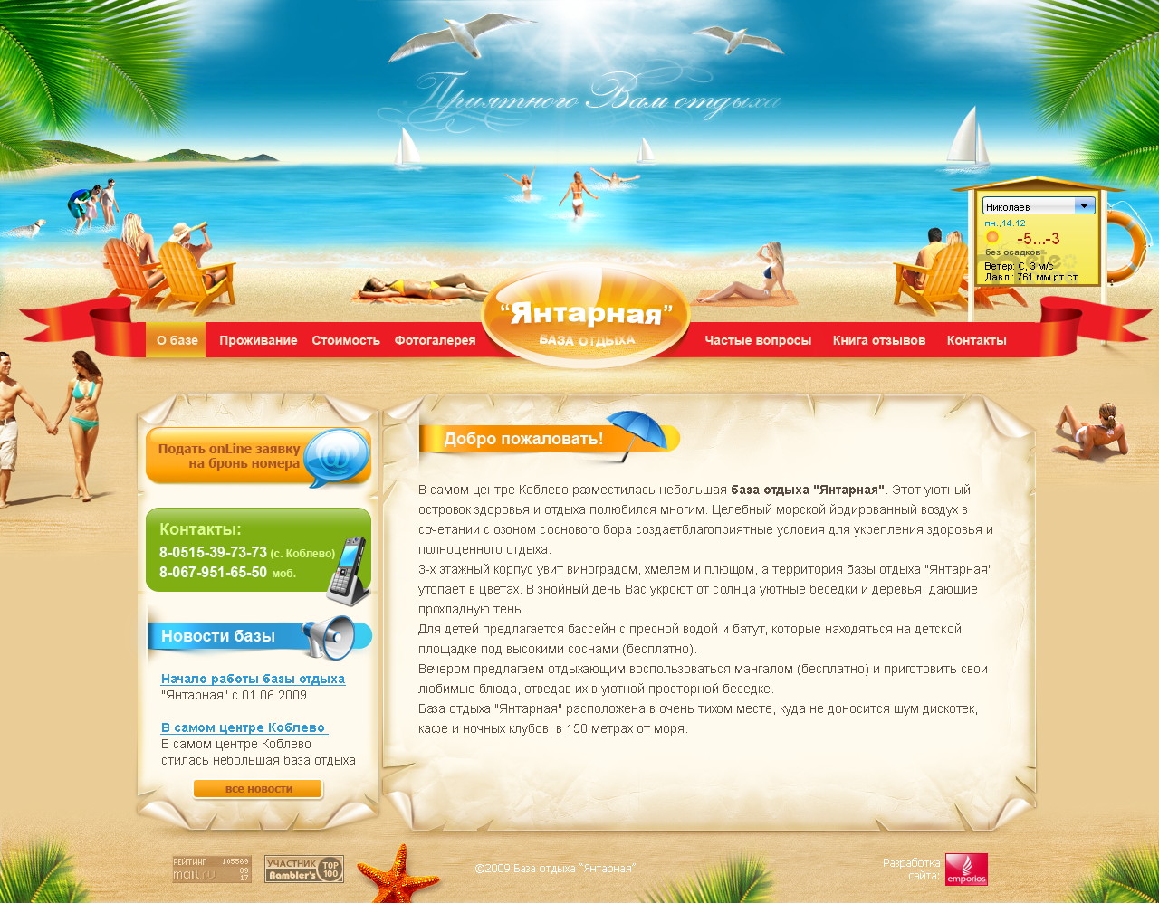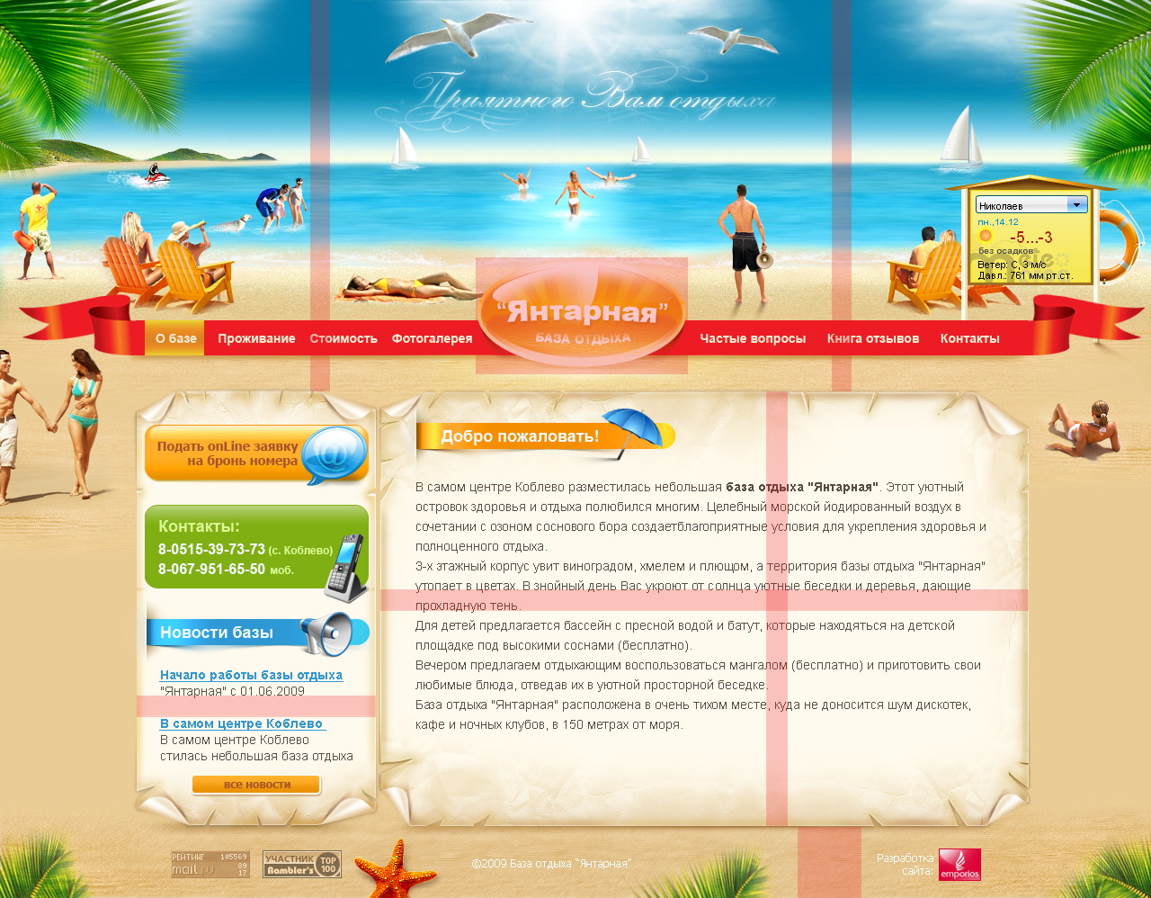 Создан легкий и яркий сайт-визитка для базы отдыха.