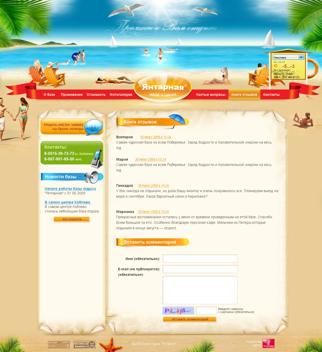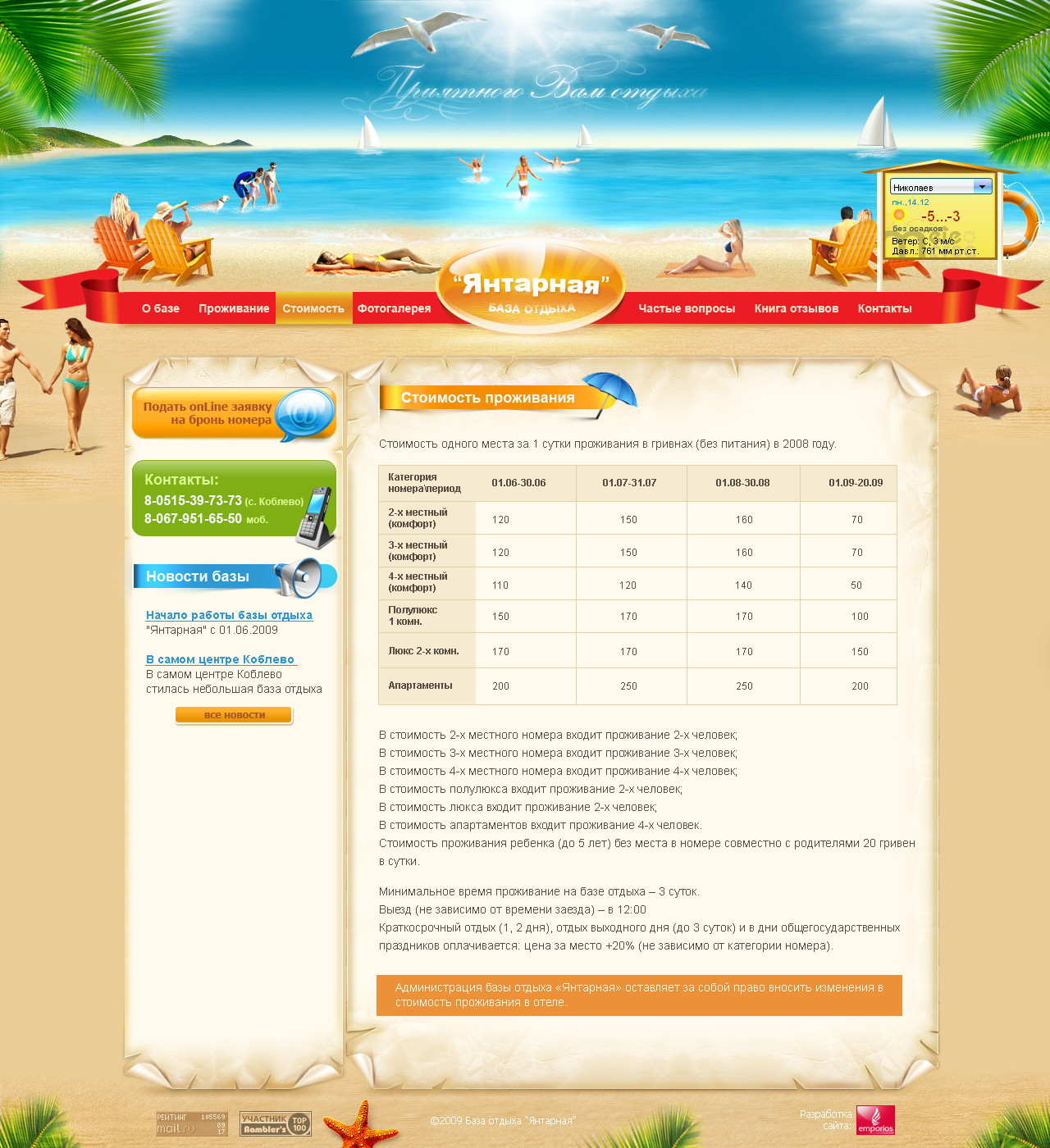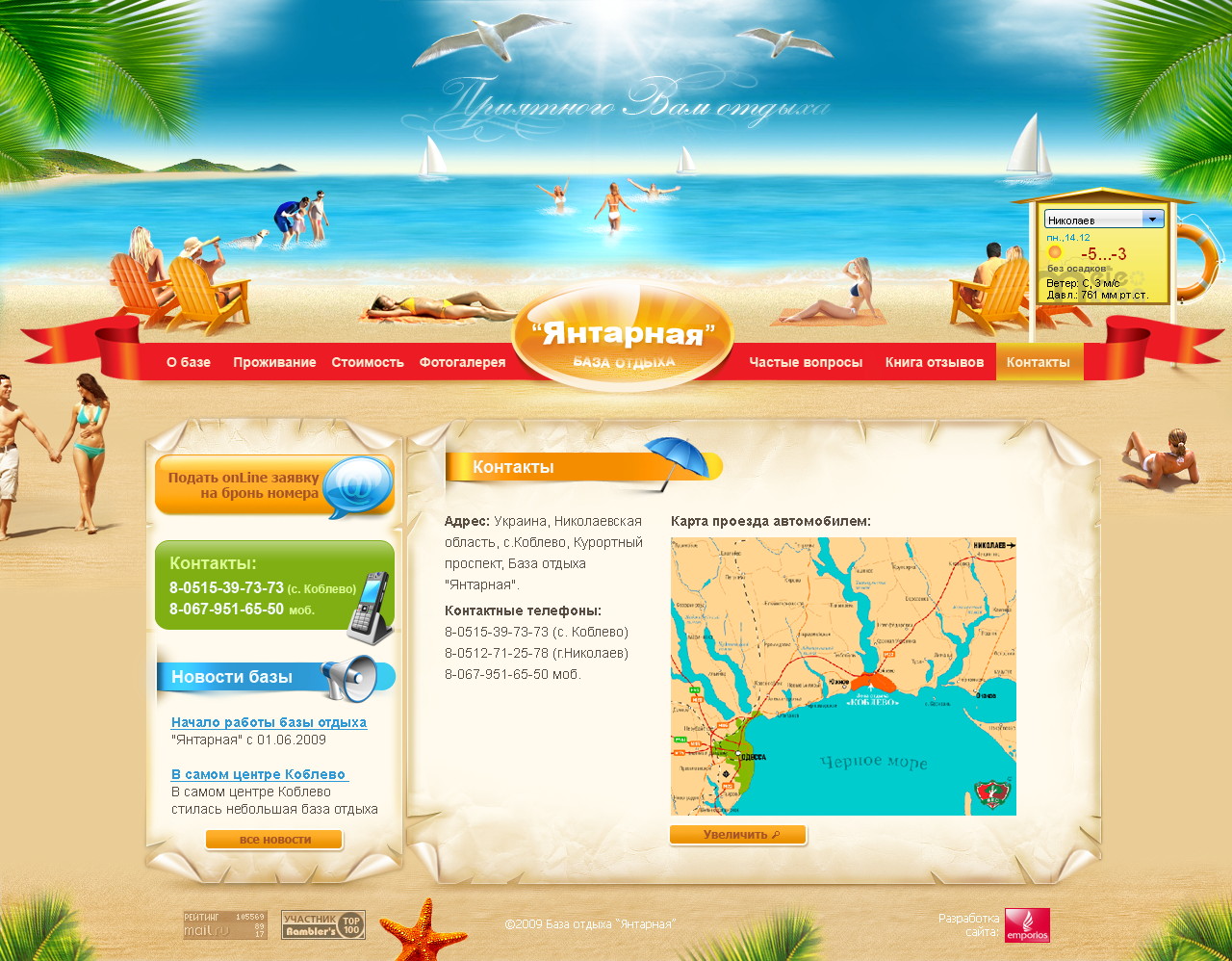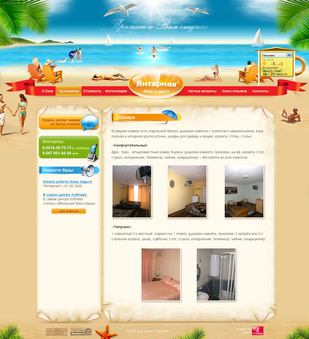Создан легкий и яркий сайт-визитка для базы отдыха.