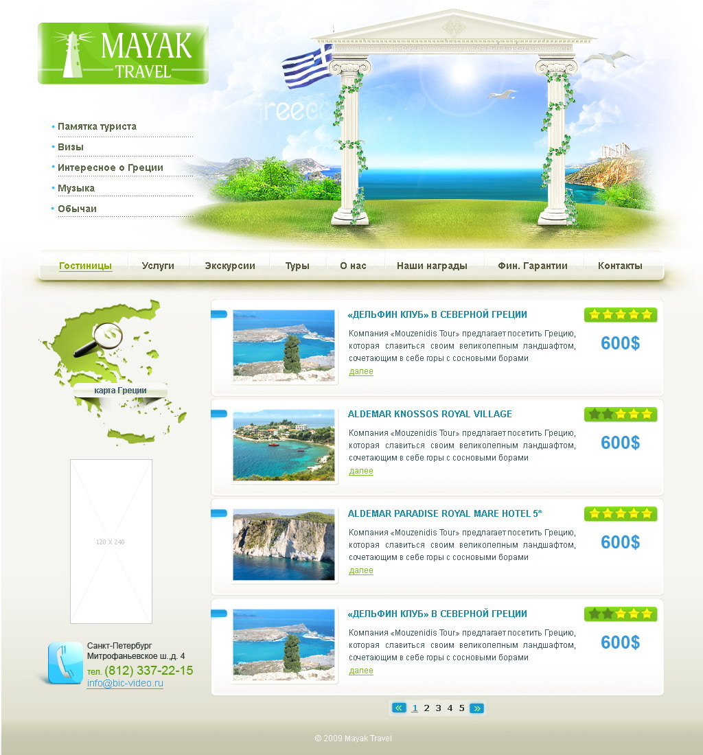 Интерфейс адаптирован под презентацию туров, акционных предложений и ярких изображений.