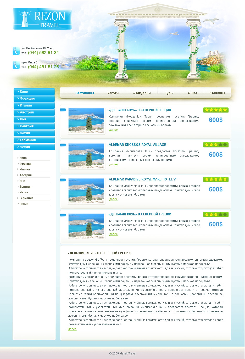 Создан лёгкий и визуально воздушный веб-дизайн для компании, работающей в сфере туризма.