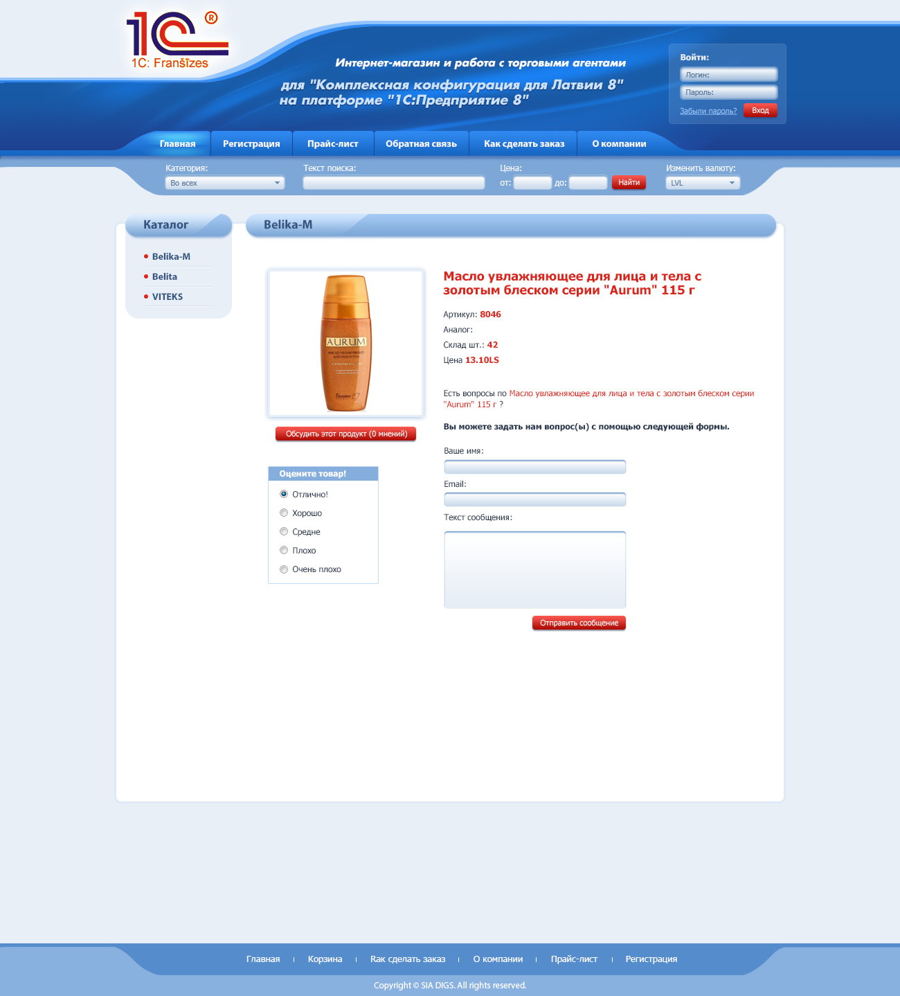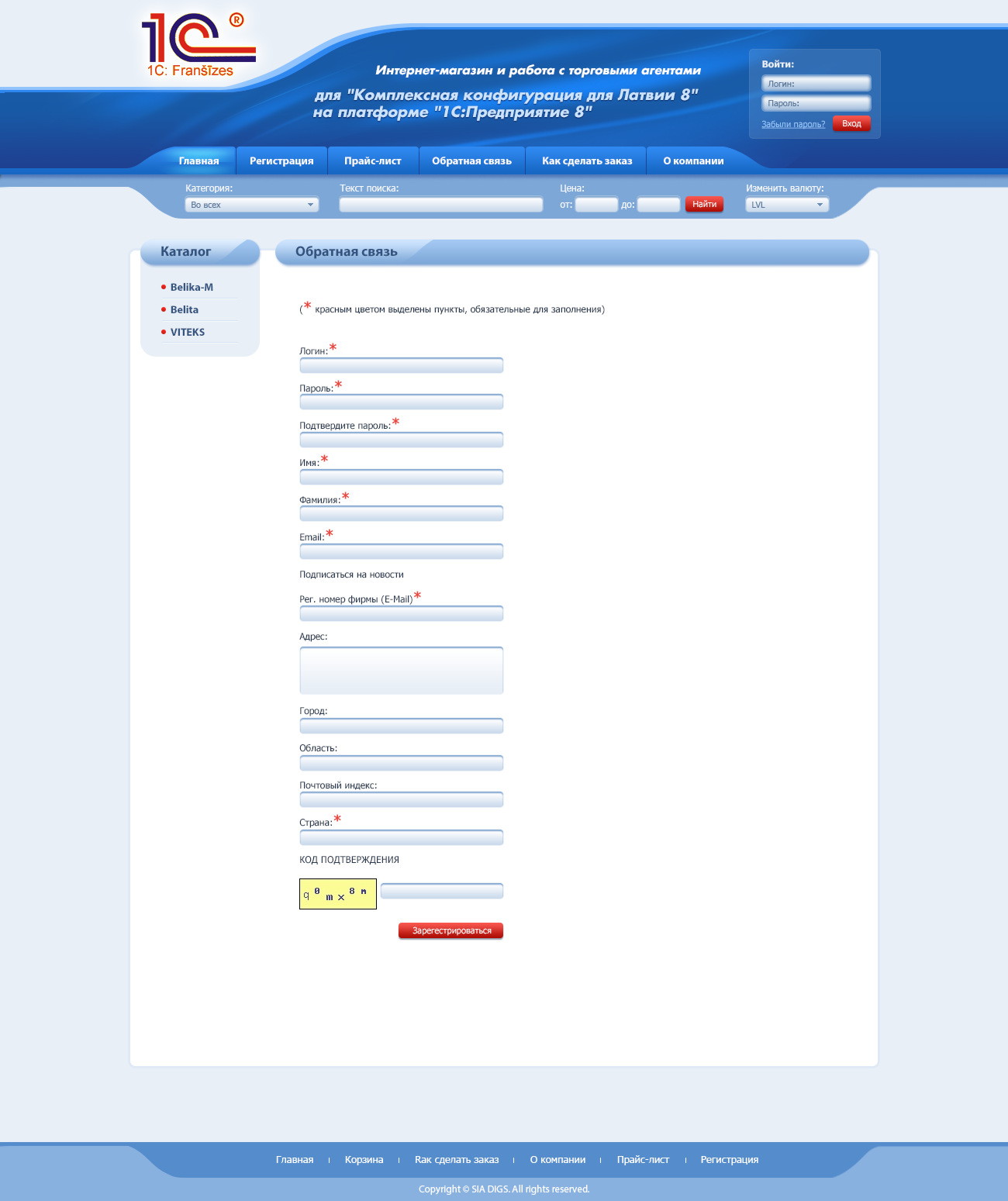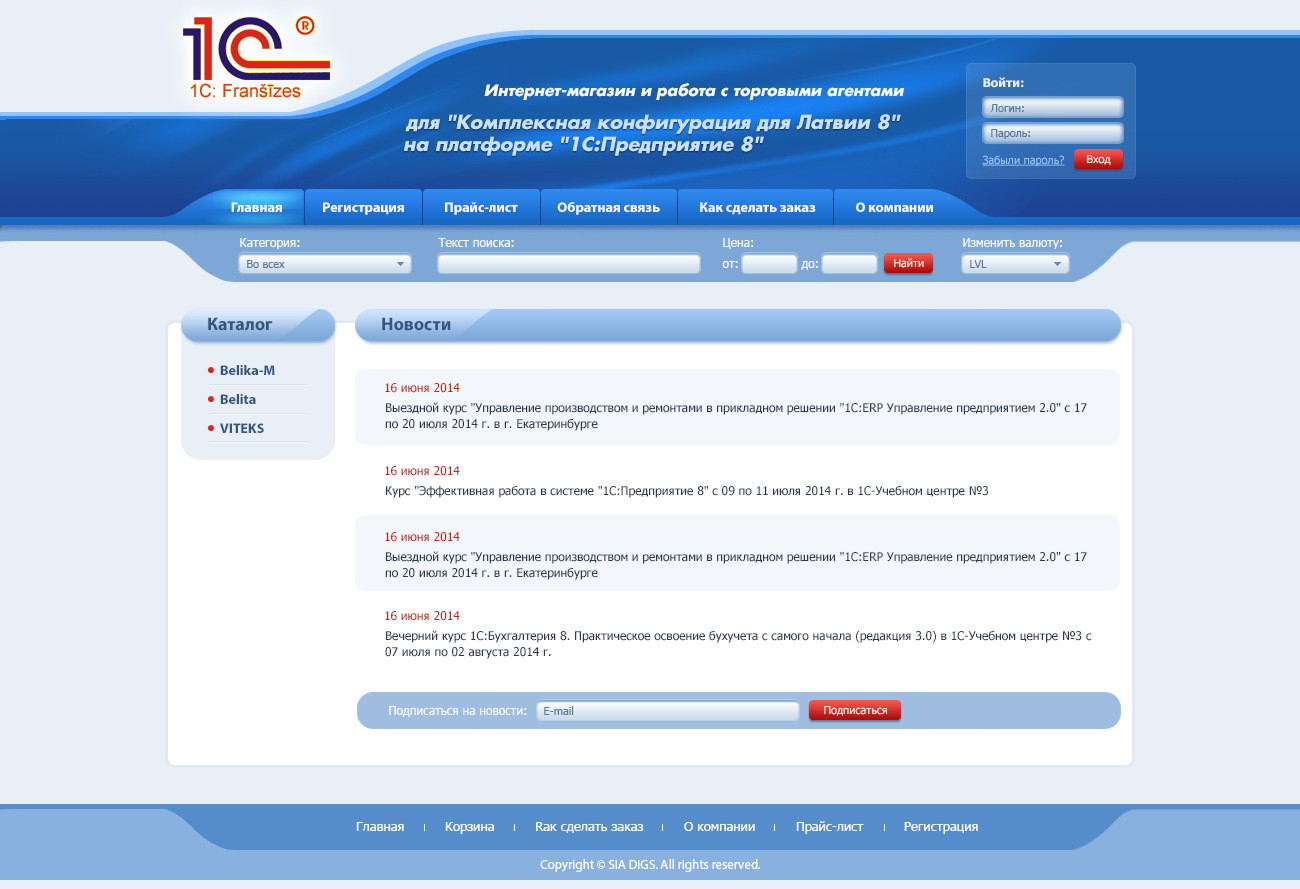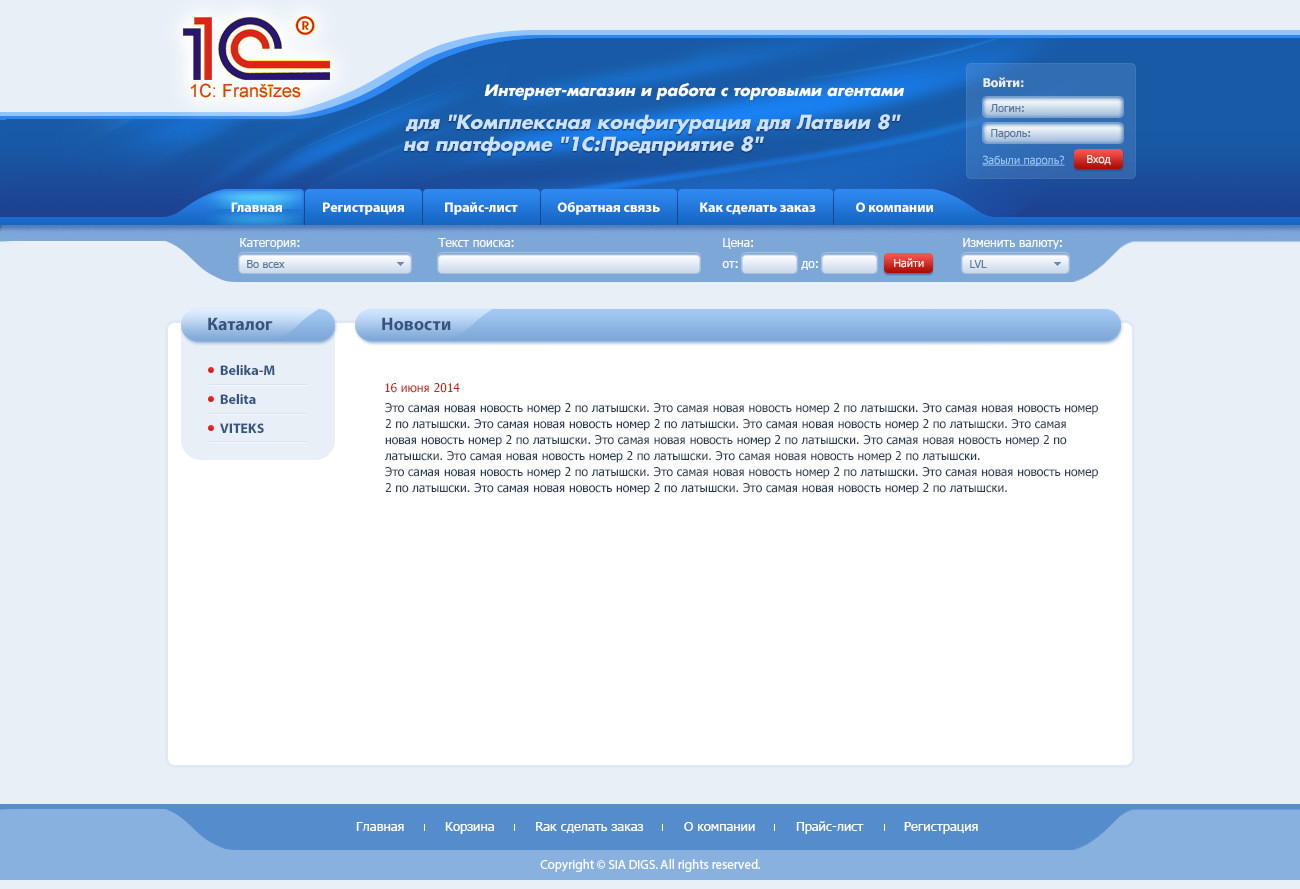 Дизайн макета сайта для компании, занимающейся продажей и внедрением «1С» в Латвии, выполнен с акцентом на строгую структуру и удобство восприятия информации.