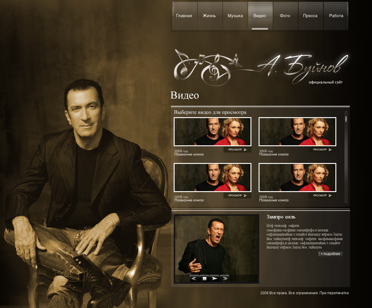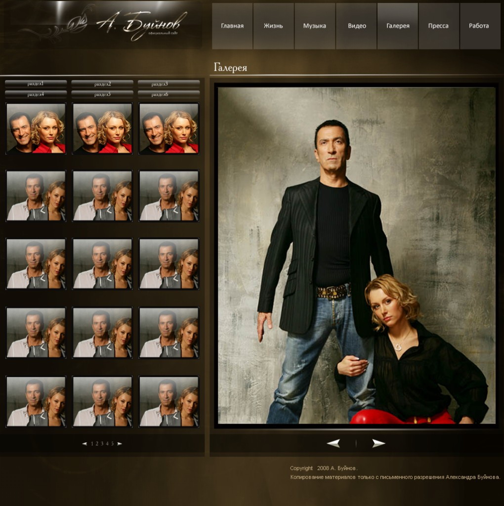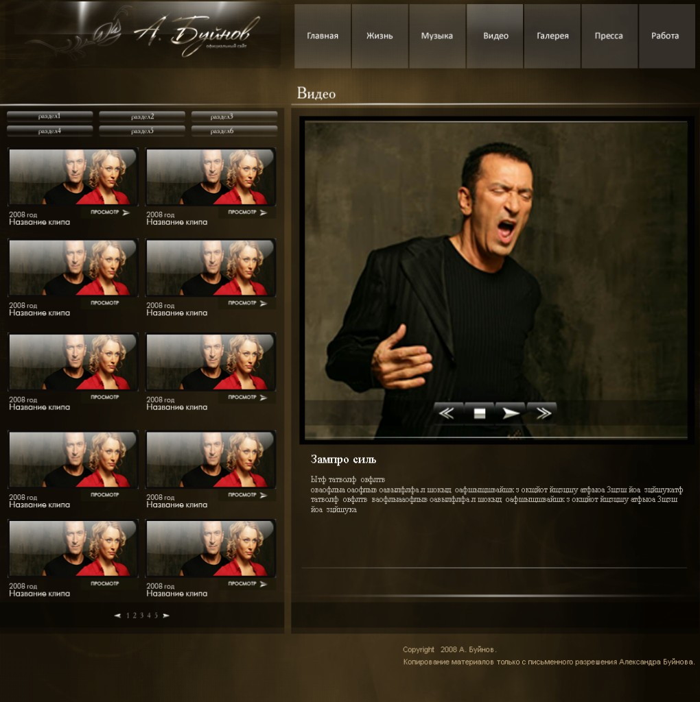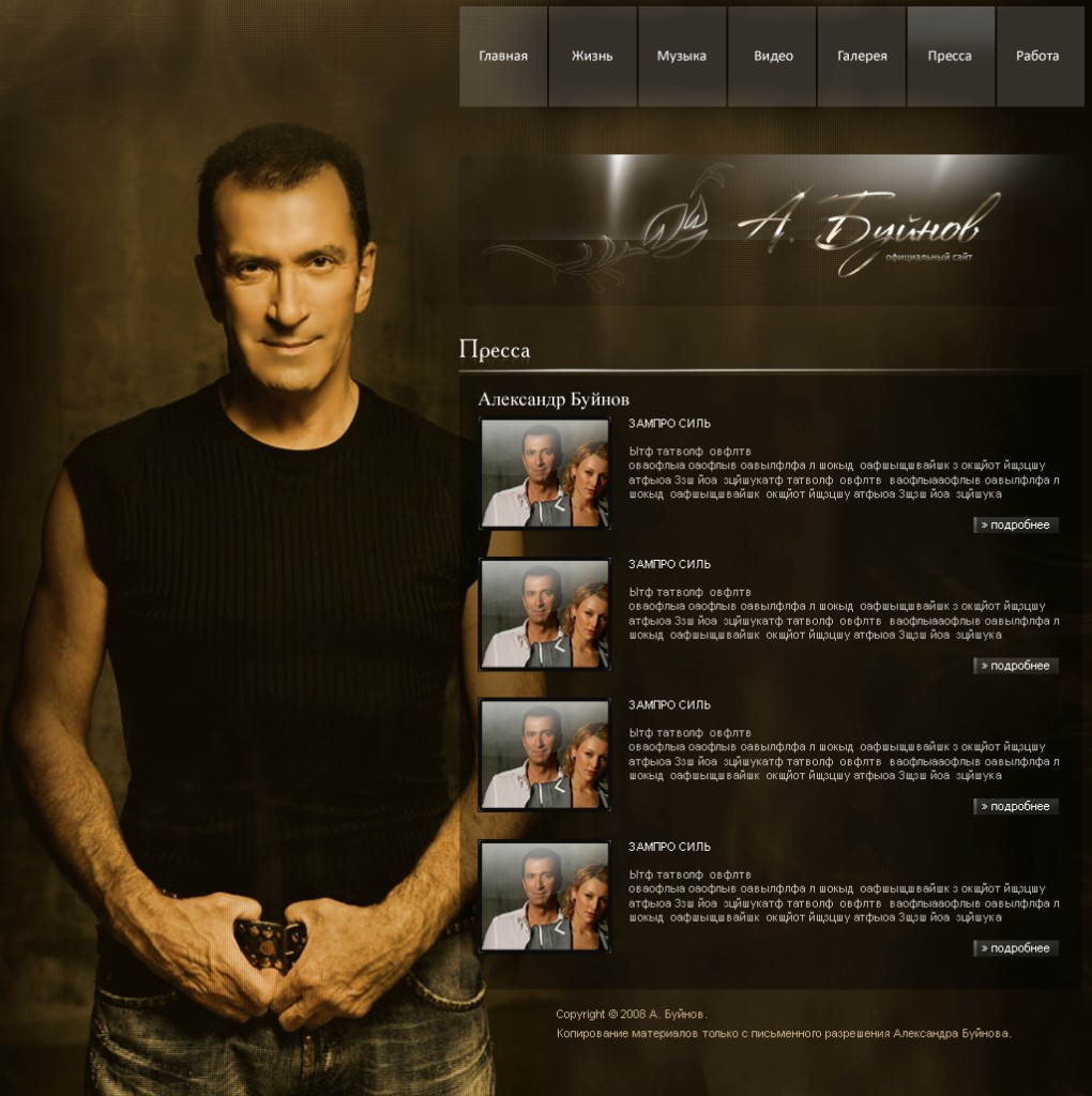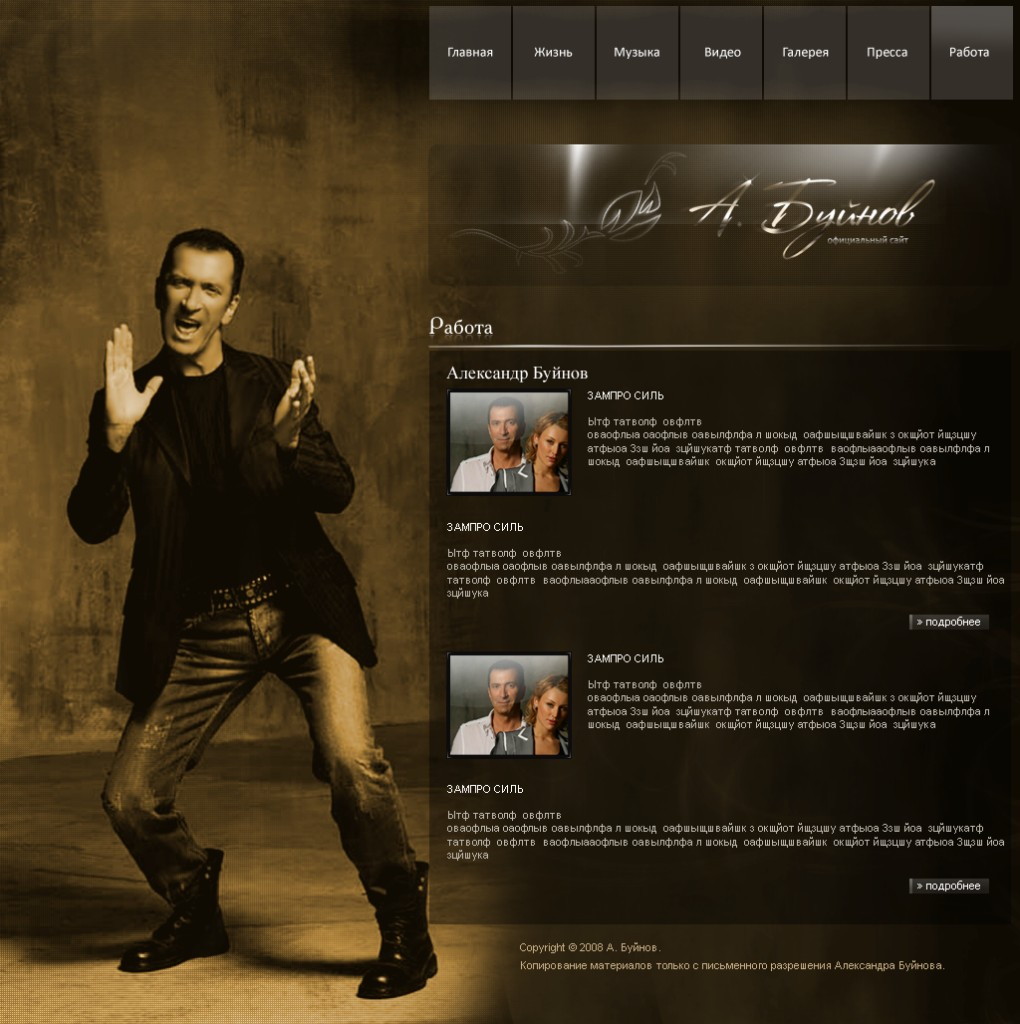 Такой дизайн помогает формировать профессиональный официальный имидж артиста и усиливает эмоциональную составляющую сайта.