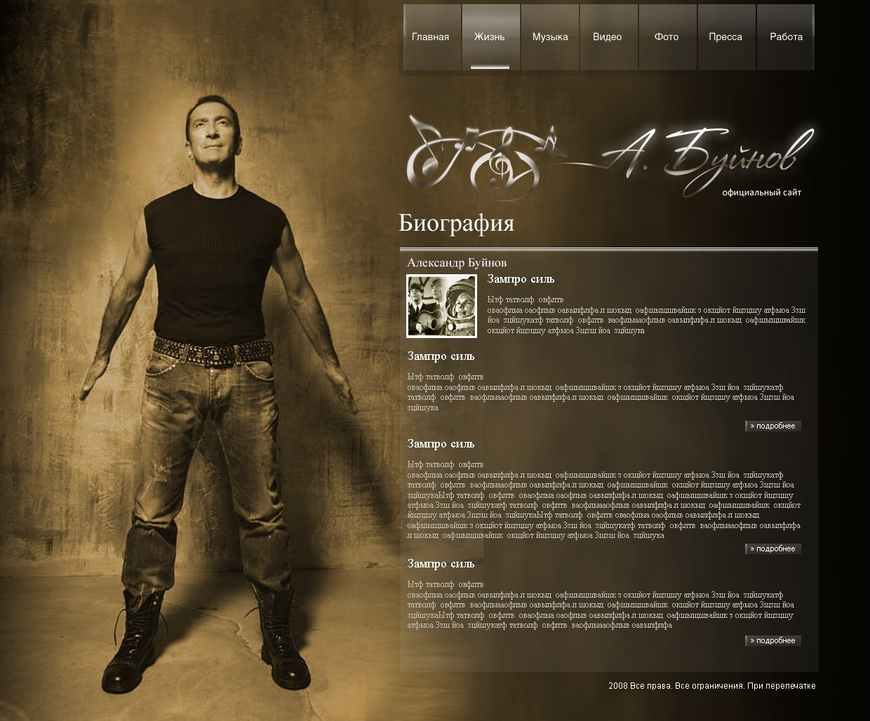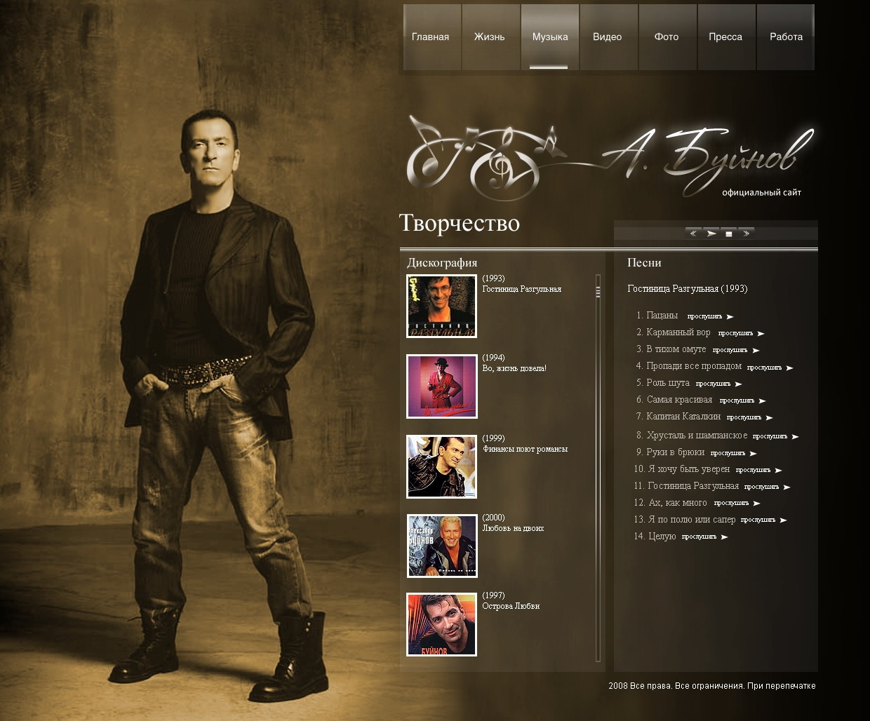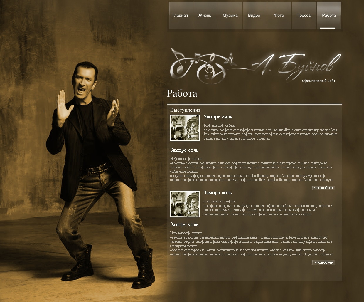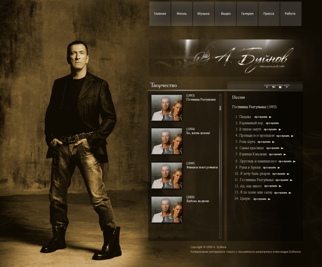 Такой дизайн помогает формировать профессиональный официальный имидж артиста и усиливает эмоциональную составляющую сайта.