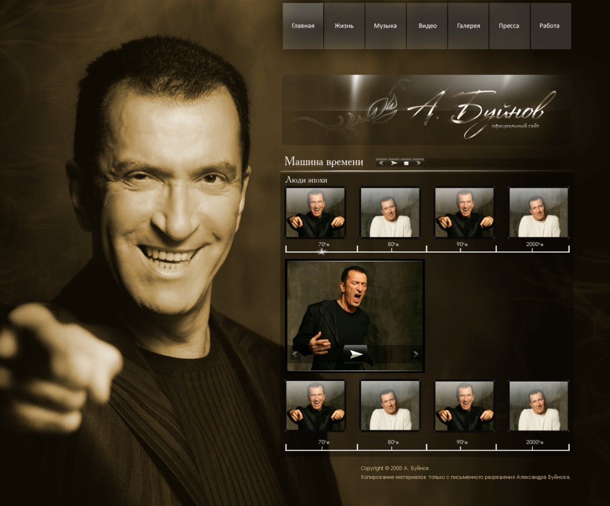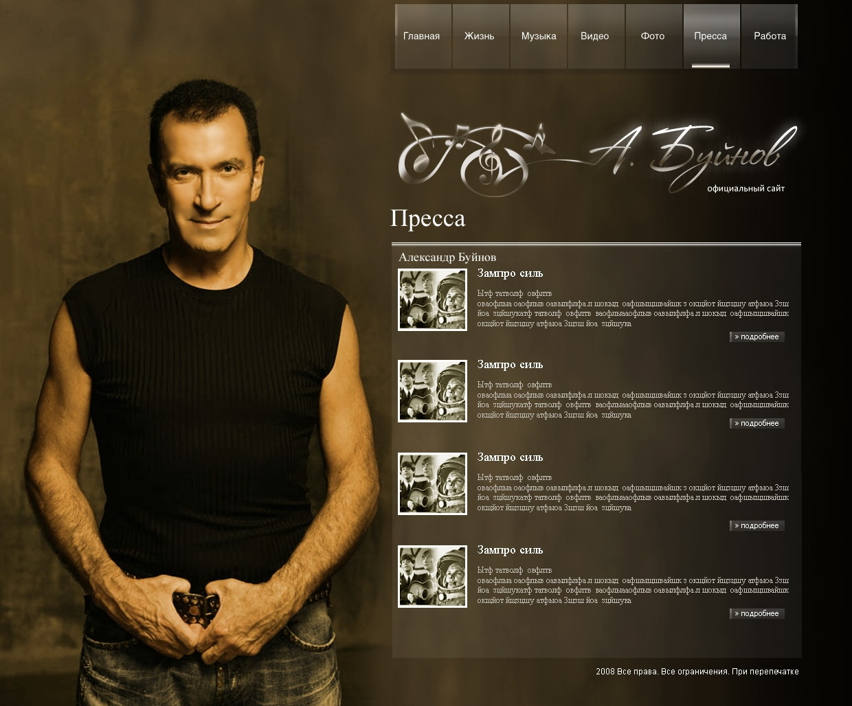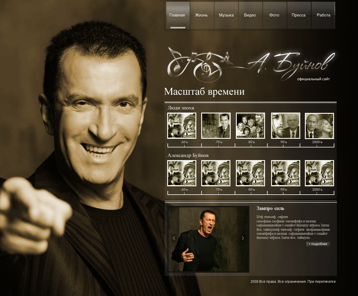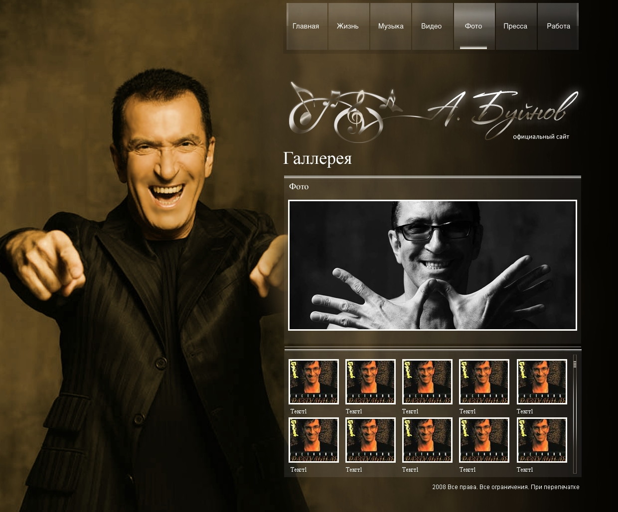 Такой дизайн помогает формировать профессиональный официальный имидж артиста и усиливает эмоциональную составляющую сайта.