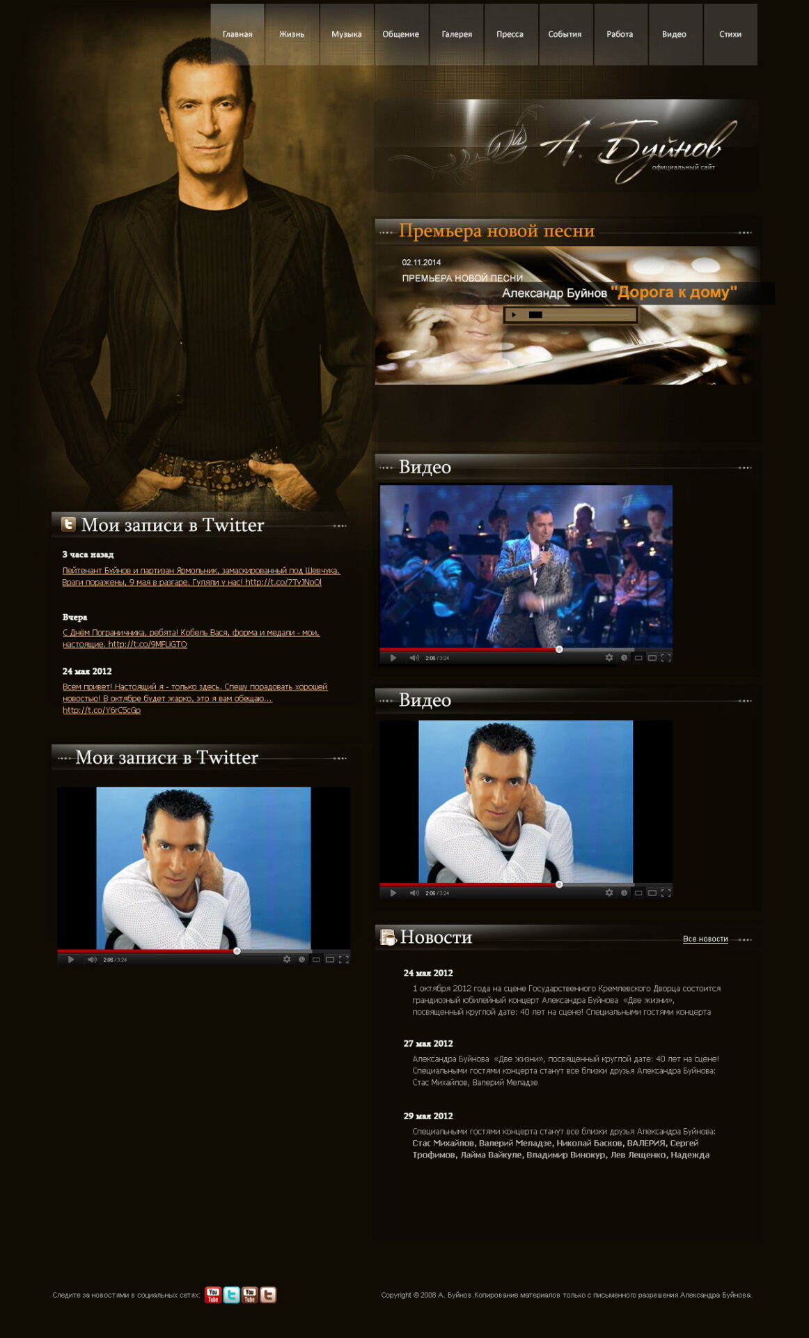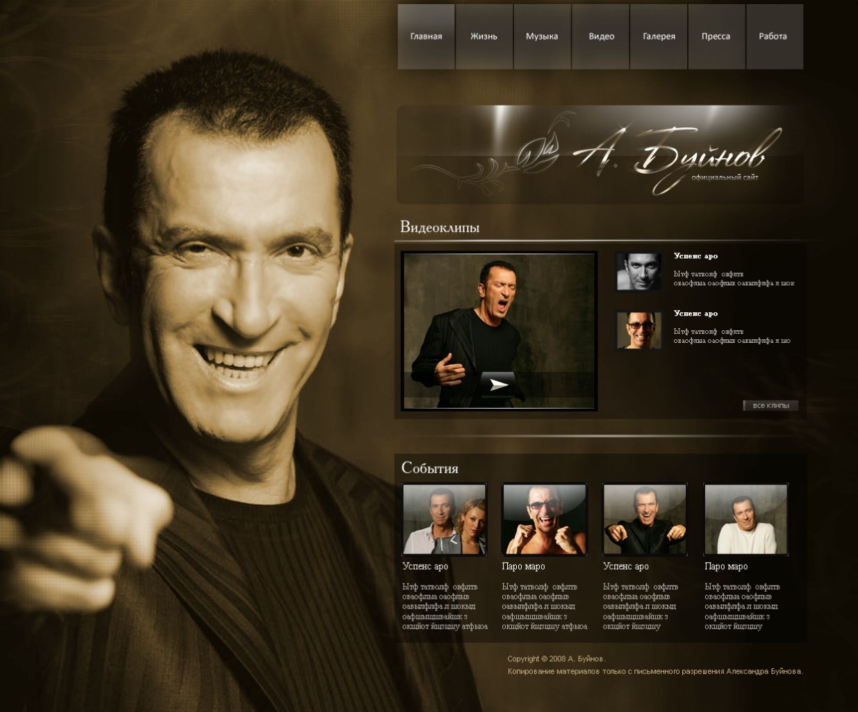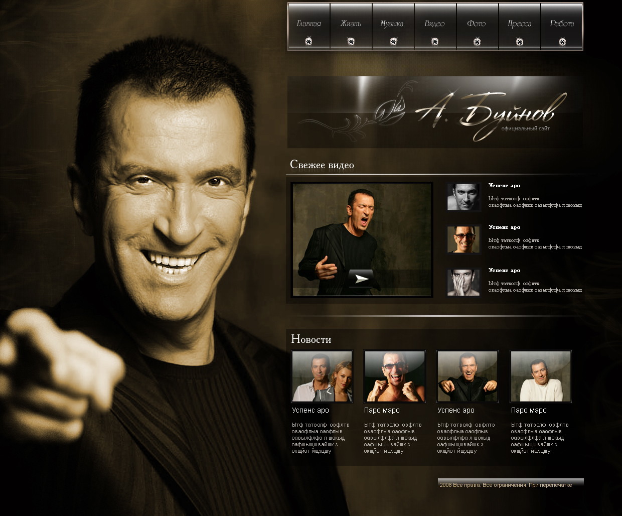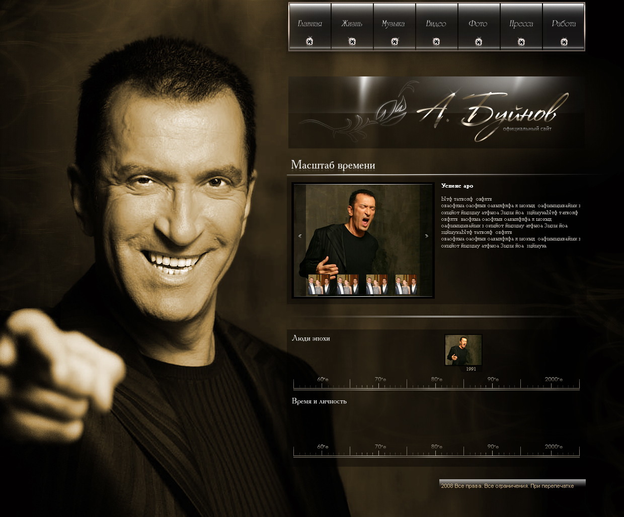 Такой дизайн помогает формировать профессиональный официальный имидж артиста и усиливает эмоциональную составляющую сайта.