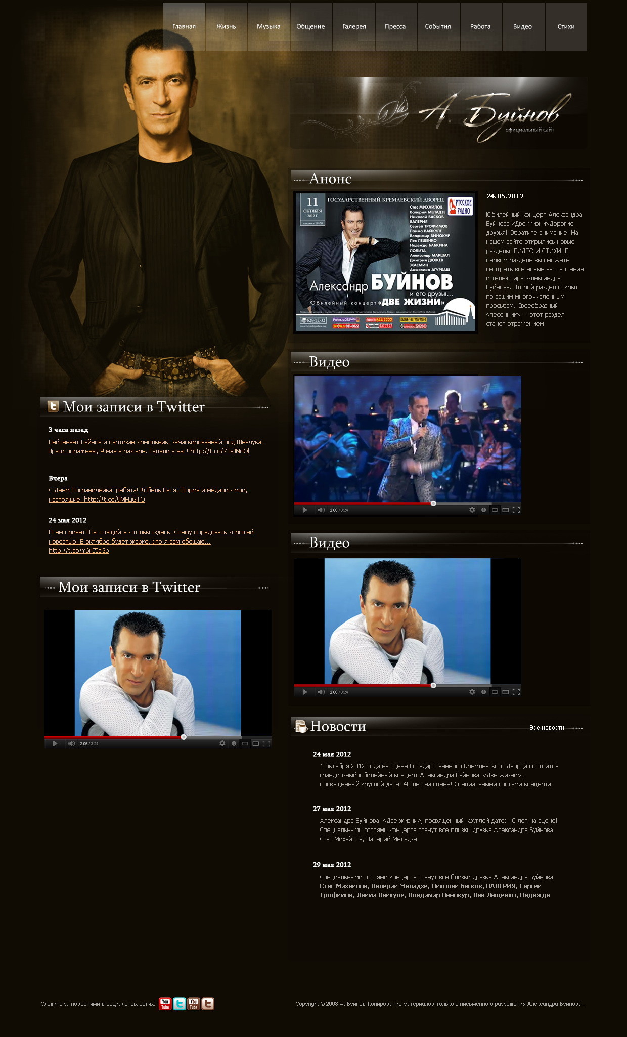 Такой дизайн помогает формировать профессиональный официальный имидж артиста и усиливает эмоциональную составляющую сайта.